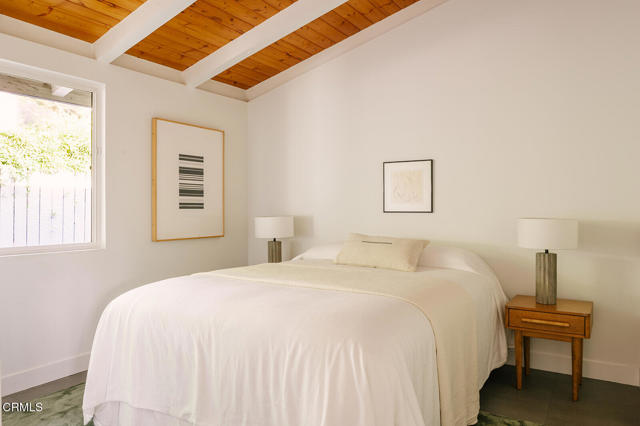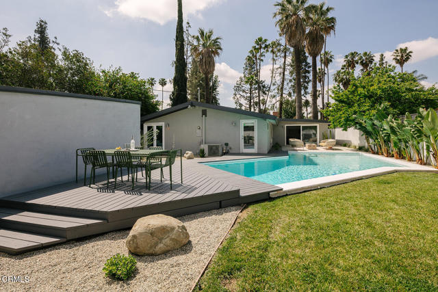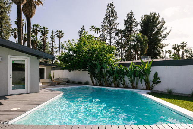 This sensitively restored 1954 post and beam home was originally designed by Palmer & Krisel, AIA and remains an excellent example of the architects' work. The walled pool property is positioned centrally in the celebrated mid-century modern neighborhood of Corbin Palms, where the architects William Krisel and Dan Saxon Palmer had their first significant collaboration with the Alexander Construction Co - designing and building 287 modern homes here. This architect/contractor collaboration building entire neighborhoods made good design accessible. They later went on to create famed modernist Palm Springs tracts including Twin Palms, the Sandpiper Condominiums, and the Racquet Club Road Estates. William Krisel liked the Corbin Palms project so much, he and his wife bought one of the homes several blocks away on Jumilla for themselves. 19733 Victory Blvd features many of the original design features that made these homes unique - exposed beams, open plan, broad overhangs, large windows, and clerestories that celebrate the low gable roof. Recent updates to the property include an insulated tongue and groove ceiling, remodeled pool and garden, custom cabinetry, new flooring, as well as plumbing and electrical upgrades. This four bedroom, two and half bath home is larger than the typical Corbin Palms properties because a den was added in the 1960s that seamlessly matches the original design. Between the Palmer & Krisel architecture and the walled pool garden, this property brings the spirit of Palm Springs right here to our great city of Los Angeles.Interested in this Listing?