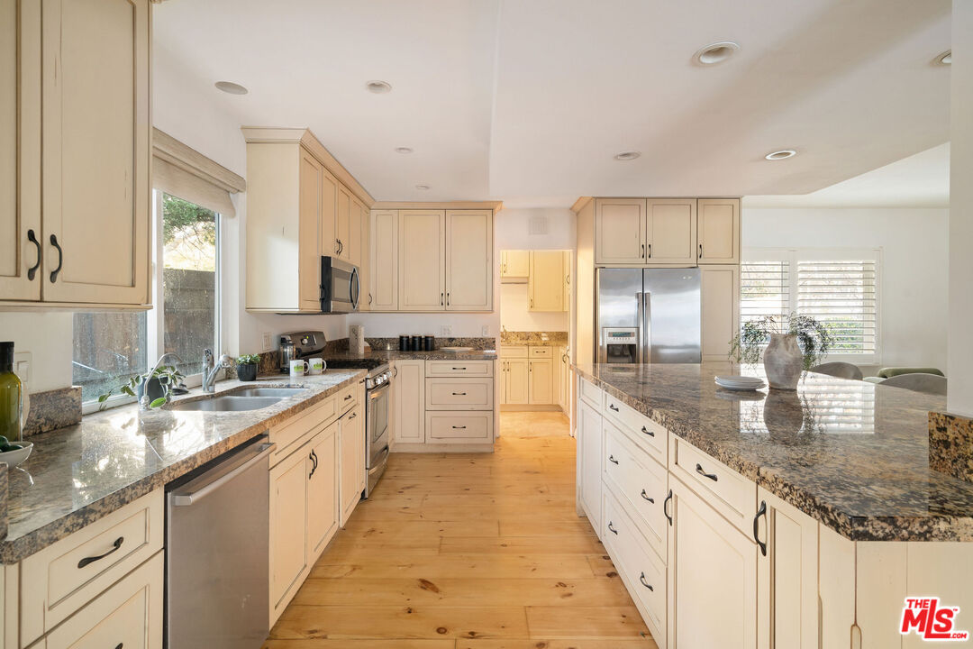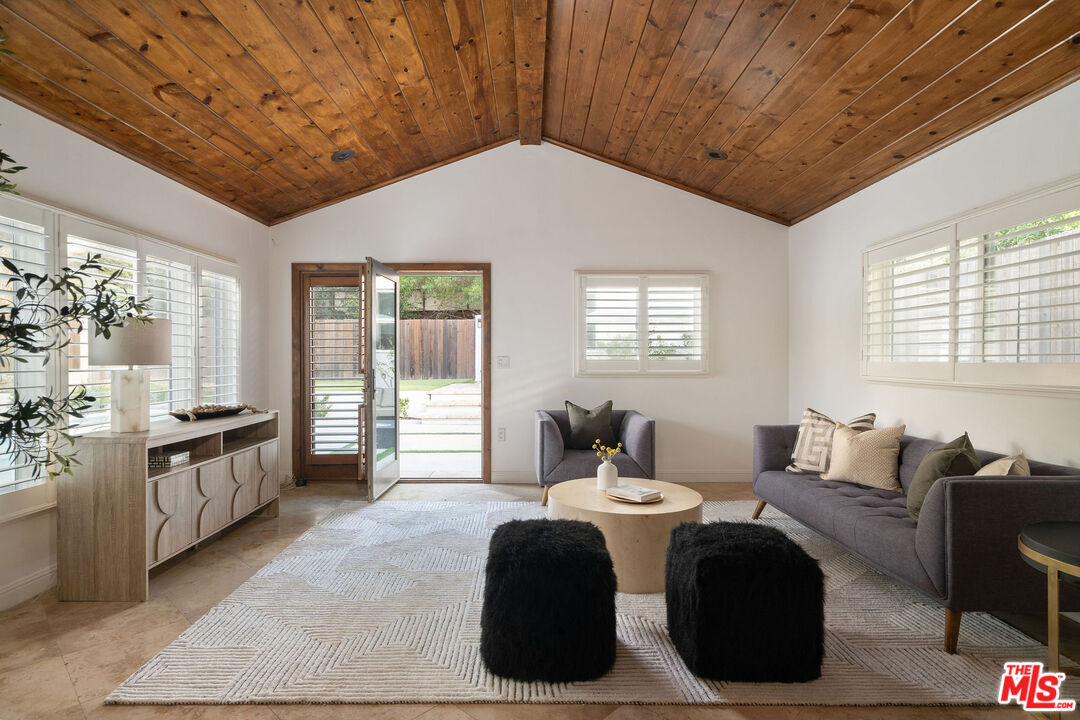 A reimagined modern-ranch home, privately set behind gates, where an open single-story layout and expansive living spaces define its character in the heart of Woodland Hills. Wide-plank wood floors and exposed beams bring warmth to the interiors, while a stone fireplace serves as the focal point of the main living area. The kitchen offers generous prep space with custom cabinetry, granite countertops, and stainless steel appliances anchored by an island that naturally extends into the dining and living spaces. A secondary lounge with vaulted wood ceilings and wraparound windows enhances the home's connection to the outdoors, opening directly to the backyard. Thoughtfully arranged for everyday enjoyment and hosting, the backyard features a newly built pool and jacuzzi framed by clean geometric hardscaping and lush landscaping. A cedar barrel sauna sits nearby, offering a private wellness experience, while multiple lounge areas create space for dining, unwinding, or lively gatherings. At the rear of the property, a detached guest house adds versatility, ideal for a home office, creative studio, or additional living quarters. Nestled in a prime Woodland Hills neighborhood, this home sits just minutes from The Village at Westfield Topanga, Ventura Boulevard's dining and shopping, and scenic hiking trails.Interested in this Listing?