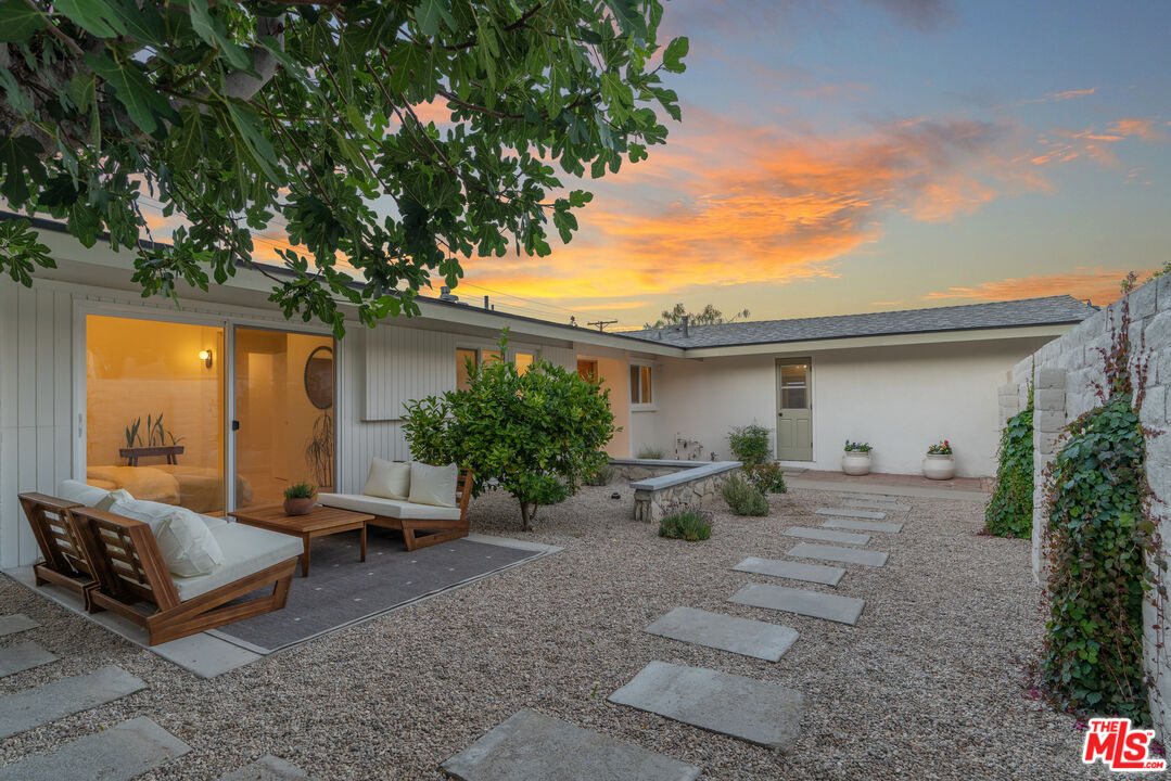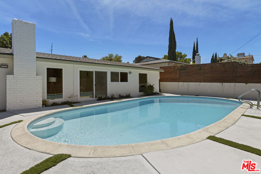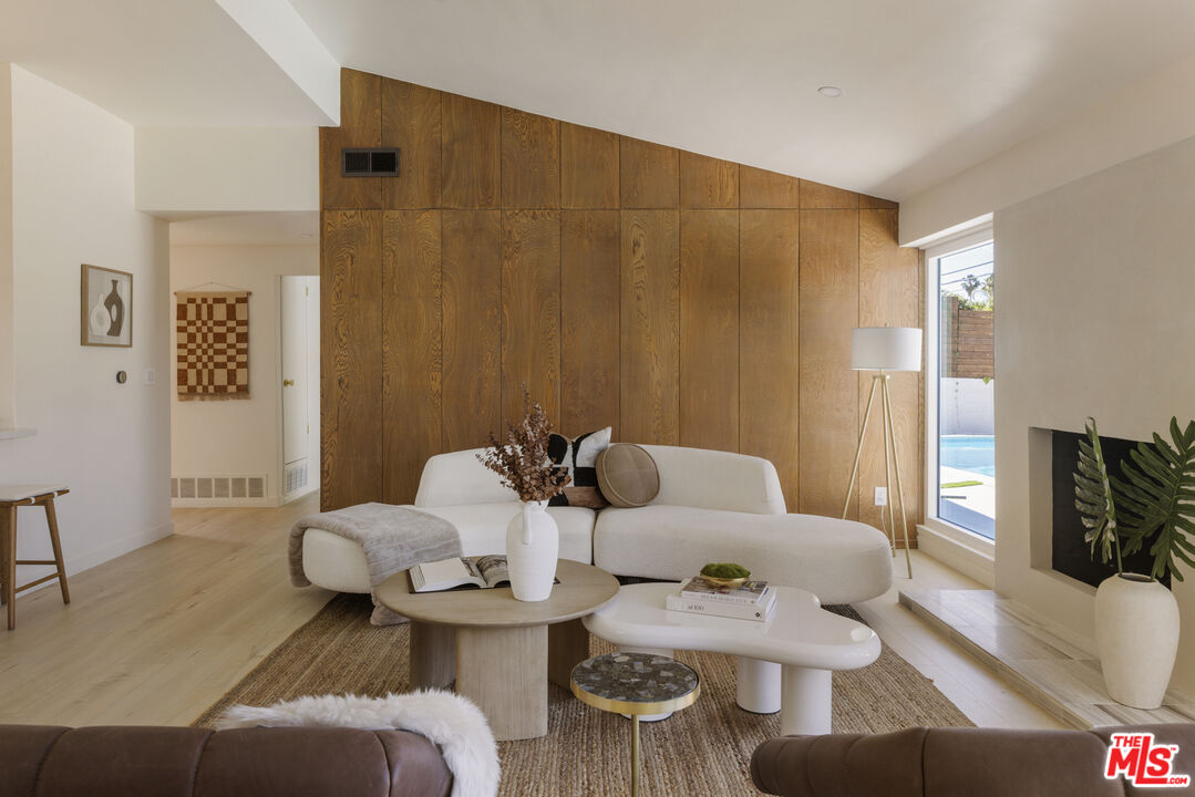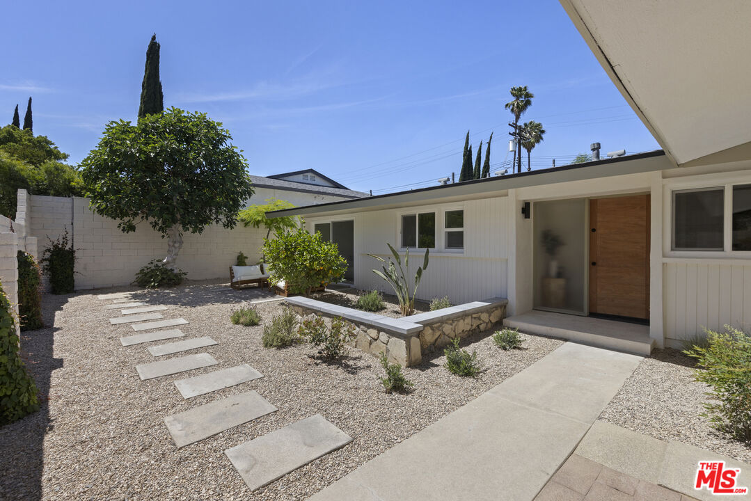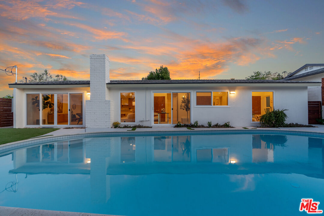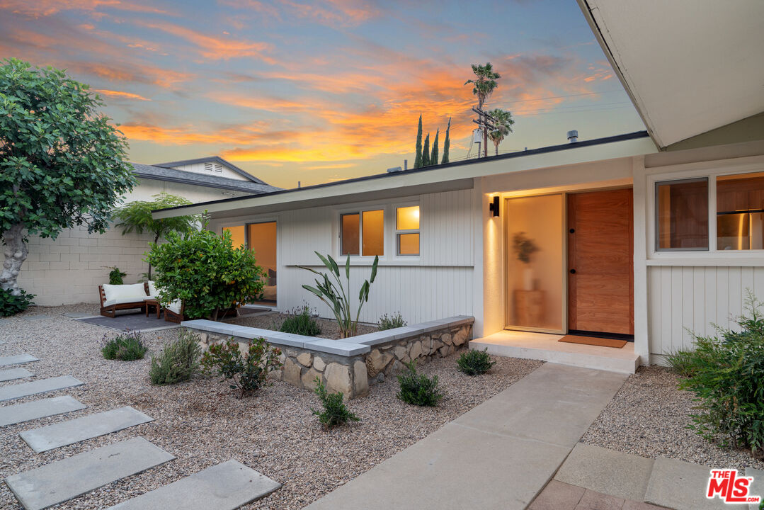 Perched at the peak of Tiara Street overlooking the San Gabriel Mountains is this 1957 Ranch home with courtyard, pool and views. Privacy from the street is enhanced by the courtyard wall with gated entry creating a peaceful area to enjoy your garden with your morning beverage beneath the shade of a healthy lemon tree. Enter the home over a limestone tile to be greeted by the strikingly restored original 50's wood paneling. The living room's vaulted ceilings are anchored by a Roman Clay fireplace with a honed marble tile hearth and direct access to the backyard. The chef's kitchen has been updated with a Zellige tile backsplash, new appliances and a serving peninsula that doubles as an informal dining table. Bathrooms have been reimagined with terrazzo and Kit Kat tiles, with clever storage design in the showers and brush brass fixtures. All four bedrooms are sunny with vaulted ceilings with carefully chosen sconces and lighting. The primary has exterior access to the courtyard patio. The room staged as an office opens to the backyard. The owners were smitten with the home for its ideal blend character, functional floor plan and natural light. Recently upgraded with new HVAC, 200 Amp panel, energy-efficient windows and doors, a resurfaced/retiled pool, floors, lighting, irrigation, driveway, finished two-car garage and improved drainage. Drought tolerant landscaping in both front and backyard and two-car garage that opens to the kitchen with additional two-car off street parking further adds to convenient living. This labor of love is priced to sell.Interested in this Listing?