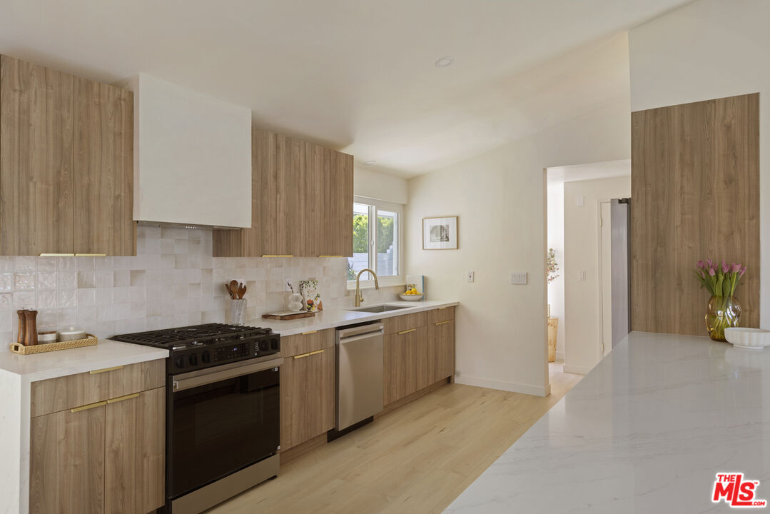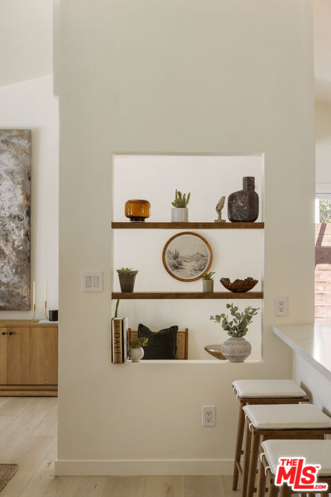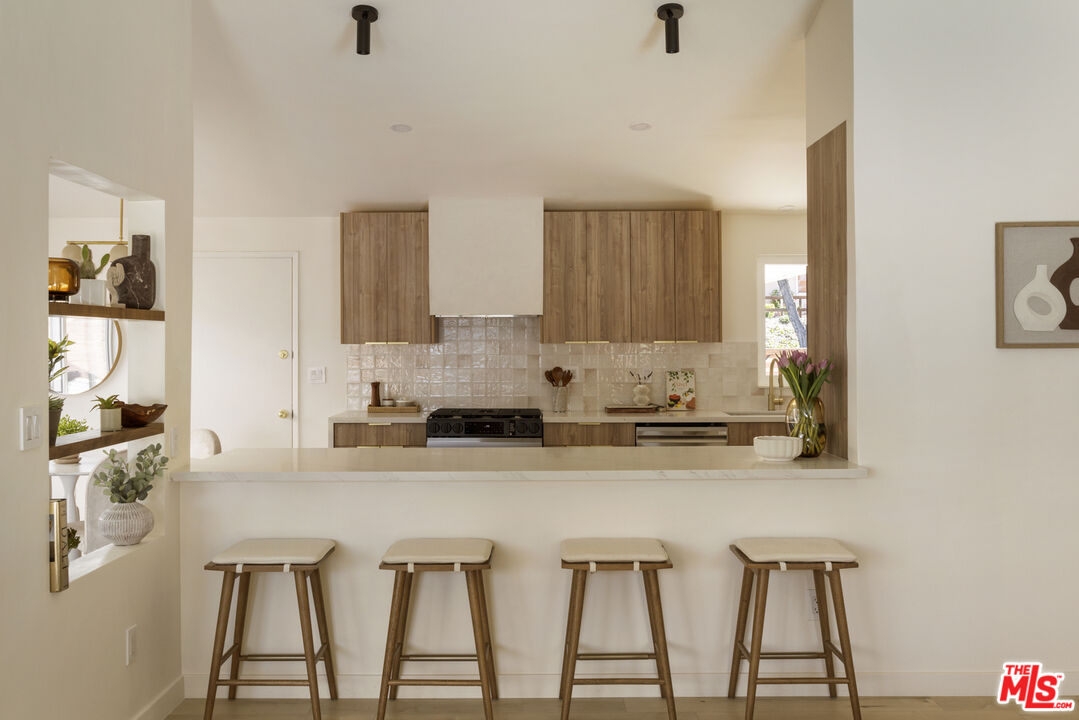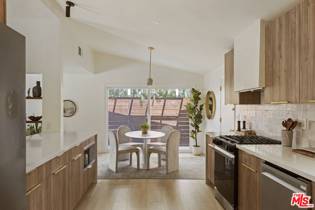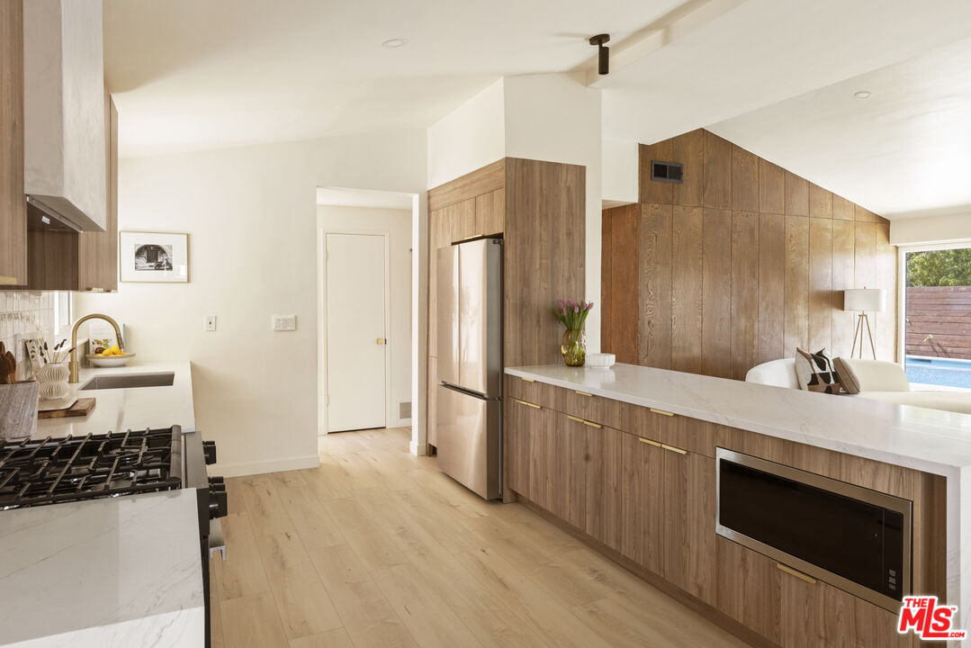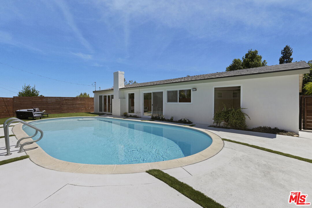 Perched at the peak of Tiara Street overlooking the San Gabriel Mountains is this 1957 Ranch home with courtyard, pool and views. Privacy from the street is enhanced by the courtyard wall with gated entry creating a peaceful area to enjoy your garden with your morning beverage beneath the shade of a healthy lemon tree. Enter the home over a limestone tile to be greeted by the strikingly restored original 50's wood paneling. The living room's vaulted ceilings are anchored by a Roman Clay fireplace with a honed marble tile hearth and direct access to the backyard. The chef's kitchen has been updated with a Zellige tile backsplash, new appliances and a serving peninsula that doubles as an informal dining table. Bathrooms have been reimagined with terrazzo and Kit Kat tiles, with clever storage design in the showers and brush brass fixtures. All four bedrooms are sunny with vaulted ceilings with carefully chosen sconces and lighting. The primary has exterior access to the courtyard patio. The room staged as an office opens to the backyard. The owners were smitten with the home for its ideal blend character, functional floor plan and natural light. Recently upgraded with new HVAC, 200 Amp panel, energy-efficient windows and doors, a resurfaced/retiled pool, floors, lighting, irrigation, driveway, finished two-car garage and improved drainage. Drought tolerant landscaping in both front and backyard and two-car garage that opens to the kitchen with additional two-car off street parking further adds to convenient living. This labor of love is priced to sell.Interested in this Listing?