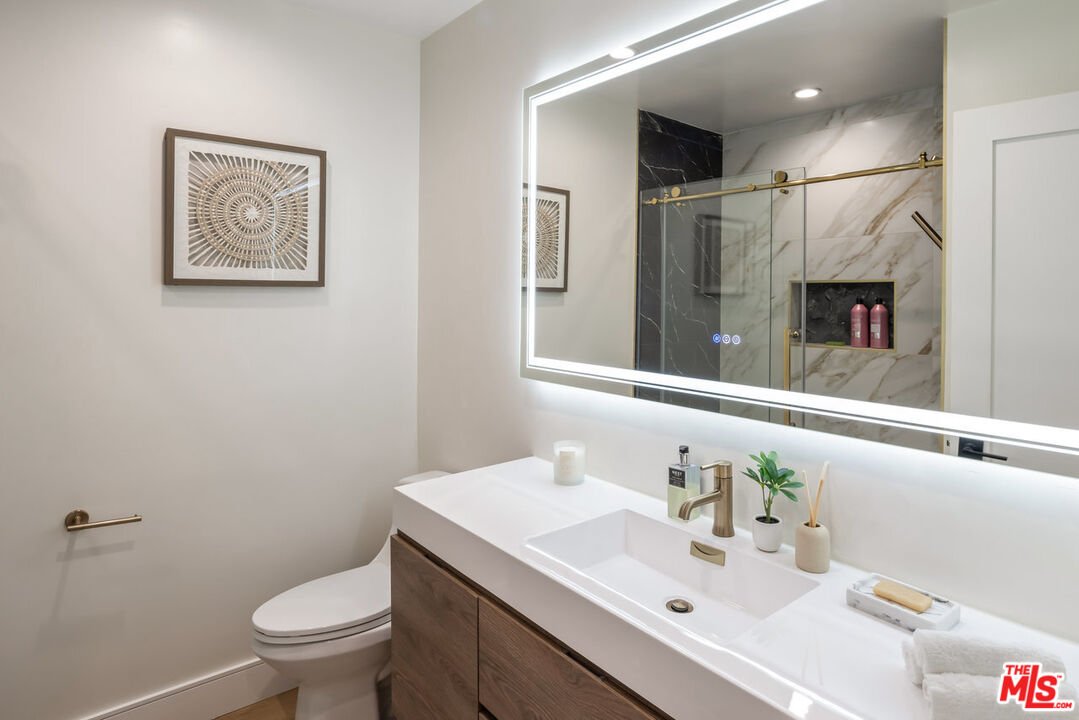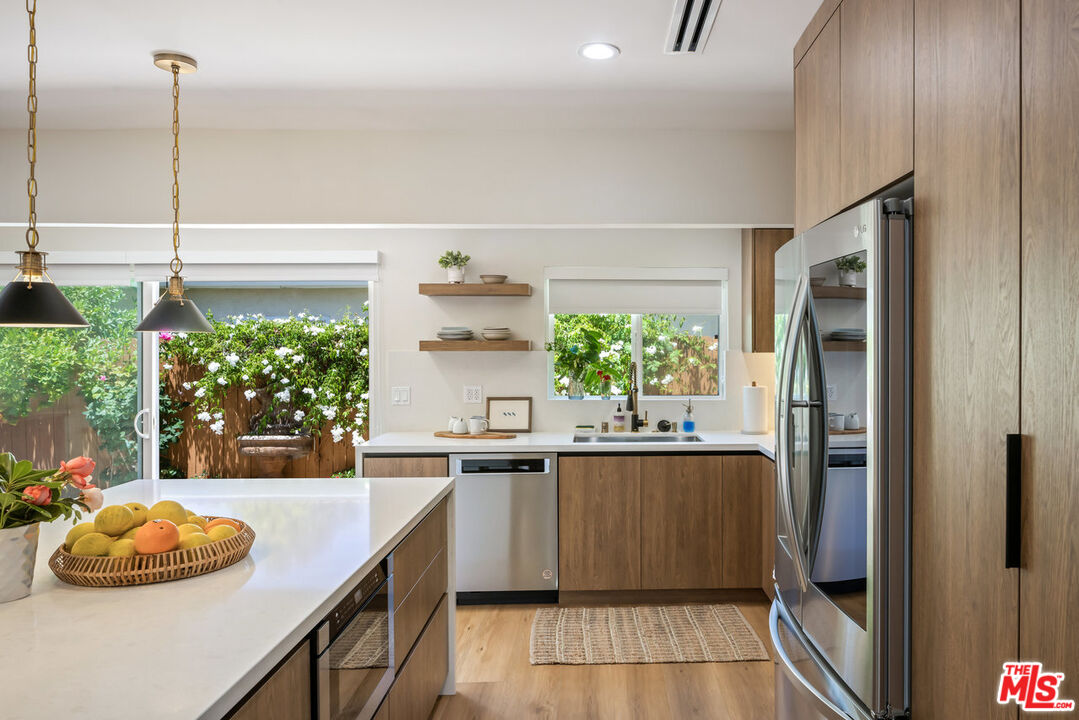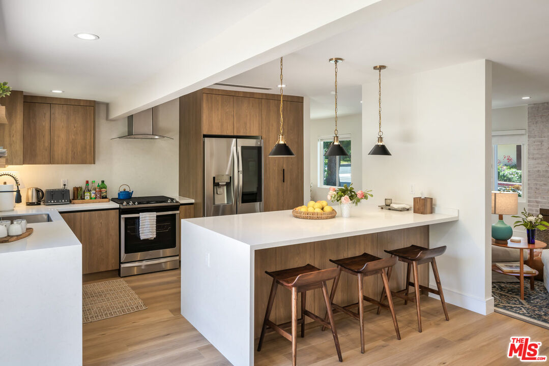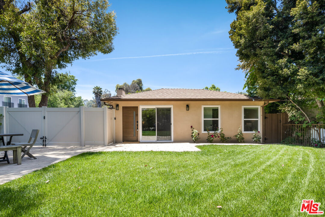 Welcome to this completely remodeled single-level gem located in a highly sought-after neighborhood south of the boulevard! Step inside to discover 1,803 sf of open living space bathed in natural light throughout. This 3 bed/3 bath oasis seamlessly blends aesthetics and functionality, featuring a spacious family room, stunning wide plank oak style flooring and direct outdoor access from all main living areas and two bedrooms. The kitchen is a true highlight, showcasing quartz countertops, ample counter and cabinet space, high-end stainless steel appliances, and a spacious peninsula with double-sided shelving and a striking waterfall edge. Unwind in one of the two primary suites, thoughtfully situated in separate wings of the house, both offering spa-like en-suite bathrooms. Step outside to lounge on the expansive patio, the huge deck, or the lush yard perfect for hosting gatherings with family and friends. Want a separate space for guests or to generate income? You also have the option to add a wall to separate the living spaces into two separate homes, creating a fully permitted ADU. Conveniently located within a short distance of Ventura Boulevard, this home offers quick access to the 101 freeway, Woodland Hills Country Club, and Warner Center, with its top-notch restaurants, shopping, and entertainment options. Don't miss out on this exceptional home!Interested in this Listing?