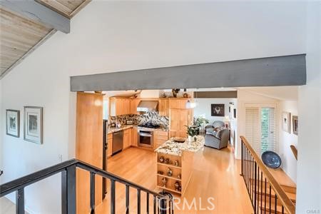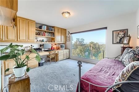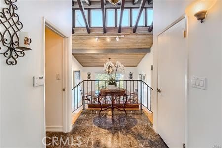 Embrace Nature, City Life Within Reach: Panoramic Valley & Mountain Views Await! Nestled in the coveted hills of Woodland Hills and south of the boulevard, this custom-built home offers a unique blend of serene hillside living and convenient city access. From four east facing balconies you can take in the sunrise, the warm hues of sunset, and the dazzling valley lights at night. A gated, private driveway shared with only one other residence ensures tranquility, seclusion, and security. Inside, discover spacious living areas boasting architectural charm, including vaulted wood-beamed ceilings with whitewashed planking and soaring high ceilings throughout. The attached two-car garage provides direct entry for ease and convenience. The expansive lower level features a luxurious primary suite with over 300 sq ft, a custom en-suite bathroom showcasing artisan glass sliding doors and a dual-head walk-in shower. The guest bathroom offers a spa-like experience with a jetted soaking tub and separate corner shower. One bedroom is thoughtfully equipped as a home office with custom built-in desk and cabinetry. Unleash your creativity in the large Bonus Room ideal for a home gym, recording studio, or potential future studio apartment. Located moments from the natural beauty of Serrania Park and the prestigious Woodland Hills Country Club, this home offers unparalleled access to leisure and recreation. Neighborhood shopping and dining along Ventura Boulevard are just blocks away, with even more options available on Topanga Boulevard to the north and the beaches to the south. The convenience of Kaiser Permanente Hospital and Medical Center is also nearby. This superior location truly offers the best of all worlds in vibrant Woodland Hills! Please note this is a downslope hillside property with no flat lawn area or space for a pool. However, there are two areas that could be reimagined with decks. Be sure to check out the virtual tour and drone video.Interested in this Listing?