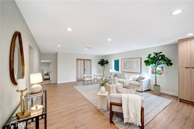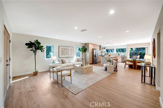Expanded & Remodeled to Perfection! This impeccably redesigned, fully permitted single-story home, located south of the Boulevard in prime Woodland Hills, offers the perfect blend of luxury, style, and functionality. Situated on a lush, private lot in a coveted neighborhood with award-winning schools, the property has undergone a complete transformation, including a 1,000 sq ft expansion, now offering over 2,000 sq ft of thoughtfully designed living space. The open-concept layout flows seamlessly from the expansive family room to the dining area and into the custom designer kitchen that features custom cabinetry, quartz countertops, a large center island, and premium stainless-steel appliances, including a 36 gas range and built-in side-by-side refrigerator with water filtration. The primary suite is a true retreat with a spa-inspired bathroom that includes dual vanities and an oversized walk-in shower. Two additional designer bathrooms with stone finishes and unique details. Venetian plaster accent walls in the living room and powder room for a luxurious touch. Fully reconfigured layout with three engineered beams for structural support. New drywall, full insulation, and a complete upgrade of electrical, plumbing, and HVAC systems, all Title 24 compliant. Backyard & Additional Features: Large private backyard featuring a new in-ground swimming pool with state-of-the-art equipment, a spacious wood deck and patio, and ample room for relaxing or entertaining. New cement walkways and synthetic grass for a lush, low-maintenance yard, along with a storm drainage system designed to route water to the exterior street. New bedroom addition at the rear of the home with direct access to the backyard. Fresh front yard landscaping with new lawn, plants, and sprinkler system, plus a new front porch addition with stylish curb appeal. Additional Upgrades: New 30-year composition shingle roof professionally installed. Smooth stucco finish with new double-pane energy-efficient windows and doors. New wide driveway with stone siding accents and a separate walkway to the entrance. All work was fully permitted and completed by licensed contractors and designers. This home feels like new construction. Every system, feature, and surface has been meticulously upgraded with permits and professional care. Located near shopping, dining, and entertainment, this turn-key home offers peace of mind and exceptional quality. Seller is willing to carry 1st loan