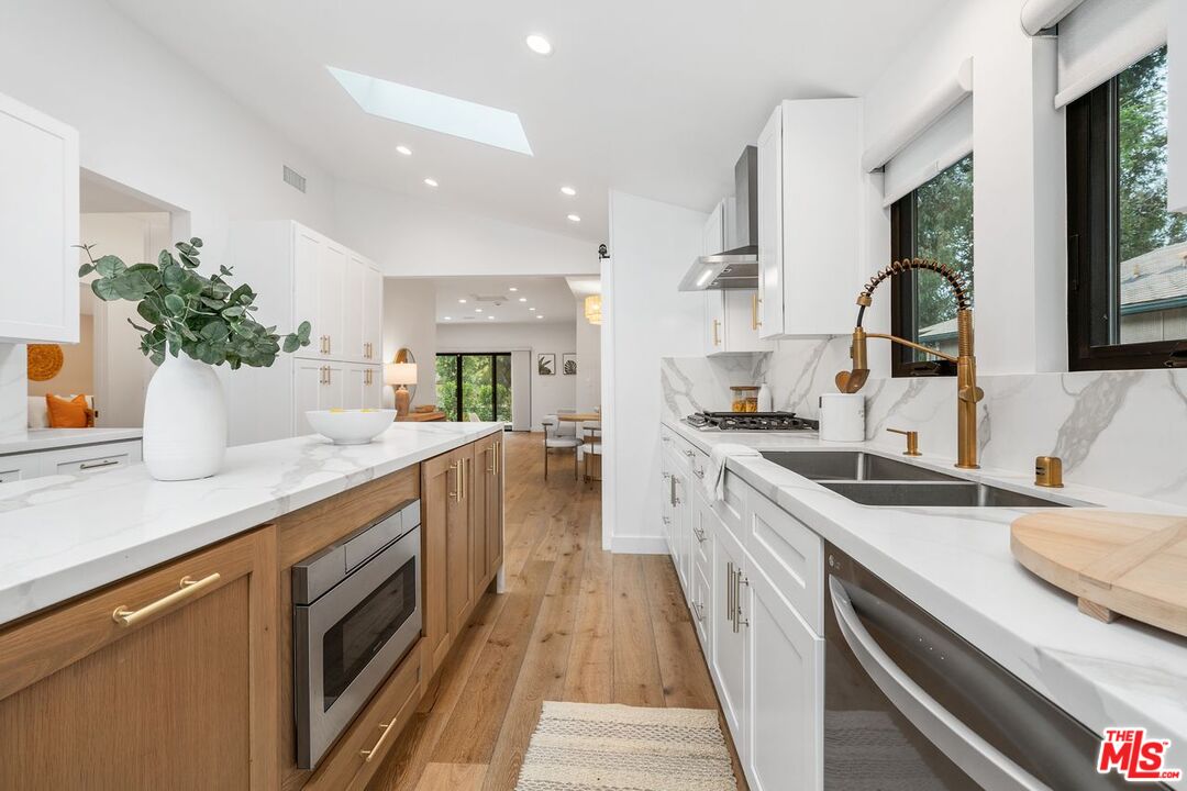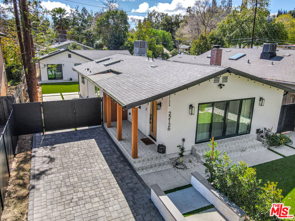Welcome to this prime location in Woodland Hills, situated south of Boulevard, on one of the most desirable streets in the area. This charming one-story home features 2 bedrooms and 2 bathrooms, with a detached ADU. The main house spans 1,445 sq. ft. and sits on a 6,249 sq. ft. lot. The ADU offers an additional 589 sq. ft. of living space, complete with one bedroom, a full kitchen, bathroom, and in-unit laundry, all with a separate entrance. The home has been completely renovated, including a brand-new kitchen and bathrooms, along with engineered hardwood flooring throughout the main house. Solar panels are already paid off. Additional features include custom closets, a walk-in closet, and custom blinds throughout. The property also boasts a brand-new water filtration system for the main house, a custom gate with both car and pedestrian access, and a secondary gate leading to the backyard. The front and backyard have been fully updated, with numerous fruit trees adding to the appeal. Inside, you'll find ample cabinet storage, skylights for natural light, and high ceilings with ceiling fans in every room. The main house has an updated HVAC system (2021), while the ADU features a brand-new HVAC unit. Both units are equipped with new water heaters, and the home is fitted with energy-efficient double-paned windows throughout. The exterior includes custom uplighting and bistro lights, enhancing the property's ambiance. This property presents a strong investment opportunity, offering an estimated capitalization rate of 4-5% if utilized as a rental." This is an incredible opportunity that you don't want to miss. A must-see!Interested in this Listing?