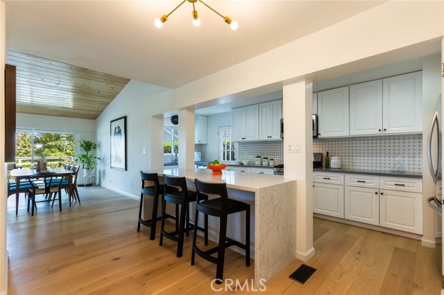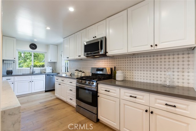 Welcome to your dream residence at 22253 Del Valle St, nestled in the heart of Woodland Hills, South of Ventura Boulevard near the end of the cul-de-sac street. This single-family turn-key home offers a harmonious blend of comfort and style across 1,488 square feet. With two spacious bedrooms and two beautifully renovated bathrooms, this home promises a lifestyle of ease and elegance. As you step inside, you'll be greeted by the timeless charm of new authentic hardwood floors, complemented by the modern touch of recessed lighting. The living area, with it's new oak paneled ceiling, bathed in natural light from its northeastern exposure, features a decorative fireplace, creating an inviting atmosphere for both relaxation and entertaining. The heart of this home is its freshly updated, windowed kitchen, thoughtfully designed for the culinary enthusiast. It is equipped with a breakfast bar, cooktop, gas stove, gas oven, French door refrigerator, and a dishwasher. The eat-in kitchen provides a fresh and open space for meals on the new quartz waterfall island, while the pantry and kitchen cabinets ensures ample storage. The master suite boasts a generous walk-in closet, offering ample storage for your wardrobe. Step outside to enjoy the inviting outdoor spaces, including a private deck, fenced front yard, and a charming patio ideal for outdoor gatherings or quiet relaxation. Additional upgrades in the last three years include newly painted interior of home, fully tented home for termites, and sewer line cleanout. Additional features include central air conditioning and heating, tankless water heater, along with convenient and spacious laundry room with beautifully functional countertops and Maytag washer/dryer included (3 years old). This Woodland Hills home combines modern amenities with a desirable location within a half mile to one of the best elementary schools "Woodland Hills Elementary Charter for Enriched Studies", walking distance to Top Choice Dining "Casa Elena", Supermarkets: Whole foods, Trader Joes and more, making it a perfect choice for those seeking comfort and convenience. Schedule your showing today and experience the charm of this home!Interested in this Listing?