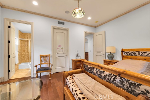 Nestled on a quiet, tree-lined street, this exquisite residence was rebuilt in 2007 and offers over 6,250 sq ft of luxurious living space on a sprawling 22,804 sq ft lot. Designed for comfort and entertaining, the home features 6 spacious bedrooms, 7.5 bathrooms, and a versatile bonus room with two bedrooms and the bonus room conveniently located on the first floor. Step through the grand double-door entry into a dramatic foyer with soaring vaulted ceilings, elegant crown molding, and a spacious formal living room with a marble fireplace. The bright, French-style kitchen is a chef s dream, showcasing custom European Craftsman cabinetry, granite countertops, a large center island, and top-of-the-line Sub-Zero and Wolf appliances. A charming breakfast area overlooks the expansive, flat backyard with a sparkling swimming pool ideal for hosting guests or enjoying peaceful mornings. Upstairs, a custom antique wrought iron staircase leads to a gallery landing with hardwood flooring and four deluxe bedrooms. The luxurious primary suite includes a private balcony, dual walk-in closets, and a cozy fireplace. Additional highlights include marble flooring on the first level, an integrated sound system, a fully gated semi-circular driveway, a 3-car garage, and solar panels for energy efficiency. Blending timeless elegance with modern amenities, this exceptional home is a rare opportunity to enjoy premium living in one of Woodland Hills most desirable neighborhoods. Owner may carry and or consider lease option.Interested in this Listing?