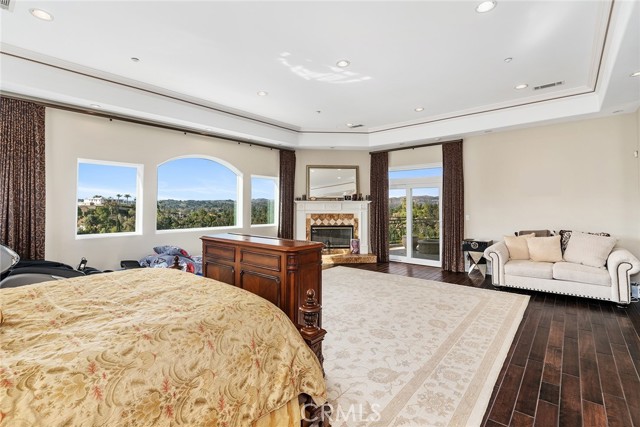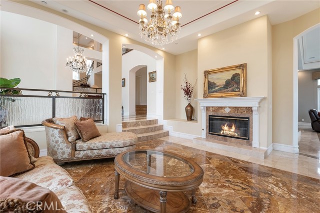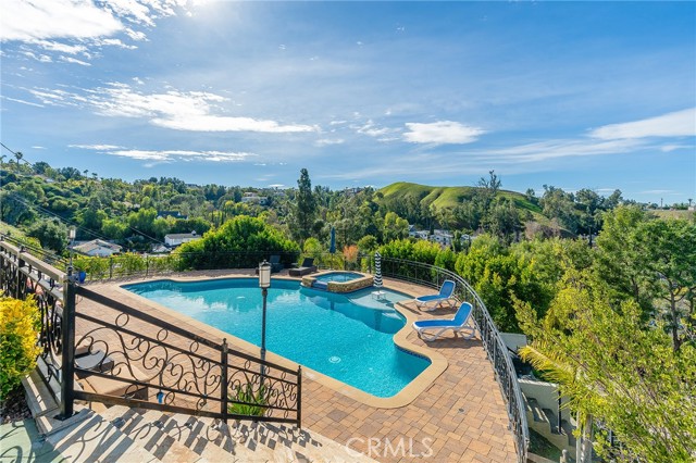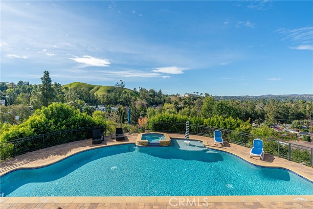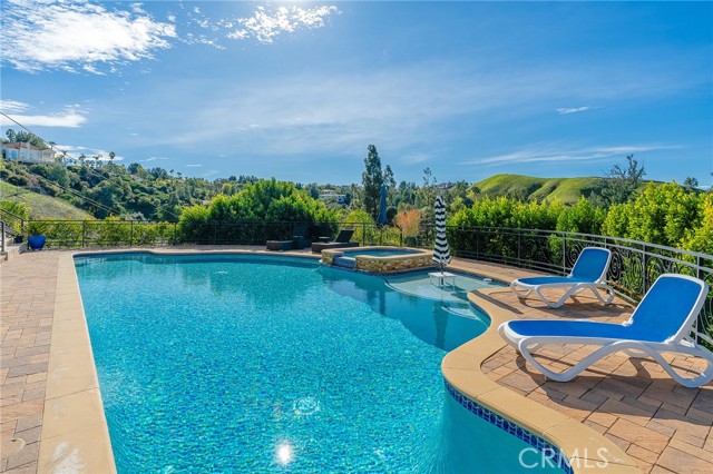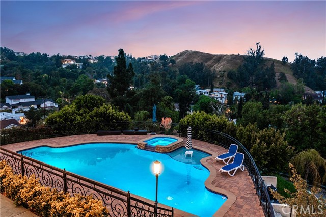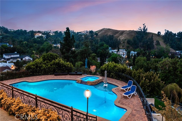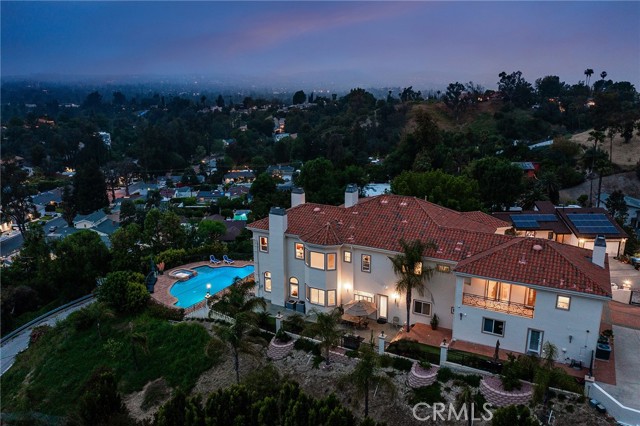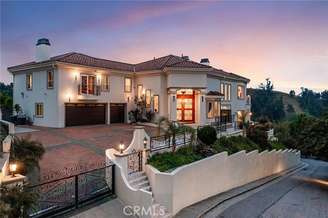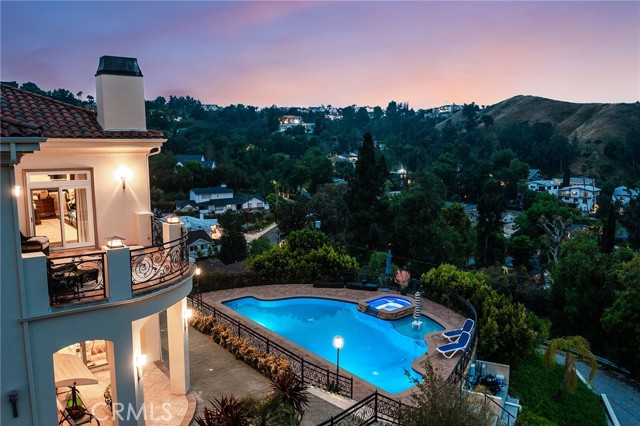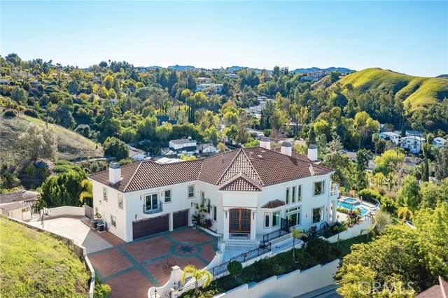 Remarkable gated trophy estate situated on a private bluff with panoramic jaw dropping views overlooking the mountains, city lights & Valley! Custom built in 2006 and located South of the Blvd on a secluded cul-de-sac of only 3 homes, this majestic approx. 6,700 SF residence boasts remarkable craftsmanship, luxurious living spaces, & is an entertainer s dream with separate 2+2 guest apartment. Automatic security gates open to a wide driveway with parking for multiple cars for large gatherings. A magnificent double door entry leads to a grand two-story foyer with opulent chandelier & sitting area. The formal dining room is basked in natural light from two-story picture windows & has tray ceiling with elegant chandelier. The spacious formal living room has large picture windows, mantled fireplace, tray ceiling, & access to the covered patio. The separate massive family room has large picture windows that overlook the incredible vistas, fireplace, & direct access to the backyard. The chef s kitchen opens directly to the family room & boasts separate breakfast room, center island with prep sink, stainless Viking appliances including double ovens & 6-burner stove with griddle, custom cabinetry, walk-in pantry, & additional breakfast bar seating. The first level also features guest bedrooms with en-suite bathrooms, powder bathroom, & large laundry room with sink and built-in storage. Upstairs you will find 4 generously sized bedrooms all with en-suite private bathrooms & walk-in closets plus an oversized bonus loft. The grand primary suite features fireplace, private viewing deck overlooking the incredible mountain & city light views, large walk-in closet with built-ins, and sumptuous private bathroom with dual sinks, separate makeup vanity, walk-in shower, spa tub with picture window, & romantic fireplace. One of the secondary bedrooms is ideal for office featuring fireplace & two balcony decks. Entertain in a one-of-a-kind backyard oasis boasting recently built pool & spa with Baja shelf all overlooking astounding Valley views, covered patio for alfresco dining, & basketball/play area. The separately accessed approx. 1,000 SF guest unit (included in total SF) features 2 beds, 2 baths, living room & full kitchen. Zoned for award-winning El Camino, Hale & Calabash charter schools & adjacent to Warner Center, Ventura Blvd, dining/shopping at Westfield Mall/Village, minutes to Topanga Canyon/Malibu & easy freeway access. Don t miss this truly spectacular offering.