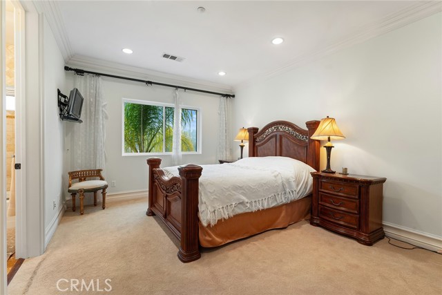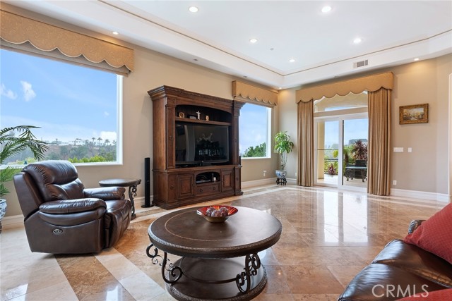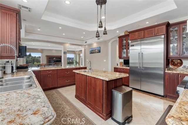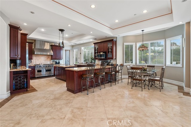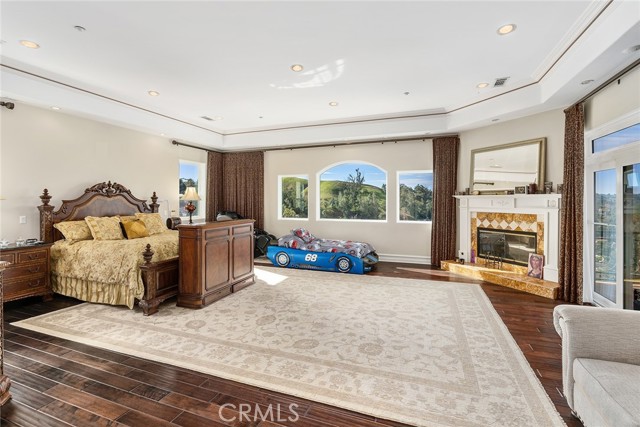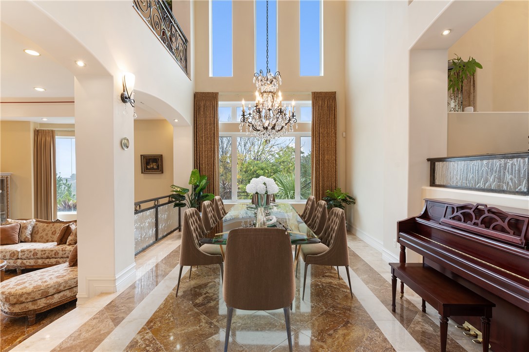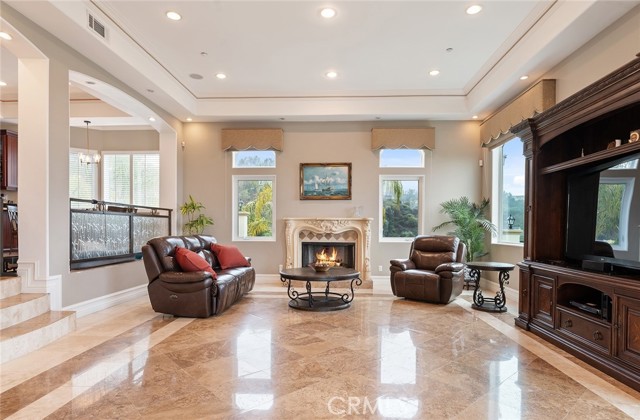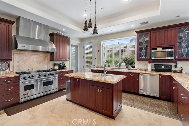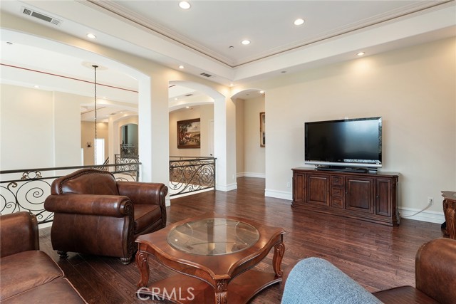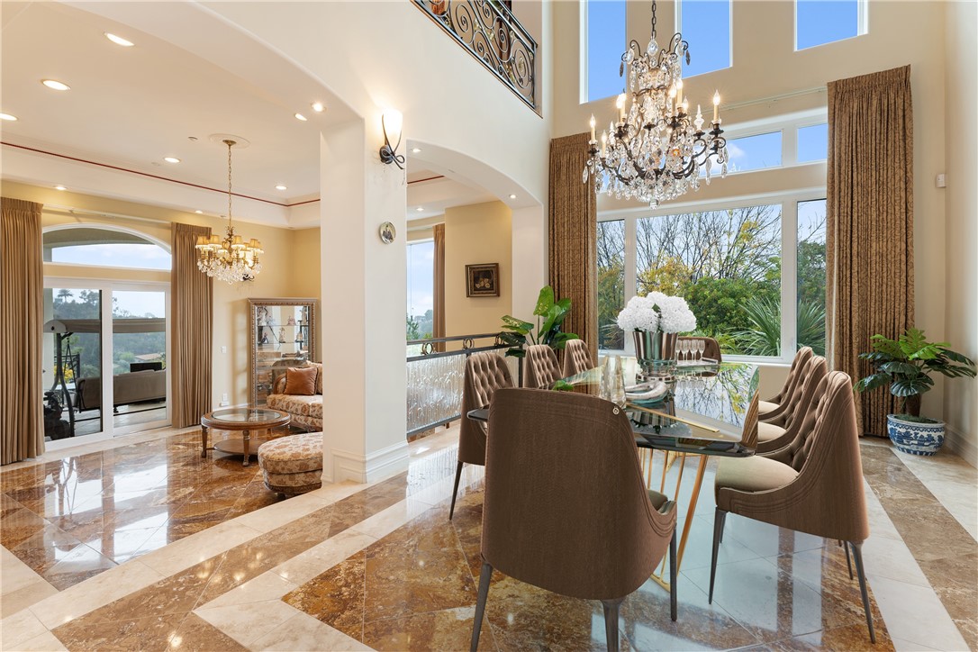 Remarkable gated trophy estate situated on a private bluff with panoramic jaw dropping views overlooking the mountains, city lights & Valley! Custom built in 2006 and located South of the Blvd on a secluded cul-de-sac of only 3 homes, this majestic approx. 6,700 SF residence boasts remarkable craftsmanship, luxurious living spaces, & is an entertainer s dream with separate 2+2 guest apartment. Automatic security gates open to a wide driveway with parking for multiple cars for large gatherings. A magnificent double door entry leads to a grand two-story foyer with opulent chandelier & sitting area. The formal dining room is basked in natural light from two-story picture windows & has tray ceiling with elegant chandelier. The spacious formal living room has large picture windows, mantled fireplace, tray ceiling, & access to the covered patio. The separate massive family room has large picture windows that overlook the incredible vistas, fireplace, & direct access to the backyard. The chef s kitchen opens directly to the family room & boasts separate breakfast room, center island with prep sink, stainless Viking appliances including double ovens & 6-burner stove with griddle, custom cabinetry, walk-in pantry, & additional breakfast bar seating. The first level also features guest bedrooms with en-suite bathrooms, powder bathroom, & large laundry room with sink and built-in storage. Upstairs you will find 4 generously sized bedrooms all with en-suite private bathrooms & walk-in closets plus an oversized bonus loft. The grand primary suite features fireplace, private viewing deck overlooking the incredible mountain & city light views, large walk-in closet with built-ins, and sumptuous private bathroom with dual sinks, separate makeup vanity, walk-in shower, spa tub with picture window, & romantic fireplace. One of the secondary bedrooms is ideal for office featuring fireplace & two balcony decks. Entertain in a one-of-a-kind backyard oasis boasting recently built pool & spa with Baja shelf all overlooking astounding Valley views, covered patio for alfresco dining, & basketball/play area. The separately accessed approx. 1,000 SF guest unit (included in total SF) features 2 beds, 2 baths, living room & full kitchen. Zoned for award-winning El Camino, Hale & Calabash charter schools & adjacent to Warner Center, Ventura Blvd, dining/shopping at Westfield Mall/Village, minutes to Topanga Canyon/Malibu & easy freeway access. Don t miss this truly spectacular offering.
