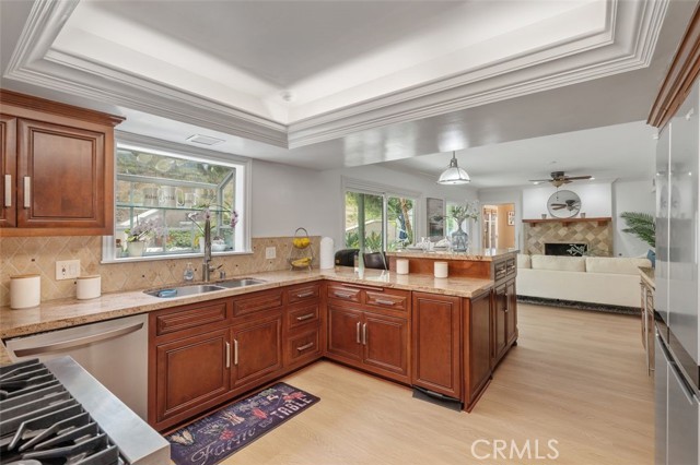 Tucked away on a quiet street "south of the boulevard" in prime Woodland Hills, this spacious two-story residence offers the perfect blend of comfort, versatility, and location. A standout feature is the music studio perfect for musicians, podcasters, or anyone in need of a private creative space. With four generously sized bedrooms and three full bathrooms upstairs, this home works for large and multi generational families. The downstairs sunroom and bonus area off the den provide great flexible space to spread out. The open floor plan is wonderful for entertaining large gatherings. The well-designed layout includes expansive living areas, abundant natural light, and seamless indoor-outdoor flow. Outside is a wonderful yard that provides privacy and views from the gazebo at the top of the hill. Ideally located minutes from Calabasas, close to award-winning schools and situated right behind Gelson s Marketplace, offers both convenience and serenity in one of the Valley s most sought-after neighborhoods. The music studio is not included in the square footage of the property. Come see this special home today! Price improvement - now offered at just $498 per square foot!Interested in this Listing?