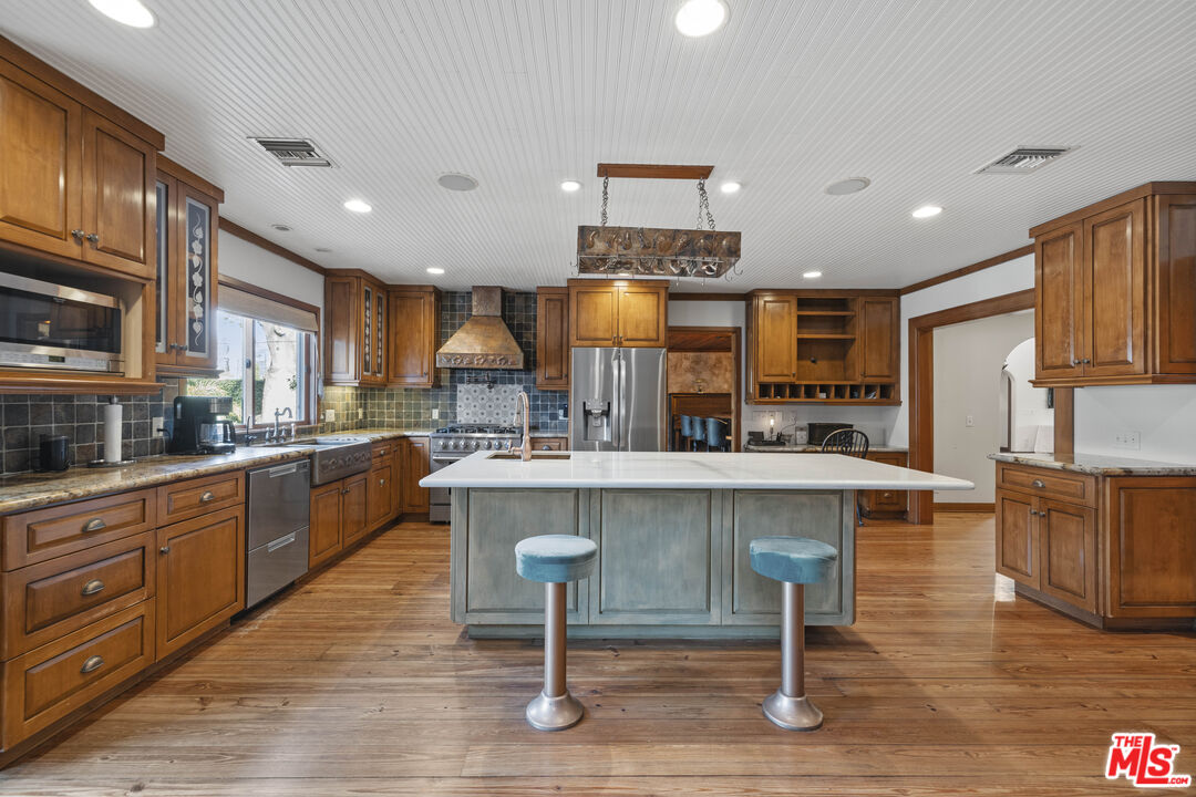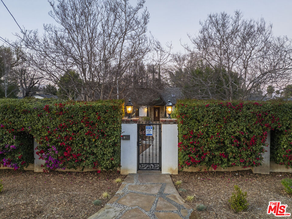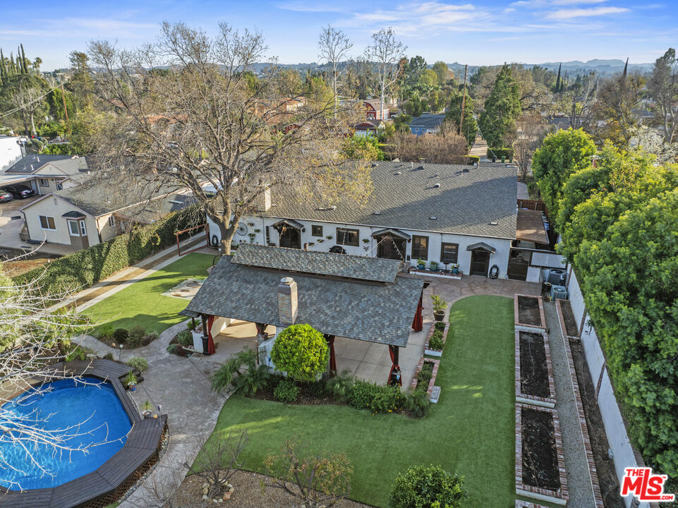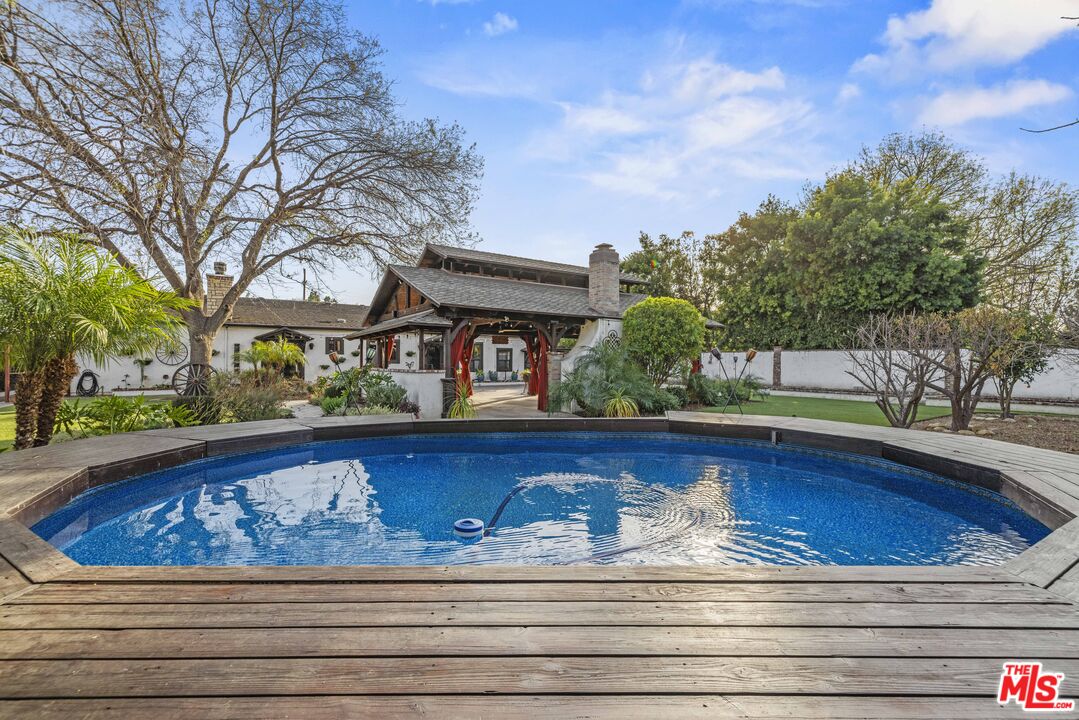 A Homesteader & Creative's Dream Estate; Just under an acre and ideal for a Family Compound. This 4,548 sq. ft. Double gated estate in the heart of Walnut Acres, blending privacy, luxury, and the opportunity for self-sufficient living and artistic expression. Designed for those who value craftsmanship, sustainability, and inspired living. This property offers endless possibilities. The main home features 3 bedrooms and 2.5 bathrooms, with the primary in its own wing of the home creating that needed separation from the rest of the house. The chef's kitchen is both functional and elegant, boasting a large center island with additional prep sink and custom seating, handcrafted range hood, copper accents, custom cabinetry, high-end appliances, and a walk-in pantry. A built-in desk for workspace functionality, adjacent to the laundry room and wood-lined linen / storage room, adds to the home's thoughtful design. One of the most cherished centerpieces of the home is the vintage Chicago bar (circa 1927), meticulously restored and off the formal dining room which faces the vintage wine rack custom made from terracotta pipes. The homes seamless flow leads into the private home theater, complete with plush reclining seating, built-in surround sound and elegant wainscot detailing. After dinner and cocktails, step outside to the expansive covered pavilion, exposed beams, stone fireplace, sets the perfect space for ultimate relaxation under the stars. Elegant lighting, gas hook-ups for BBQ enthusiast adding to the grand entertainer's lifestyle. Off the rear of the house with a separate entrance leads to the attached 1-bedroom, 1-bathroom guest suite with its own private laundry room which creates the perfect amount of privacy for multi-generational living. Long, gated driveway leads to an ample parking and additional storage for all your tools and toys. The 1,800 sq. ft. 8-car garage has commercial grade power, ideal for a workshop, artist's studio, creative space, or potential, ADU conversion. Leaving an additional Single-car garage attached to the main house. The rear yard offering ample space and privacy consists of an Orchard, raised garden beds and multiple above-ground planters for growing fresh produce all year round, Coop for fresh eggs $$$$, Pool with a wood deck for ultimate relaxation. This estate is perfect for multiple situations let your imagination flow. Animal friendly property, horse or race cars, this private family compound, has it all. Multi-generational retreat, self sufficiency or an inspired lifestyle. Let your dreams come true. Just under an acre of land, the possibilities are endless. DO NOT miss this amazing opportunity.Interested in this Listing?