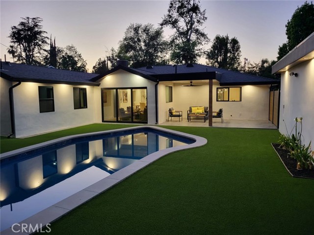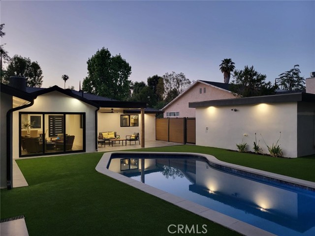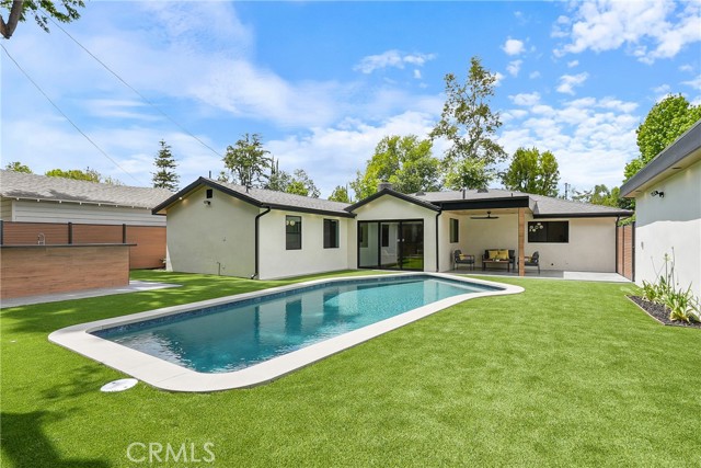 Welcome to 23240 Leonora Dr, located in the sought-after Walnut Acres neighborhood of Woodland Hills. Set on a quiet dead-end street, this beautifully remodeled home sits on a nearly 9,000 sq ft lot, offering privacy, space, and comfort. The main home boasts 5 spacious bedrooms and 4 modern bathrooms across 2,500 sq ft. The primary suite features a walk-in closet and a full en-suite bathroom. A large open patio and built-in BBQ area create the perfect setting for entertaining and relaxation. The property also includes a detached, permitted fully equipped 400 sq ft ADU with a private driveway and washer and dryer ideal for guests, rental income, or a home office. A large driveway provides parking for over 6 cars, making this home as functional as it is stylish. This home was fully renovated in 2025 and offers exceptional indoor-outdoor living with a pool, expansive lawn, private BBQ area, and a tremendous opportunity to expand in the future. Inside, the formal open living room, Milgard windows, and a Sliding Glass door seamlessly opens to the entertainer s backyard. The central kitchen is a chef s dream with an oversized island, high-end stainless-steel appliances, and quartz countertops. A spacious family room, a fireplace, and sliding doors lead to the outside. The home has 5 bedrooms, including a luxurious primary suite, a massive walk-in closet, and a modern en-suite bath. The resort-style backyard is designed for entertaining, featuring a swimming pool, a brick patio, updated electrical panel, AC, water heater, and pool equipment. Zoned for award-winning Woodlake Charter Elementary and El Camino Real Charter High School, with easy access to Warner Center, The Topanga Village, dining, and shopping this exceptional home is a rare find! A rare gem in one of Woodland Hills most desirable neighborhoods. Welcome to this sought-after location near parks and schools,1 min from 101 Freeway, The Commons at Calabasas, and Westfield Topanga shopping centers. Malibu beaches are also just a quick canyon drive away. Some photos are virtually staged.Interested in this Listing?
