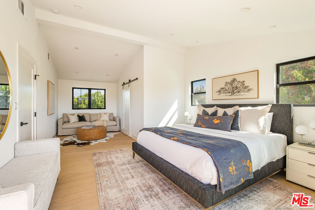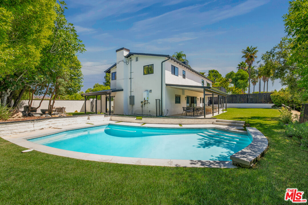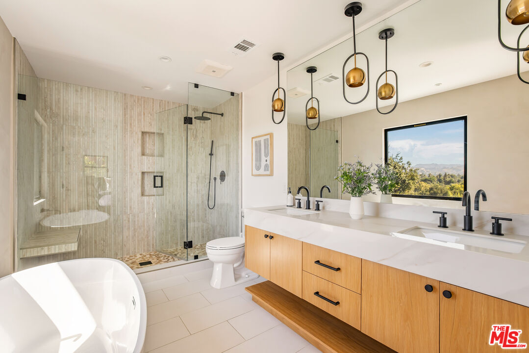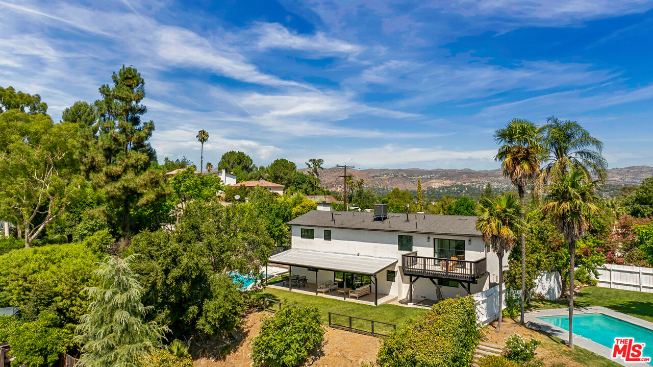 Welcome to this beautifully updated home with stunning valley and mountain views, nestled in the quiet and desirable Walnut Acres neighborhood. Located on a peaceful double cul-de-sac, this home greets you with a stylish double-door entrance, leading into a bright and airy space with amazing views from almost every room. The main house features 4 spacious bedrooms upstairs and an extra bedroom on the main floor, perfect for guests or a home office. With 5 bathrooms and approximately 3,000 square feet of living space, this home has all the room you need. The kitchen is a showstopper, with sleek quartz countertops, a chic tile backsplash, and top-of-the-line Viking appliances that make cooking a pleasure. The living areas are open and filled with natural light, offering a cozy spot to relax or entertain friends and family. The primary suite is your personal retreat, complete with a sitting area, a walk-in closet, and a spa-like bathroom with double sinks, a walk-in shower, and a freestanding tub. Step out onto the spacious deck and take in the breathtaking views. It's the perfect place to unwind. Outside, the backyard is made for entertaining, with a large covered patio for outdoor dining, a sparkling pool, a fire pit for those cool evenings, and a beautifully landscaped garden. Plus, there's a separate attached ADU with one bedroom and one bathroom, giving you plenty of options for guests, a home office, or even some extra rental income. All of this sits on a generous 11,017-square-foot lot, just a short drive from top-rated schools, great shopping, and dining at Warner Center, The Commons, and The Village. This home is the perfect blend of chic style and comfortable living.Interested in this Listing?