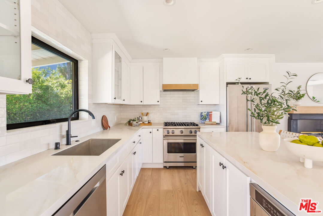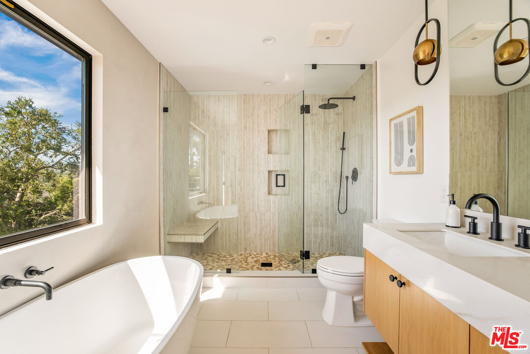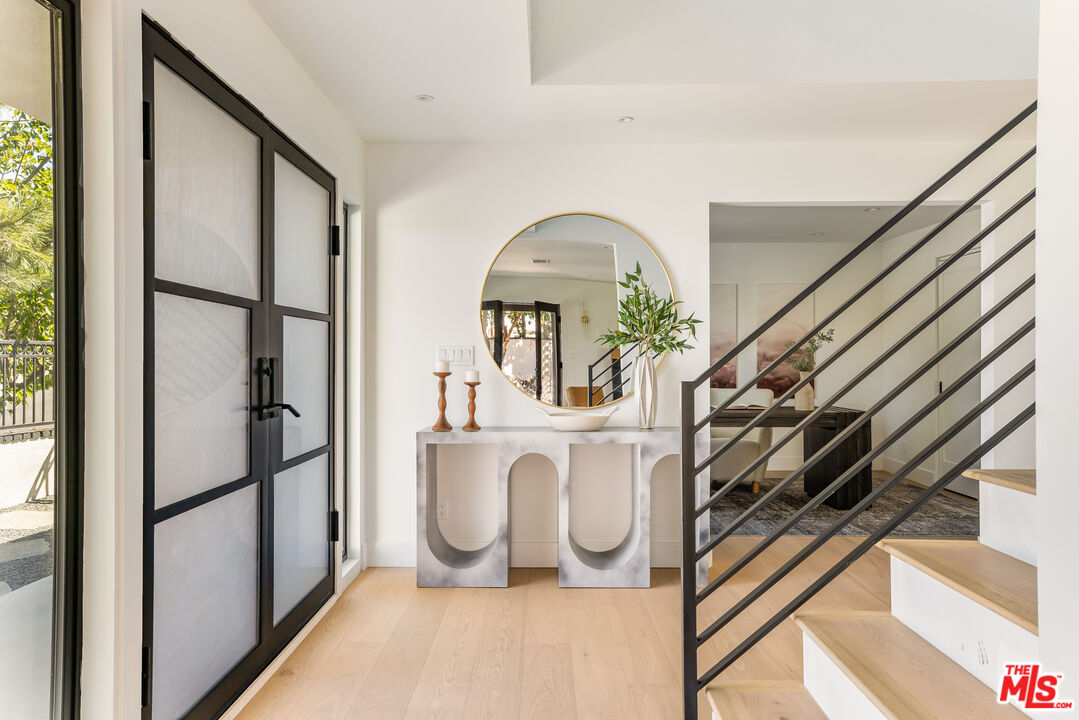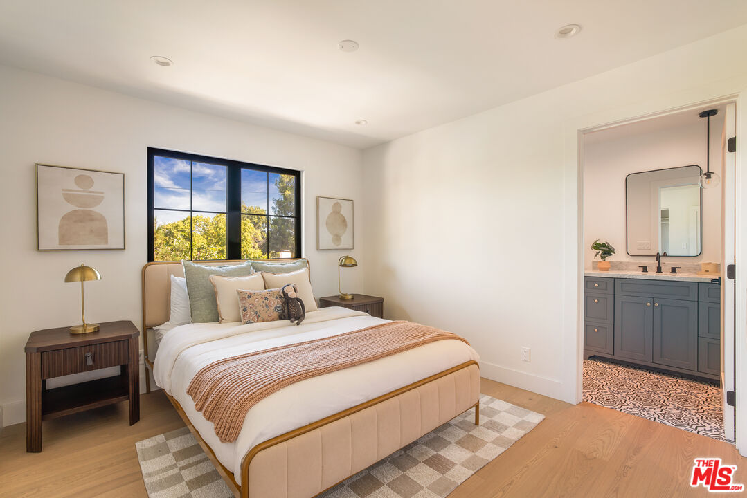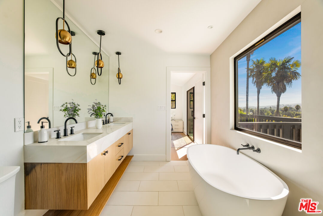 Welcome to this beautifully updated home with stunning valley and mountain views, nestled in the quiet and desirable Walnut Acres neighborhood. Located on a peaceful double cul-de-sac, this home greets you with a stylish double-door entrance, leading into a bright and airy space with amazing views from almost every room. The main house features 4 spacious bedrooms upstairs and an extra bedroom on the main floor, perfect for guests or a home office. With 5 bathrooms and approximately 3,000 square feet of living space, this home has all the room you need. The kitchen is a showstopper, with sleek quartz countertops, a chic tile backsplash, and top-of-the-line Viking appliances that make cooking a pleasure. The living areas are open and filled with natural light, offering a cozy spot to relax or entertain friends and family. The primary suite is your personal retreat, complete with a sitting area, a walk-in closet, and a spa-like bathroom with double sinks, a walk-in shower, and a freestanding tub. Step out onto the spacious deck and take in the breathtaking views. It's the perfect place to unwind. Outside, the backyard is made for entertaining, with a large covered patio for outdoor dining, a sparkling pool, a fire pit for those cool evenings, and a beautifully landscaped garden. Plus, there's a separate attached ADU with one bedroom and one bathroom, giving you plenty of options for guests, a home office, or even some extra rental income. All of this sits on a generous 11,017-square-foot lot, just a short drive from top-rated schools, great shopping, and dining at Warner Center, The Commons, and The Village. This home is the perfect blend of chic style and comfortable living.Interested in this Listing?