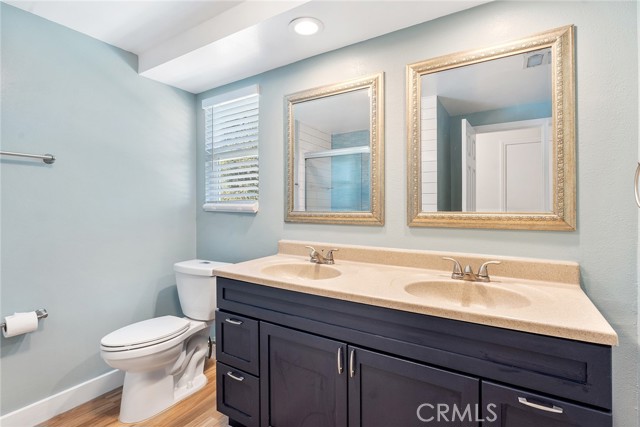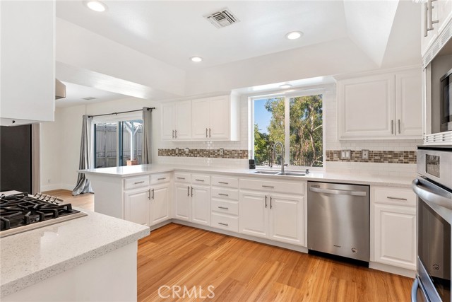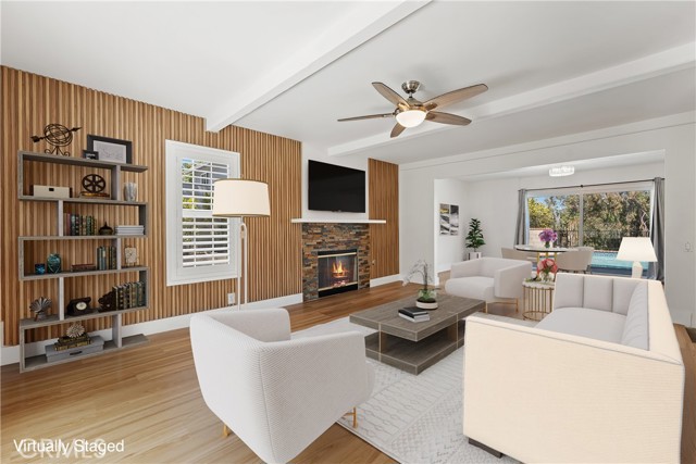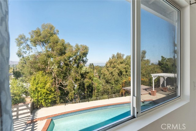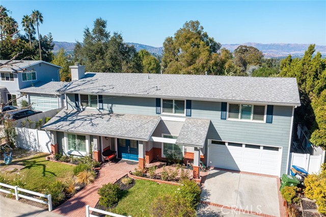 Walnut Acres upgraded pool home located on a quiet cul-de-sac with rare Valley and mountain views! The front yard features great curb appeal with white picket fencing, grass lawn, covered front porch, and driveway that leads to the 2-car garage with direct access. Step into the formal entry to find a light and bright floor plan with wide plank flooring found throughout. The family room features stacked stone fireplace with new accent wall, wood beamed ceiling, and large picture windows with plantation shutters. The formal dining room has direct kitchen access and a large glass slider that opens to the backyard. The remodeled kitchen overlooks the pool and Valley vistas boasting quartz counters with tile backsplash, stainless appliances including Frigidaire 5-burner stovetop and oven, warming drawer, and pantry storage. There is a separate den/bonus room with large picture windows. The first level also has a remodeled guest powder bath with newer vanity and subway tile backsplash; a laundry room with storage cabinets; and another remodeled pool bathroom with updated vanity, tile backsplash, and walk-in shower. Upstairs you will find four bedrooms and two additional bathrooms. The massive oversized primary suite features balcony deck overlooking the grounds perfect for taking in the amazing Valley views, large walk-in closet, and private remodeled en-suite bathroom with dual sinks and large walk-in shower. The three secondary bedrooms are all large sized featuring spacious closets. An upgraded hall bathroom has dual sinks, bathtub, and shower with glass tiling. The entertainer s backyard boasts a large swimming pool, two covered pergolas for outdoor dining, plus large deck perfect for taking in the stunning Valley, mountain, and city light views! Adjacent to dining/shopping at the Westfield Mall/Village, The Calabasas Commons, & zoned for award-winning El Camino & Hale charter schools.Interested in this Listing?
