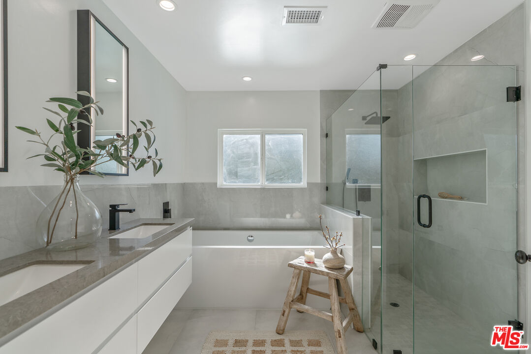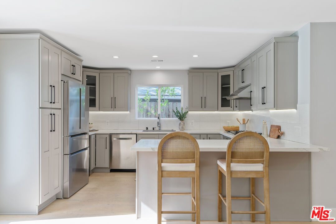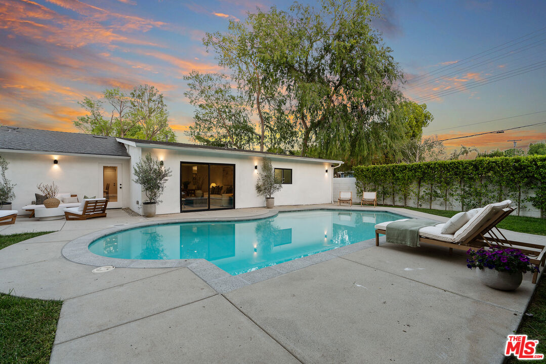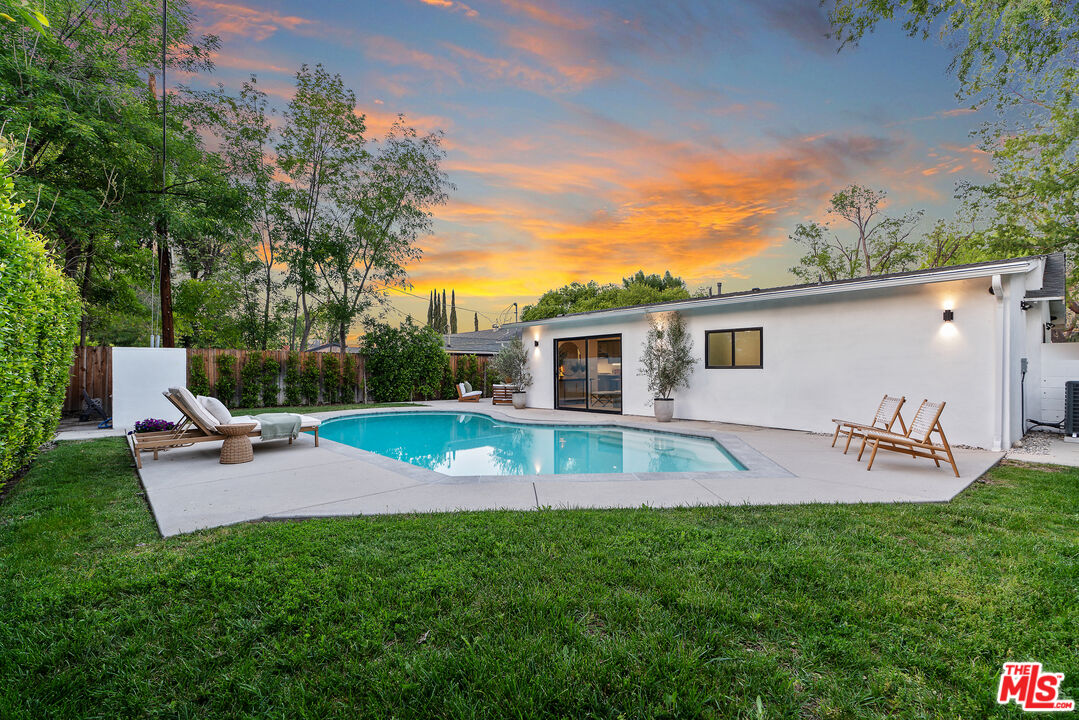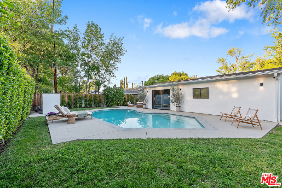 Welcome home to 24057 Sylvan St. This beautifully reimagined home showcases a complete 2022 ground-up renovation with an impressive 1,753 square feet of living space. Step through a custom entry door into a light-filled open floor plan featuring wide-plank white oak floors throughout. The spacious living room flows effortlessly to the newly resurfaced pool and private backyard, creating the perfect setting for indoor-outdoor entertaining. The chef's designer kitchen is equipped with high-end stainless-steel appliances, a wine fridge, under-cabinet LED lighting, countertop seating and direct access to the outdoor entertaining area. This 3-bedroom, 3-bathroom home includes a luxurious primary suite with a walk-in closet outfitted with custom cabinetry and a spa-inspired bathroom. Each additional bedroom features an en-suite bathroom and ample closet space. Enjoy privacy in the landscaped backyard with lush greenery, gas hookup, and plenty of space to relax or host guests. Modern features include a state-of-the-art security system with in-home camera viewing, EV Charging, energy-efficient SMART home technology, and motion-sensor entry lighting. The attached garage provides direct home access and includes a second full-size refrigerator alongside the washer and dryer. Additional upgrades include a newer roof, electrical system, plumbing, kitchen, bathrooms, and custom closets. Located on a large corner lot in a desirable tree lined neighborhood near top-rated schools including El Camino Real Charter High School, George Ellery Hale Charter Academy, and Lockhurst Drive Charter Elementary. Minutes from Westfield Topanga, The Village, and West Hills Hospital, this home offers the very best of Woodland Hills and Calabasas adjacent living.Interested in this Listing?