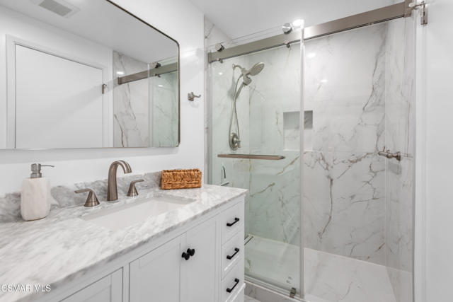 Highly desirable custom single story home located south of the boulevard in one of Woodland Hills premier neighborhoods! This custom 3+2 home features freshly painted interior & exterior, lots of double paned Milgard windows for natural light and laminate wood-like plank & refinished parquet wood flooring throughout. Beautifully remodeled bathrooms. Double front door entry with large foyer area. Oversize kitchen with white tile counters, lots of cabinets, stainless steel appliances including double oven and separate area for additional kitchen prepping,storage, sewing corner, etc. Kitchen opens to large family room. Huge living room with beautiful open beam vaulted ceilings, gas white brick fireplace and separate formal dining room area. Large primary bedroom with lots of windows for views of backyard, walk in closet with built in organizer and beautifully remodeled ensuite bathroom includes marble-like tile shower/tub enclosure, wood vanity with white stone countertop and new hardware & fixtures. Nice size secondary bedrooms and a beautifully remodeled jack&jill bathroom which features marble-like tile flooring, white vanity with marble countertop and large shower with marble/like tile & glass enclosure and new hardware and fixtures. Indoor laundry area and lots of hall storage cabinets. Peaceful private backyard with large concrete area and neatly landscaped. Gated side entrance to large grassy turf area and ample space for parking. Oversize insulated shed included. 2 car covered carport with large storage cabinet. Tankless water heater. One of a kind custom home. Come make it yours!Interested in this Listing?