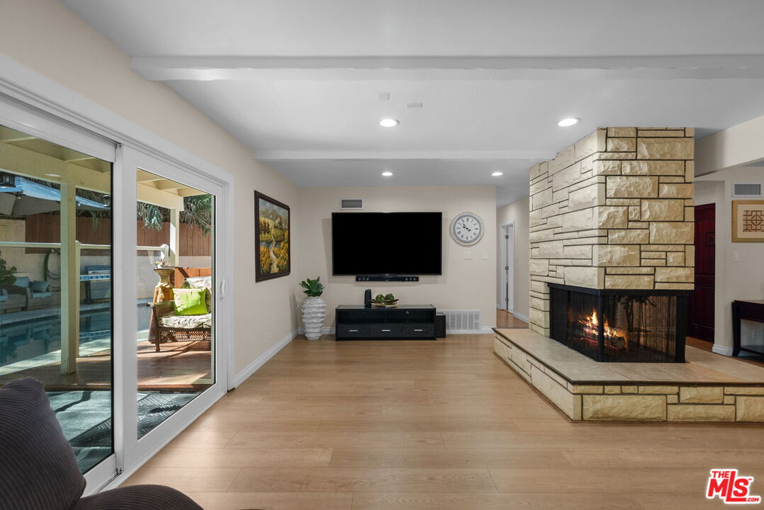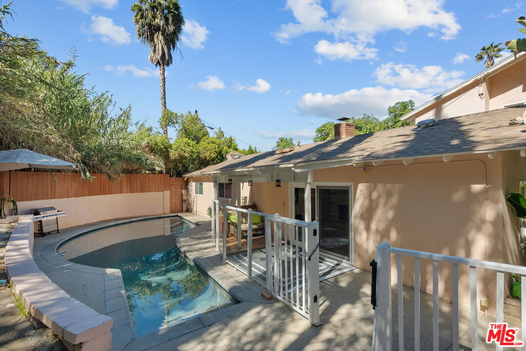 Charming Pool Home South of Ventura Blvd Woodland HillsNestled on a quiet cul-de-sac south of Ventura Blvd, this beautifully cared-for 4-bedroom, 2-bathroom home offers warmth, comfort, and thoughtful updates in one of Woodland Hills' most desirable neighborhoods.From the moment you step inside, you'll feel the inviting flownatural light pours into the spacious living room, where a floor-to-ceiling stone fireplace and recessed lighting set the stage for cozy evenings or effortless entertaining.The functional kitchen features sleek stainless steel appliances, ample cabinetry, and flows seamlessly into a spacious dining areaeasily adaptable as a home office, creative space, or casual gathering spot with friends.Downstairs, you'll find three well-sized bedrooms and a stunning oversized marble bathroom complete with a luxurious jacuzzi tubideal for relaxation. Upstairs, the private primary suite offers a peaceful retreat with its own en-suite bath, featuring double vanities and a generous walk-in shower.Step outside to your own backyard oasiscomplete with a sparkling saltwater pool, covered patio, and lush greenery that provides exceptional privacy. It's the perfect setting for entertaining, sun-soaked weekends, or quiet mornings with coffee.Located close to top-rated schools, shopping, and dining, this move-in-ready gem is more than just a homeit's a lifestyle you'll fall in love with.Interested in this Listing?