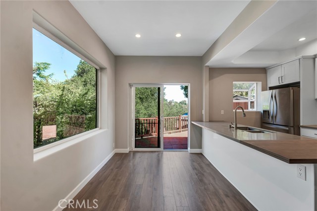 Tucked away among the trees, this charming 2-bedroom, 1-bathroom home is nestled south of the Boulevard in desirable Woodland Hills offering the perfect blend of privacy, comfort, and modern updates. Step into the beautifully remodeled kitchen featuring classic shaker cabinets, quartz countertops, a subway tile backsplash, and stainless steel appliances. The living and dining areas are filled with natural light and each opens to the outdoor space through sliding glass doors seamlessly blending indoor and outdoor living. Both bedrooms are spacious, and the updated bathroom boasts a newer bathtub and contemporary vanity. Outside, a large deck and patio offer endless possibilities for relaxing, entertaining, or creating your dream outdoor retreat. Additional highlights include an indoor laundry area and a detached two-car garage. Don t miss this move-in-ready gem located in one of Woodland Hills most sought-after neighborhoods!Interested in this Listing?