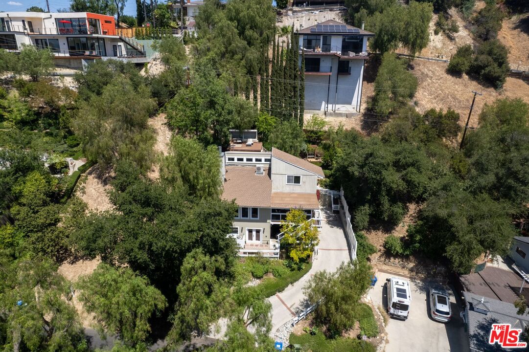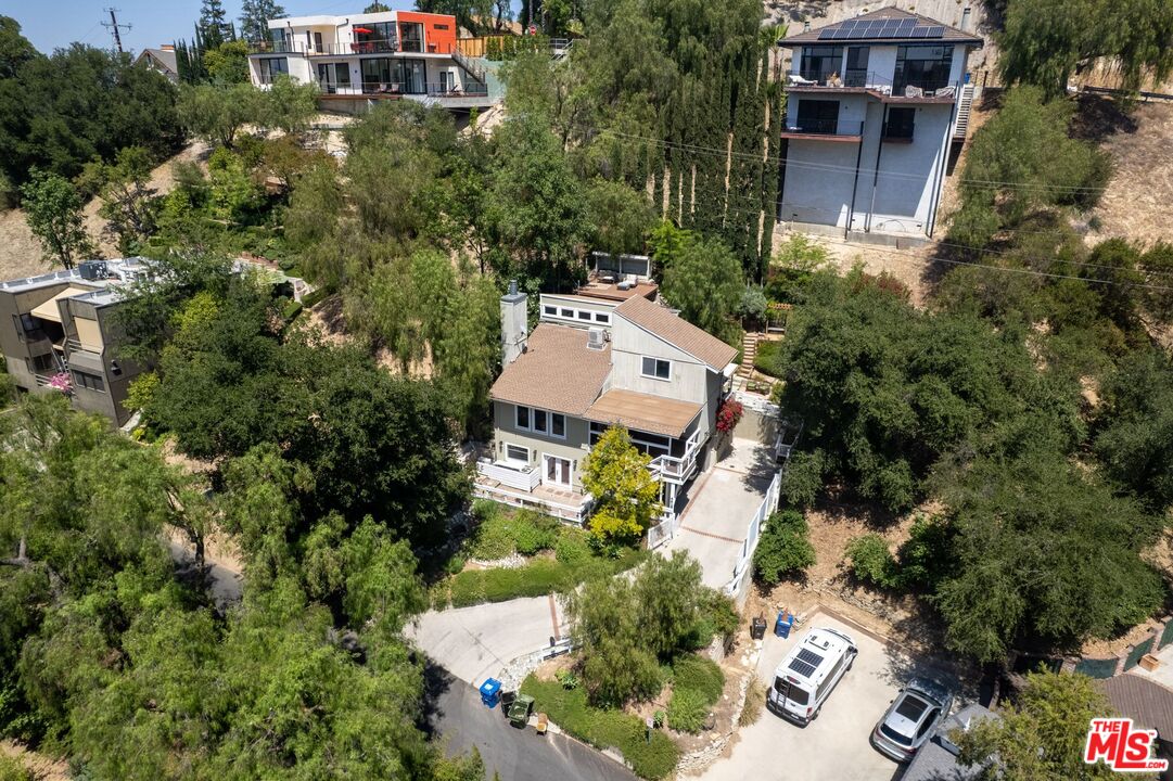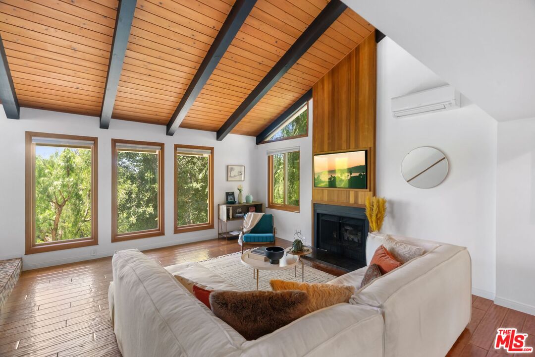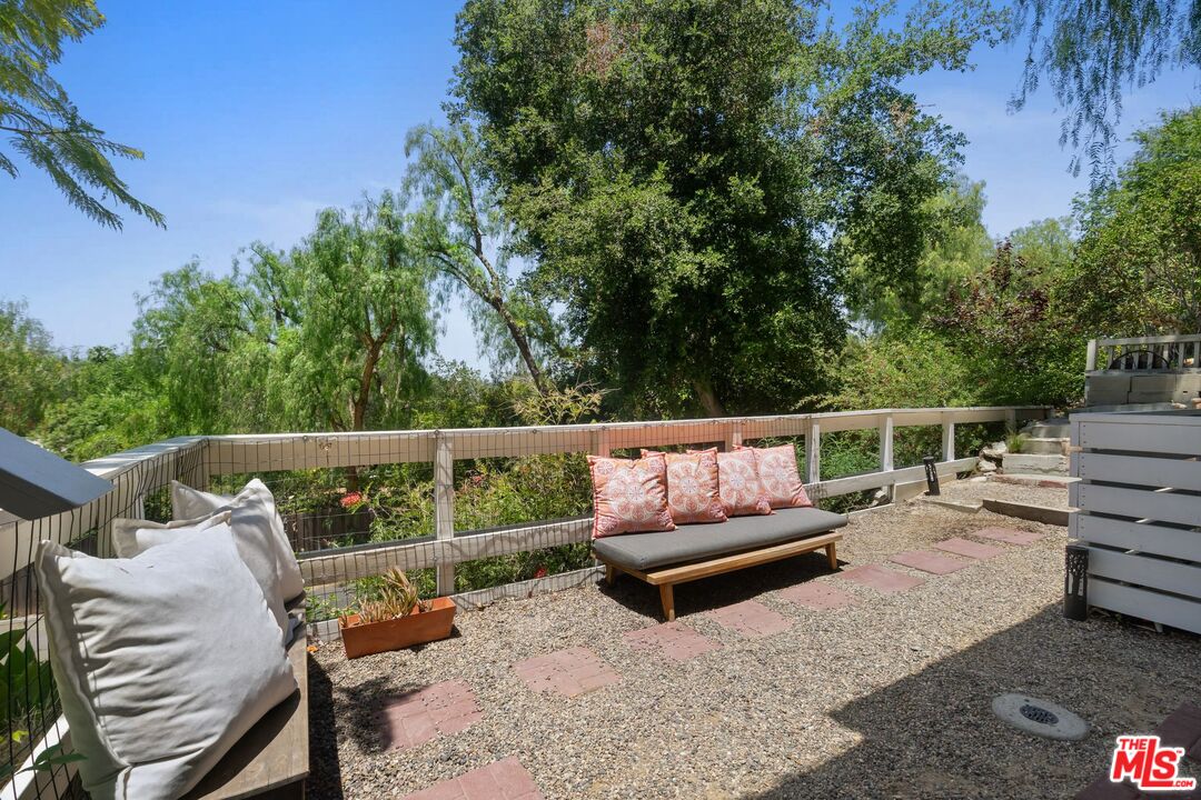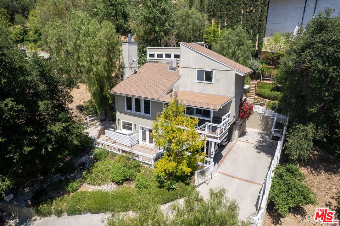 Discover this peaceful and beautifully updated home located in the quiet hills of Woodland Hills. A covered front patio leads to a step-down living room with vaulted, beamed ceilings, a striking floor-to-ceiling fireplace, and large windows overlooking mature trees. The modern kitchen includes quartz countertops, updated appliances, and wood flooring, with French doors that open to a covered patio, perfect for dining and entertaining outdoors. The lower level features a spacious office and a newly remodeled bathroom with quartz counters, glass elements, and decorative tile. Upstairs, the primary suite offers a tranquil, cabin-like feel with high ceilings and large windows. The ensuite bath includes a skylight-lit glass shower, quartz counters, and custom cabinetry. Step out to a Zen-inspired backyard with a spa, waterfall, and peaceful patio space. The home also includes a second upstairs bedroom, beautifully landscaped gardens with multiple sitting areas, and scenic views from most rooms. A two-car garage, covered parking with gated entry, new HVAC system, ductless A/C unit, and upgraded windows complete this move-in-ready home. Great income potential with newly built ADU with separate entrance and address! Don't miss the best value in Woodland HillsInterested in this Listing?