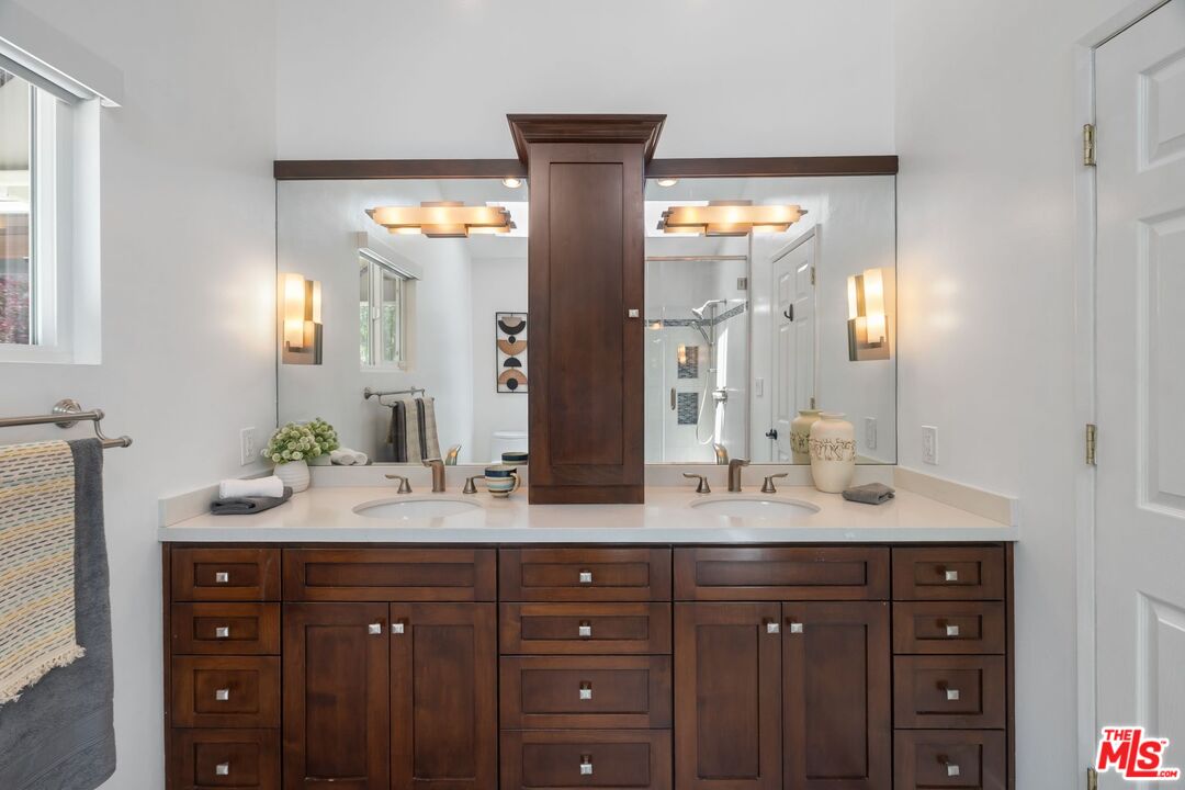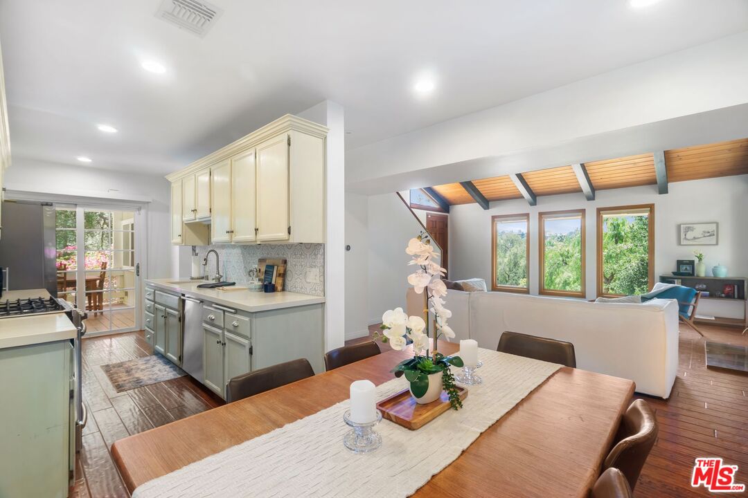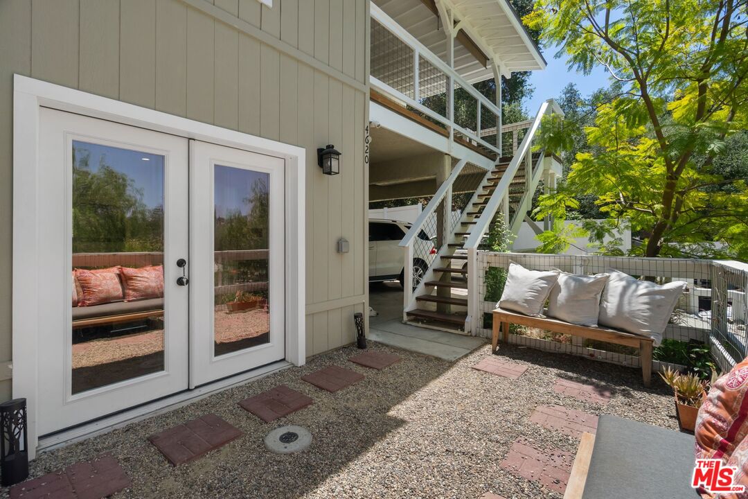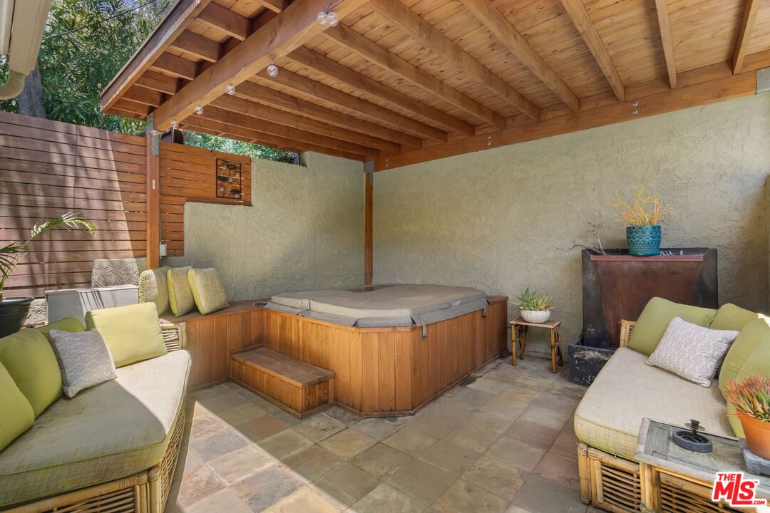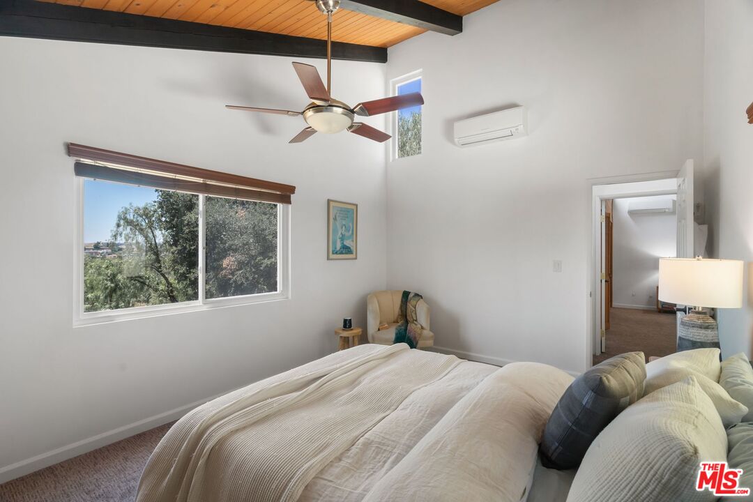 Discover this peaceful and beautifully updated home located in the quiet hills of Woodland Hills. A covered front patio leads to a step-down living room with vaulted, beamed ceilings, a striking floor-to-ceiling fireplace, and large windows overlooking mature trees. The modern kitchen includes quartz countertops, updated appliances, and wood flooring, with French doors that open to a covered patio, perfect for dining and entertaining outdoors. The lower level features a spacious office and a newly remodeled bathroom with quartz counters, glass elements, and decorative tile. Upstairs, the primary suite offers a tranquil, cabin-like feel with high ceilings and large windows. The ensuite bath includes a skylight-lit glass shower, quartz counters, and custom cabinetry. Step out to a Zen-inspired backyard with a spa, waterfall, and peaceful patio space. The home also includes a second upstairs bedroom, beautifully landscaped gardens with multiple sitting areas, and scenic views from most rooms. A two-car garage, covered parking with gated entry, new HVAC system, ductless A/C unit, and upgraded windows complete this move-in-ready home. Great income potential with newly built ADU with separate entrance and address! Don't miss the best value in Woodland HillsInterested in this Listing?