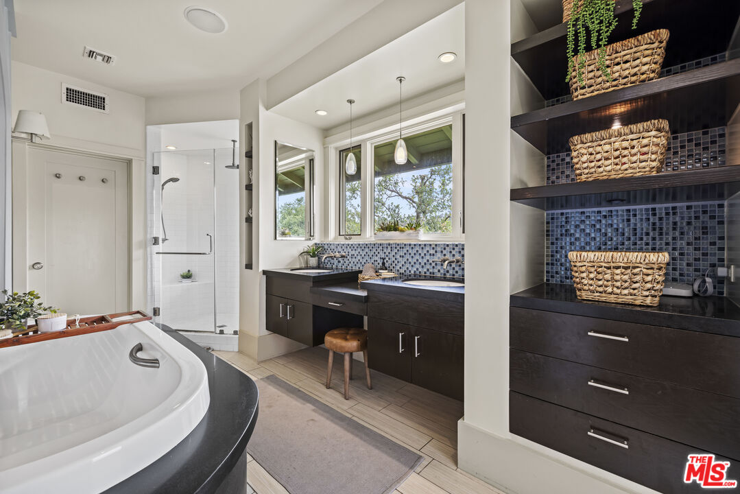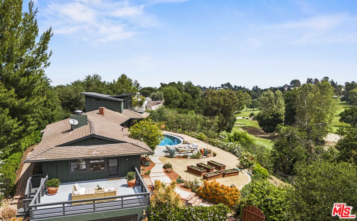 Perched above the Woodland Hills Country Club, this classic 1953 mid-century modern home offers breathtaking panoramic views on nearly 3/4 of an acre. From the moment you arrive through custom wrought iron security gates, you're welcomed into a private sanctuary featuring a romantic courtyard, lush landscaping, and an organic vegetable garden that blends seamlessly into the natural surroundings. A gorgeous pool, spacious viewing deck, and an enchanting sitting area create the perfect backdrop for tranquil moments or sophisticated entertaining. Walls of glass invite the outside in, while expansive living areas flow gracefully into the outdoor spaces, all thoughtfully designed to celebrate the stunning scenery. The grand primary wing offers a peaceful retreat complete with its own private balcony overlooking the greens. An additional, fully equipped ADU with a separate entrance provides ultimate flexibility for guests, extended family, or rental income. Designed with the discerning in mind, this residence embodies private, peaceful high-end living in one of Woodland Hills' most coveted locations.Interested in this Listing?