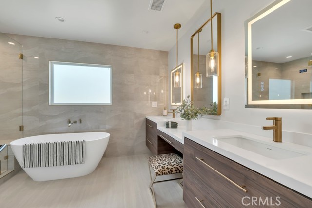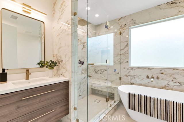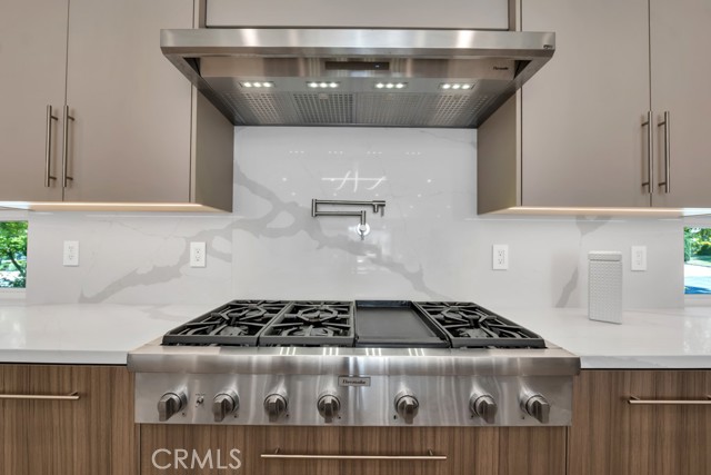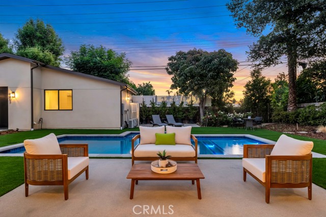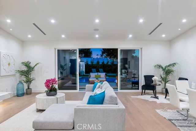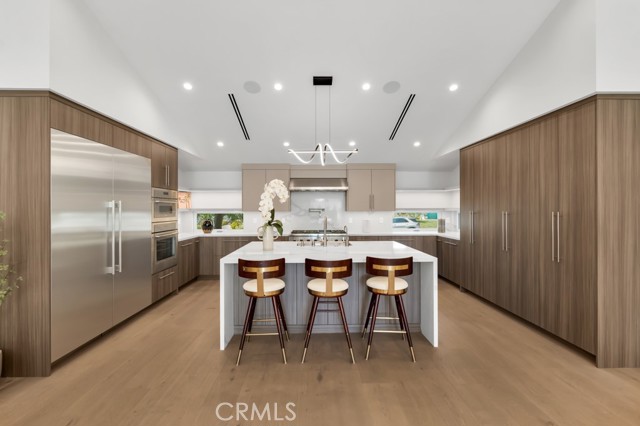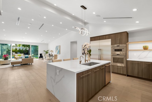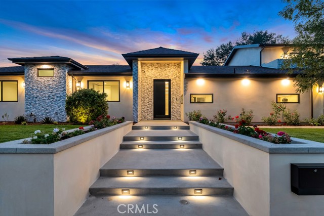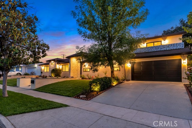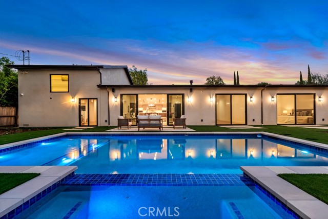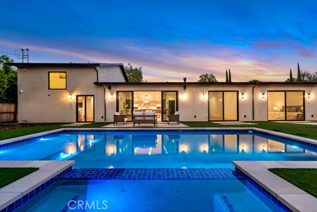 Welcome to this stunningly reimagined contemporary residence that blends high-end finishes with effortless functionality, nestled in a serene neighborhood surrounded by mature trees and lush landscaping. This primarily single-story masterpiece delivers luxury living across every square foot, thoughtfully crafted with exceptional attention to detail. This fully remodeled home features over 4,200 total square feet of generous living space, with 5 bedrooms and 7 bathrooms, which includes a 2 story guest quarters and an additional 1 bed 1 bath detached ADU. The heart of the home boasts a striking open-concept gourmet kitchen featuring custom flat-panel cabinetry, professional-grade Thermador stainless steel appliances, dual built-in ovens, and a 60-inch refrigerator/freezer. The oversized waterfall island with quartz countertops, sleek pendant lighting, and high-end stainless-steel sink becomes the centerpiece for entertainment and family gatherings. A seamless flow from the kitchen into the spacious great room and dining area, all bathed in natural light from the oversized sliding glass doors. High ceilings with recessed LED lighting enhance the airy ambiance, while wide-plank white oak hardwood flooring adds warmth and elegance throughout. Minimalist fixtures, matte finishes, with an addition of smart-home living, and custom wood cabinetry throughout blend modern sophistication with subtle luxury. A built-in media wall with surround sound speaker systems anchors the living area, offering both functionality and aesthetic appeal. Step outside to your private resort-style backyard, where lush artificial turf and clean-lined concrete pavers create a polished, low-maintenance landscape. The sparkling pool and integrated spa offer a perfect place to unwind or entertain, complemented by a custom patio lounge area ideal for al fresco dining and summer evenings under the stars. Large sliding doors connect the indoor and outdoor spaces, creating a true California indoor-outdoor living experience. Now out to the front of the home we have a modern faade that is framed by elegant stonework, clean lines, and a dramatic entryway with LED step lighting leading to a bold front door. Elevated privacy walls and fresh landscaping give this home an impressive street presence and a secluded feeling.Interested in this Listing?