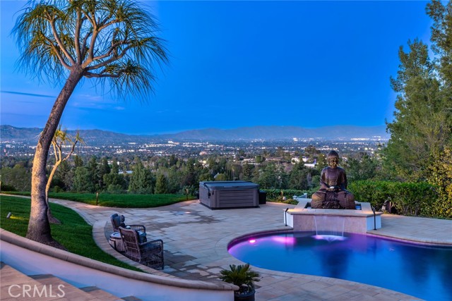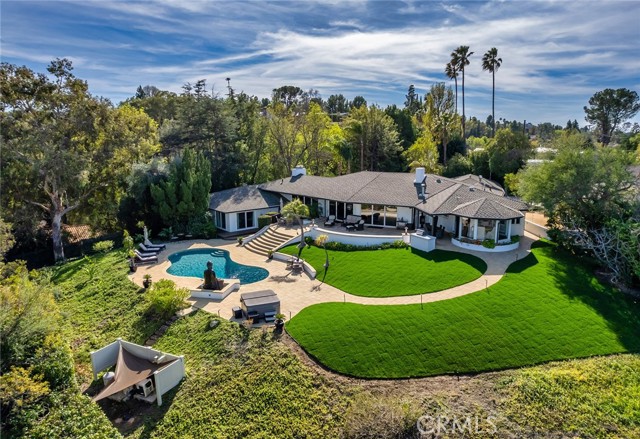 A Rare Opportunity Secluded Luxury with Breathtaking Views! Hidden behind private gates, this exclusive 5-bedroom, 5.5-bathroom estate offers unparalleled privacy, security, and serenity on a secluded 2/3-acre lot. *Furniture can also be included in the sale* From the moment you arrive, a long, custom paver driveway leads to an expansive motor court and two separate 2-car garages, providing ample space for vehicles, storage, or a flexible-use studio. Spanning over 4,300 sq. ft., this home blends elegance, charm, and modern sophistication. The open-concept design showcases soaring faux wood-beamed ceilings, archways, and grand fireplaces in both the living and family rooms each framing breathtaking city views. The formal dining room is perfect for hosting, while the chef s kitchen boasts granite countertops, custom cabinetry, and a cozy breakfast nook with panoramic views of the backyard, pool, and skyline. A dedicated wine room enhances this entertainer s dream space. The primary suite is a private retreat, featuring direct access to the pool and spa, awe-inspiring views, and a spa-like en-suite bath. Each additional bedroom captures a unique perspective of the stunning surroundings, bathing the home in natural light and captivating scenery. One guest suite even includes a private front patio, making it a versatile option for an in-law suite, housekeeper s quarters, or rental income opportunity. Step outside into a Zen-inspired oasis. A sprawling patio with a built-in BBQ, Trex decking, and an outdoor fireplace creates a tranquil, top-of-the-world ambiance. The resort-style pool and spa complete this peaceful escape, making it the ultimate retreat from the everyday hustle. Meticulously maintained and updated with modern electrical systems, a tankless water heater, dual-zoned heating and air, and security system with cameras, this home offers both luxury and peace of mind. An entertainer s paradise. A rare opportunity. A forever home. Experience this one-of-a-kind property for yourself schedule your private tour today! ALSO AVAILABLE FOR LEASE.Interested in this Listing?
