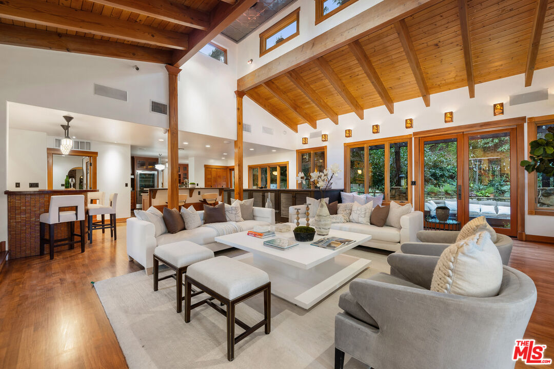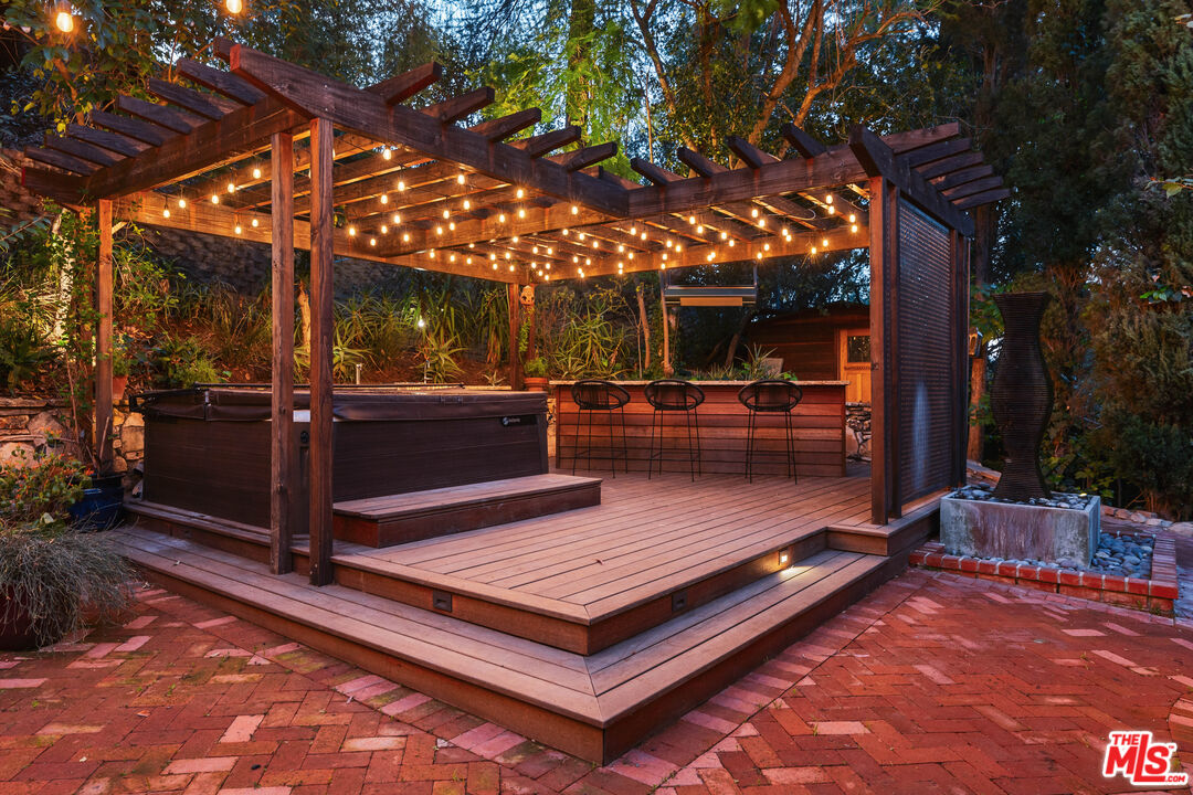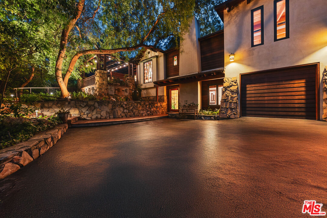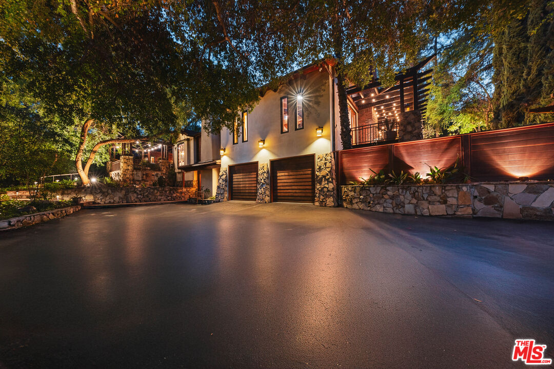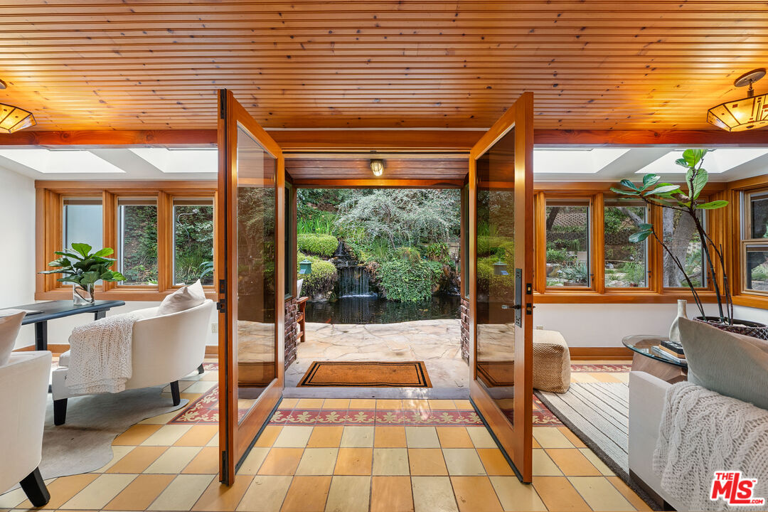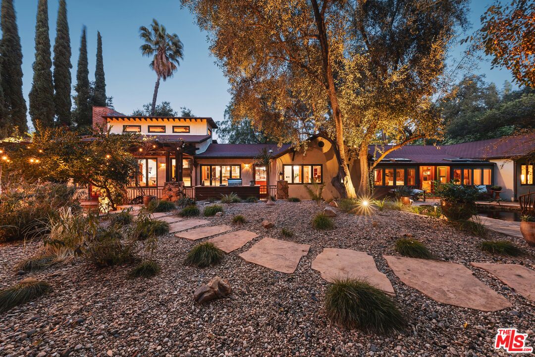 Welcome to your private retreat in the heart of Woodland Hills. Tucked discreetly behind gates on one of the neighborhood's most picturesque, tree-lined streets, 5045 Oakdale Avenue is a hidden jewel. A modern Craftsman estate where timeless design meets contemporary luxury. This exceptional four-bedroom, four-and-a-half-bath residence offers a rare blend of privacy, sophistication, and sweeping natural beauty in one of Woodland Hills' most coveted enclaves, nestled far south of the boulevard. From the moment you arrive, you'll feel the enchantment of this property with paths that lead you past tranquil fountains and lush foliage to a grand entrance framed by vintage stained glass and rich wood accents. Inside, the home exudes warmth and elegance, with soaring ceilings, abundant natural light, and a cozy fireplace anchoring the expansive great room. The open-concept layout flows effortlessly into a chef's dream kitchen, appointed with top-tier stainless Miele and Subzero appliances, a temperature-controlled wine cellar, plus a state-of-the-art humidor. An entertainer's paradise whether hosting a quiet dinner or a lively soirre. Step outside into an awe-inspiring botanical garden curated by a renowned arborist. Here, rare and exotic plantings flourish around serene waterfalls and a koi pond, creating a true Zen retreat. The outdoor amenities are equally impressive: unwind in the spa tub, pour a drink at the fully equipped wet bar with fridge and kegerator, or simply relax beneath the pergola with a fine vintage as the sun sets. Perched at the top of the property, surrounded by verdant landscaping, you'll find a fully outfitted private gym with its own bathroom and shower. This versatile space holds endless potential, whether as a wellness retreat, home office, guest house, or ADU. (Please note: this structure is not included in the home's square footage.) Enhanced by advanced security features, including a sophisticated camera system, the home offers both comfort and peace of mind. Once owned by a prominent Hollywood agent, this estate embodies the essence of celebrity-style living - private, luxurious, and undeniably captivating. Homes of this caliber are a rare find. Whether you seek a serene hideaway, an entertainer's haven, or a harmonious blend of nature and design, 5045 Oakdale Avenue is your once-in-a-lifetime opportunity. Schedule your private tour today and experience the magic for yourself.