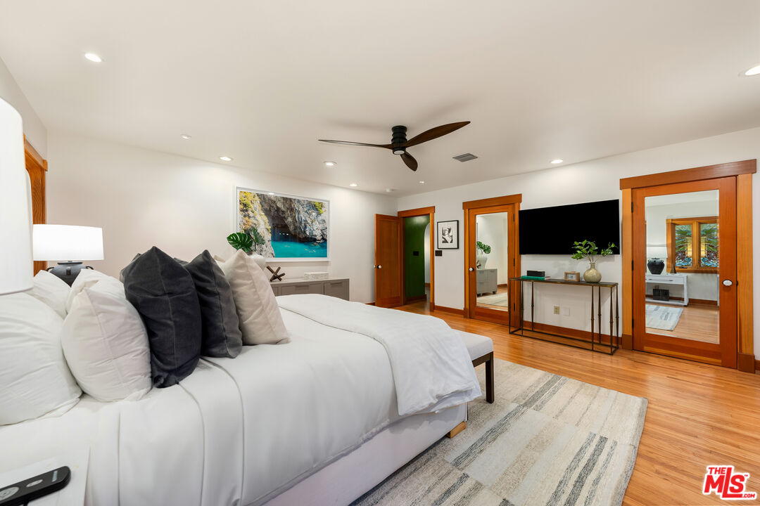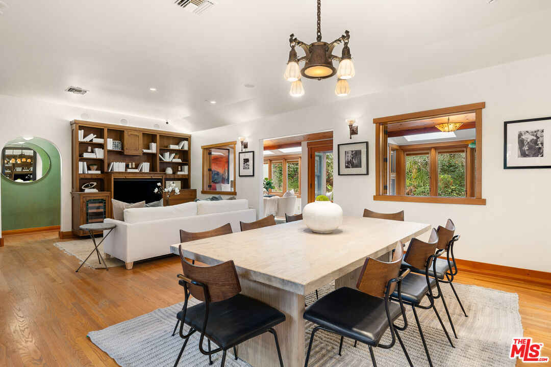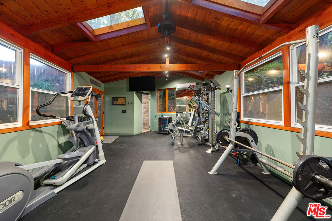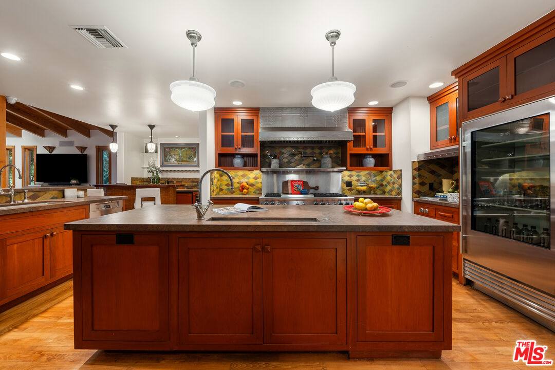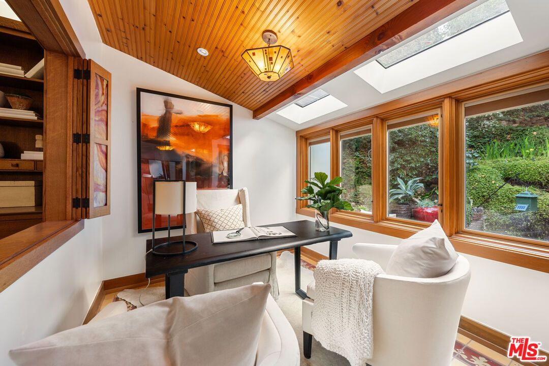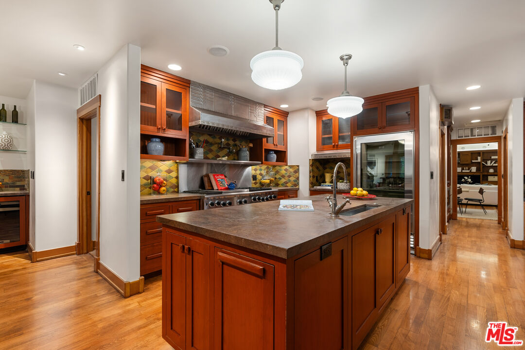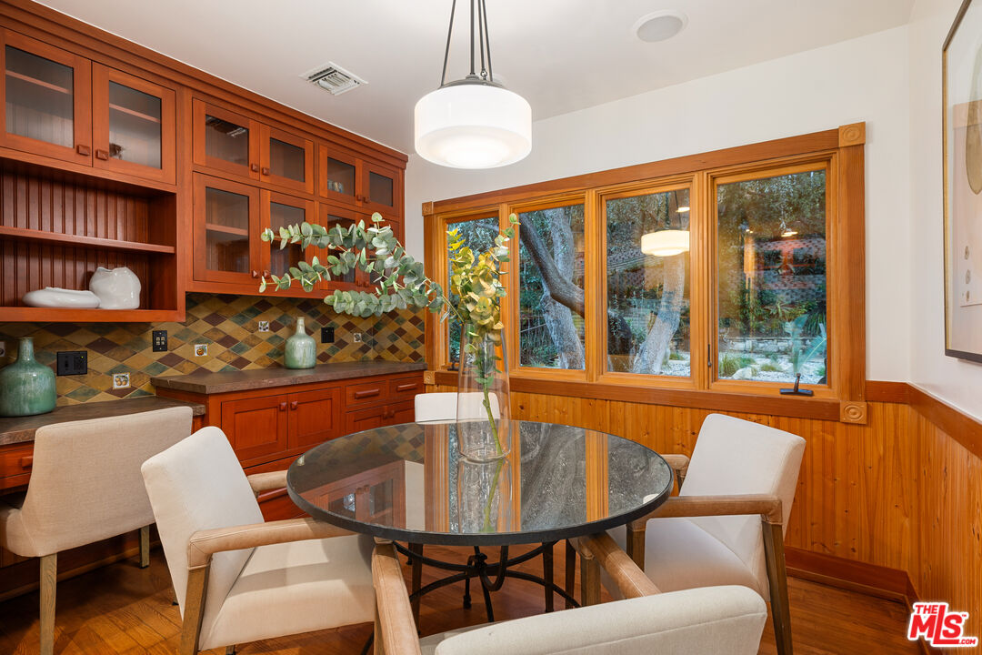 Welcome to your private retreat in the heart of Woodland Hills. Tucked discreetly behind gates on one of the neighborhood's most picturesque, tree-lined streets, 5045 Oakdale Avenue is a hidden jewel. A modern Craftsman estate where timeless design meets contemporary luxury. This exceptional four-bedroom, four-and-a-half-bath residence offers a rare blend of privacy, sophistication, and sweeping natural beauty in one of Woodland Hills' most coveted enclaves, nestled far south of the boulevard. From the moment you arrive, you'll feel the enchantment of this property with paths that lead you past tranquil fountains and lush foliage to a grand entrance framed by vintage stained glass and rich wood accents. Inside, the home exudes warmth and elegance, with soaring ceilings, abundant natural light, and a cozy fireplace anchoring the expansive great room. The open-concept layout flows effortlessly into a chef's dream kitchen, appointed with top-tier stainless Miele and Subzero appliances, a temperature-controlled wine cellar, plus a state-of-the-art humidor. An entertainer's paradise whether hosting a quiet dinner or a lively soirre. Step outside into an awe-inspiring botanical garden curated by a renowned arborist. Here, rare and exotic plantings flourish around serene waterfalls and a koi pond, creating a true Zen retreat. The outdoor amenities are equally impressive: unwind in the spa tub, pour a drink at the fully equipped wet bar with fridge and kegerator, or simply relax beneath the pergola with a fine vintage as the sun sets. Perched at the top of the property, surrounded by verdant landscaping, you'll find a fully outfitted private gym with its own bathroom and shower. This versatile space holds endless potential, whether as a wellness retreat, home office, guest house, or ADU. (Please note: this structure is not included in the home's square footage.) Enhanced by advanced security features, including a sophisticated camera system, the home offers both comfort and peace of mind. Once owned by a prominent Hollywood agent, this estate embodies the essence of celebrity-style living - private, luxurious, and undeniably captivating. Homes of this caliber are a rare find. Whether you seek a serene hideaway, an entertainer's haven, or a harmonious blend of nature and design, 5045 Oakdale Avenue is your once-in-a-lifetime opportunity. Schedule your private tour today and experience the magic for yourself.