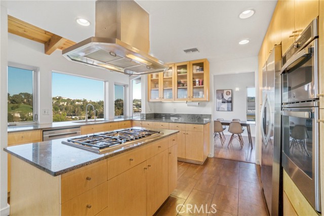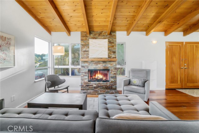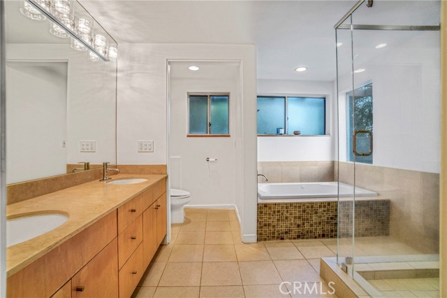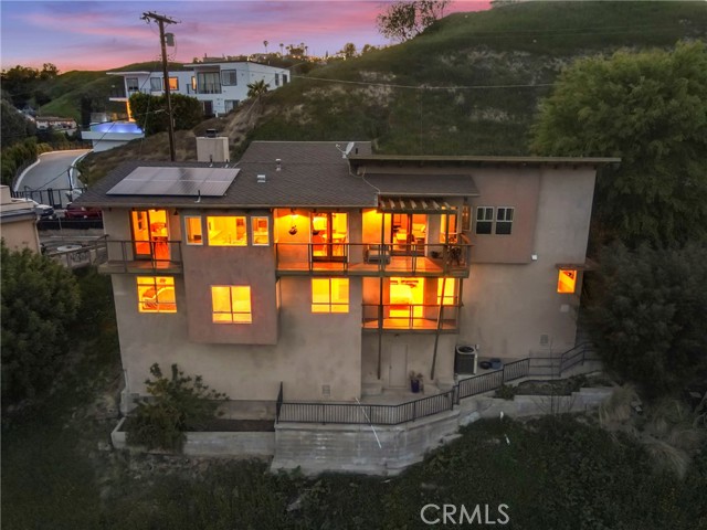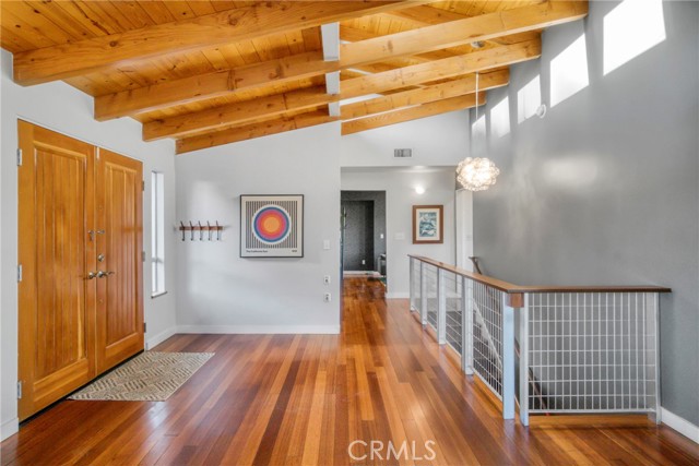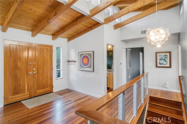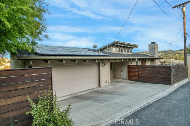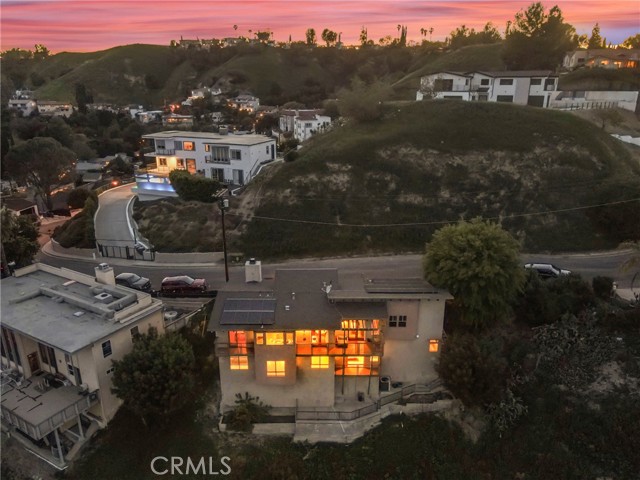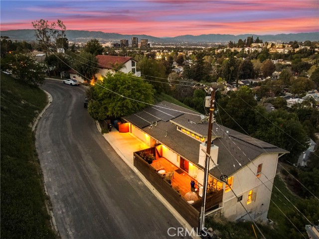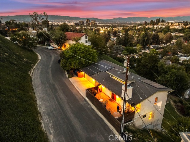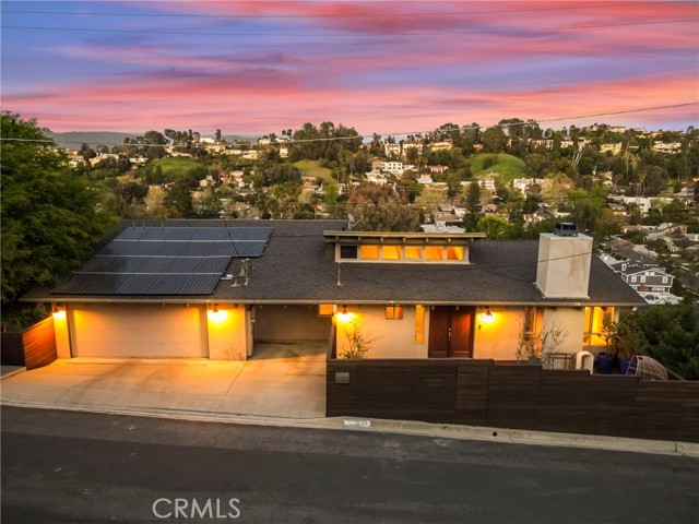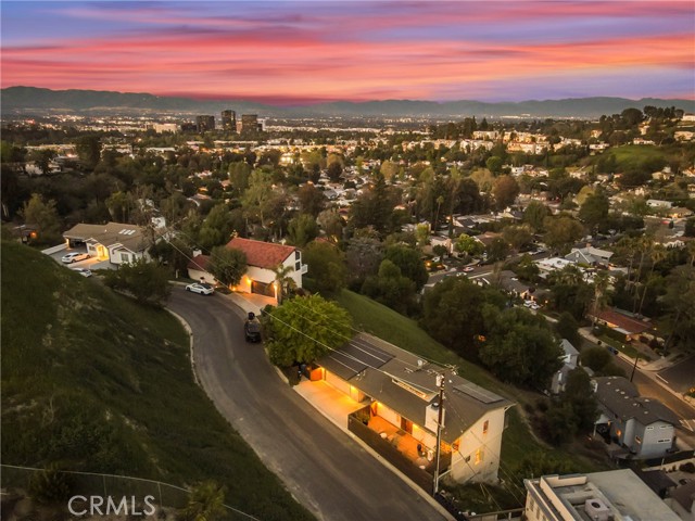 Nestled in the highly sought-after South of the Boulevard neighborhood of Woodland Hills, this stunning, newer construction home (built in 2002) offers both luxury and tranquility, with panoramic views from Topanga to the Warner Center. Boasting 4 bedrooms and 3.5 bathrooms, this architect-designed retreat is an oasis of modern elegance and comfort. Upon arrival, you're greeted by an inviting private front patio, perfect for relaxing or entertaining. Inside, rich wood floors and vaulted ceilings with exposed wood beams create a sense of spaciousness and warmth. The home design flows seamlessly from the kitchen to the dining area and living room, making it ideal for gatherings. The living room features a cozy fireplace, while the kitchen is a chef's dream with stainless steel appliances, a large island, a range hood, and ample counter space. French doors in the living area open up to a deck, offering breathtaking views perfect for sunsets or enjoying the fresh air. A guest bathroom and designated eating area complete the main level, providing convenience and functionality. The lower level is where the private master suite awaits, featuring two walk-in closets and a luxurious master bathroom with dual sinks, a jet tub with a view, and a separate shower. Three additional bedrooms on the lower level are thoughtfully designed, with one featuring an en-suite bath. The home's layout offers privacy and comfort for every family member. This property also offers great practical features, including a dedicated washer and dryer room with a new washer, a new dishwasher, an extra closet for additional storage, and solar panels that generate enough energy for both the home and an electric vehicle along with the heating of the water with the new electric water heater, providing significant cost savings. Additionally, the foundation level includes a large enclosed storage space and a patio area. With its contemporary design, expansive views, and ideal location near highly rated schools, this home is truly a must-see gem. Don t miss the opportunity to make this luxurious retreat your own!Interested in this Listing?