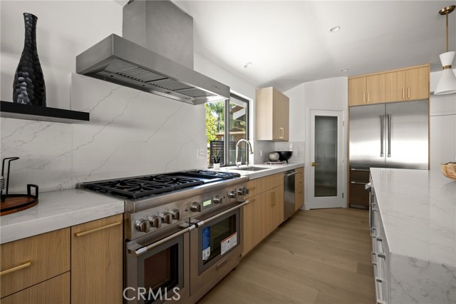 Welcome to this exceptional single-story home, thoughtfully reimagined and completely rebuilt from the studs up. Located west of Valley Circle in Woodland Hills and within the highly sought-after El Camino Charter School District, this nearly 2,500 sq ft residence sits on a flat lot of over a quarter acre, offering the ideal blend of privacy, luxury, and modern living. Featuring 4 spacious bedrooms and 3 beautifully appointed bathrooms, the home has been meticulously designed for seamless indoor-outdoor living. At the heart of the home is a chef s dream kitchen, equipped with top-of-the-line Thermador appliances, including a built-in refrigerator, a stunning 10+ foot island with abundant seating, plus an additional peninsula island with even more seating options perfect for both everyday living and entertaining.The adjacent family room opens to the private backyard through expansive multi-slide doors, creating a true indoor-outdoor flow. Outside, enjoy a built-in outdoor kitchen complete with BBQ and sink, ideal for al fresco dining and gatherings.The luxurious primary suite also features direct access to the backyard, an oversized walk-in closet, and a spa-like bathroom with dual vanities, a makeup station, and high-end finishes throughout. Designed for those with discerning taste, this home checks every box including a 3-car garage and a floor plan that embraces both function and style. A rare offering of craftsmanship and design in one of Woodland Hills most desirable neighborhoods.Interested in this Listing?