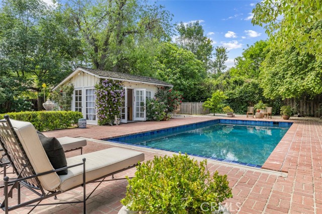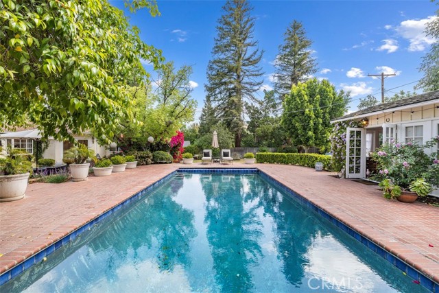 Welcome home to your sprawling SOB gated single-story estate. The classic charming white picket fence surrounds an expansive lush front yard. Inside the home features an open, airy layout with spacious living areas, large windows offering abundant natural light, and seamless indoor-outdoor flow. Perfect for large gatherings or creating those small memorable moments curled up by the fire. The light and bright kitchen with eat in space by it's fireplace, is situated perfectly to the elegant outdoor brick BBQ and dining area. The considerable dining room with its multitude of windows is conveniently located just off the family room with brick fireplace and overlooks the backyard. The primary suite, one of four in the main house, with high ceiling and remodeled bath is located in the back of the home offering a peaceful retreat at days end. This compound offers the quintessential So Cal Indoor Outdoor lifestyle. You ll enjoy these upcoming warm summer days and the cool nights relaxing or entertaining in the great outdoors by the pool. The sun filled ADU has French doors and vast windows that make it a welcoming living space. Plenty of room to roam and yet still enjoy the luxury of privacy throughout this 19k+sf all flat lot. The expansive lot includes lush landscaping, a large backyard, a swimming pool, and plenty of outdoor entertaining spaces. All this in a serene, prestigious neighborhood setting yet close to award winning schools, fashionable shopping, fine dining, plus a multitude of recreational activities, all just moment away. Don t miss this opportunity that captures the essence of prominent suburban living.Interested in this Listing?