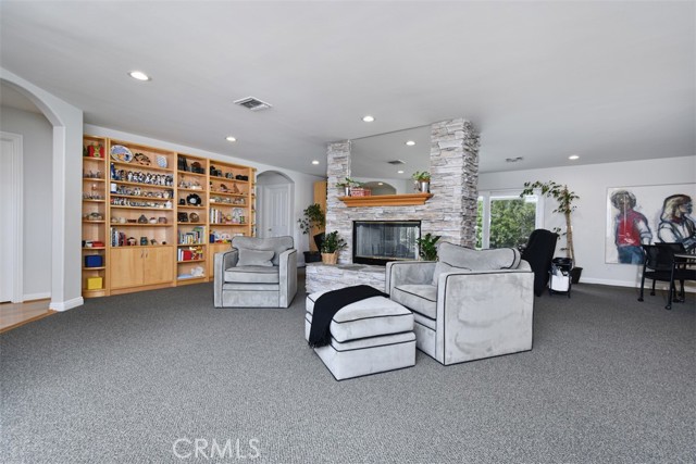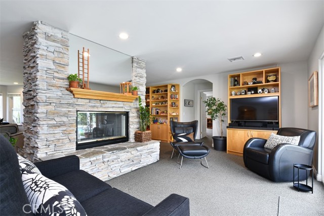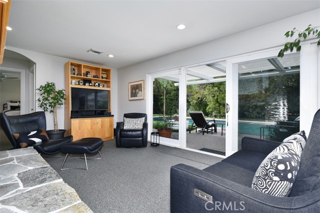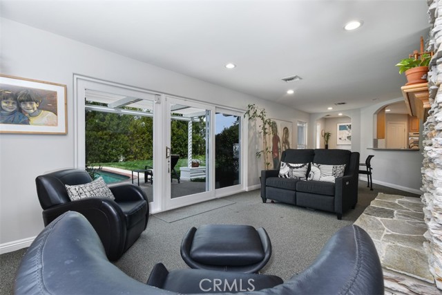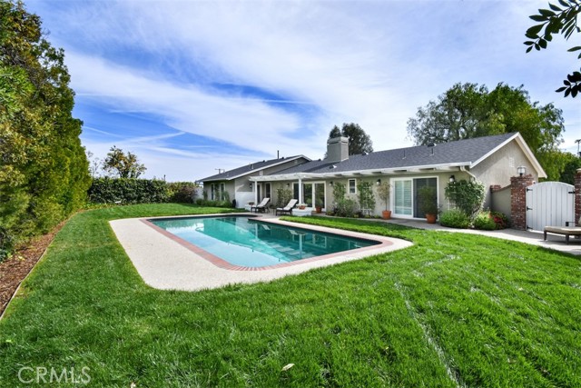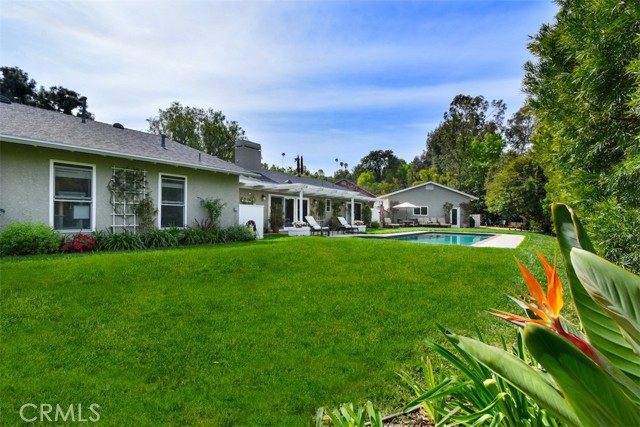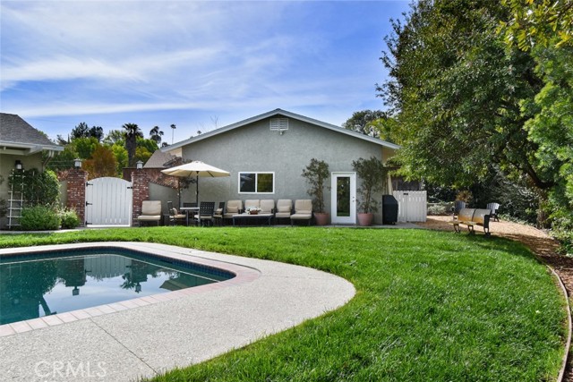 Welcome to this expansive, modern retreat, in the quiet neighborhood of Woodland Hills. On a generous usable .42-acre lot, this stunning post-modern ranch-style home boasts an impressive 3,000+ square feet of living space, making it ideal for families and entertainers alike. As you enter the driveway to the large three car garage, you will be captivated by the tall, majestic trees and the home's crisp architectural lines. Stepping through the front door, you are welcomed into the foyer with its calm atmosphere. The flow is accentuated by hardwood floors & versatile carpeting throughout. The great room with its two-way stone fireplace is a focal point of beauty and comfort. Floor-to-ceiling sliding glass doors lining the west wall flood the room with natural light while they frame the breathtaking views of the lush greenery. The kitchen combines fine design and functionality, including a large granite center island with cook top, top-of-the-line appliances and two pantries for exceptional storage. The upper and lower cabinets with granite counter tops and full granite backsplash complete the kitchen. This home's floor plan is well composed, featuring the large primary suite with ensuite bathroom and a sitting area, three additional bedrooms (including one ensuite), a dining room, and a windowed office. The private spa-like primary suite, located on the south end of the home, includes a walk-in closet, and a recently remodeled ensuite bathroom. This bedroom s floor-to-ceiling sliding glass doors with plantation shutters provides sunshine and serene views of the gorgeous grounds and the swimmers pool. The professionally landscaped backyard is a place of privacy and serenity. At one end is a quiet, tree-shaded sitting area, and a separate patio, offering views of the grassy lawn, the heated pebble-tech pool, and another expansive lawn. Mature trees surround the backyard creating a picturesque setting for rest and relaxation or for social gatherings. This remarkable Woodland Hills home, with its four bedrooms and bathrooms, indoor fireplace, and luxurious pool, offers an unmatched lifestyle. The charm of Woodland Hills, with its excellent schools and proximity to high-end shopping and restaurants, adds to the allure of this exceptional property. Welcome to your new home, where modern luxury meets comfort and style. Close proximity to shopping, services, transportation and fabulous shopping malls.Interested in this Listing?