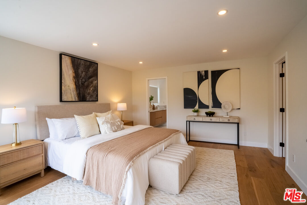 Nestled in the prestigious Walnut Acres neighborhood, this home is a turn-key gem that perfectly balances luxury, comfort, and thoughtful design. Behind a newly installed front gate, you'll enjoy complete privacy and a long, tree-lined driveway leading to an oversized, brand-new garage with high ceilings, epoxy flooring, and a sleek modern door. Inside you'll find an inviting, light-filled interior with newly installed hardwood floors, fresh interior and exterior paint, recessed lighting, and stunning brand-new kitchen cabinets paired with smart appliances and gorgeous countertops. The open-concept living area flows to a lush, private backyard and covered patio that's perfect for hosting or unwinding under the stars. The top-level primary suite offers a true retreat, featuring a spa inspired en-suite bathroom and a massive walk-in closet. Every room has been thoughtfully updated with contemporary fixtures and high-end finishes. Beyond aesthetics, the home has been completely reimagined with a long list of upgrades: two brand-new electrical panels, updated roof, EV charger, new landscaping, and so much more. No detail has been overlooked. Located within the highly acclaimed El Camino Real Charter High School district, this home sits in a neighborhood known for its low inventory and high demand making this a rare Woodland Hills offering you won't want to miss.Interested in this Listing?