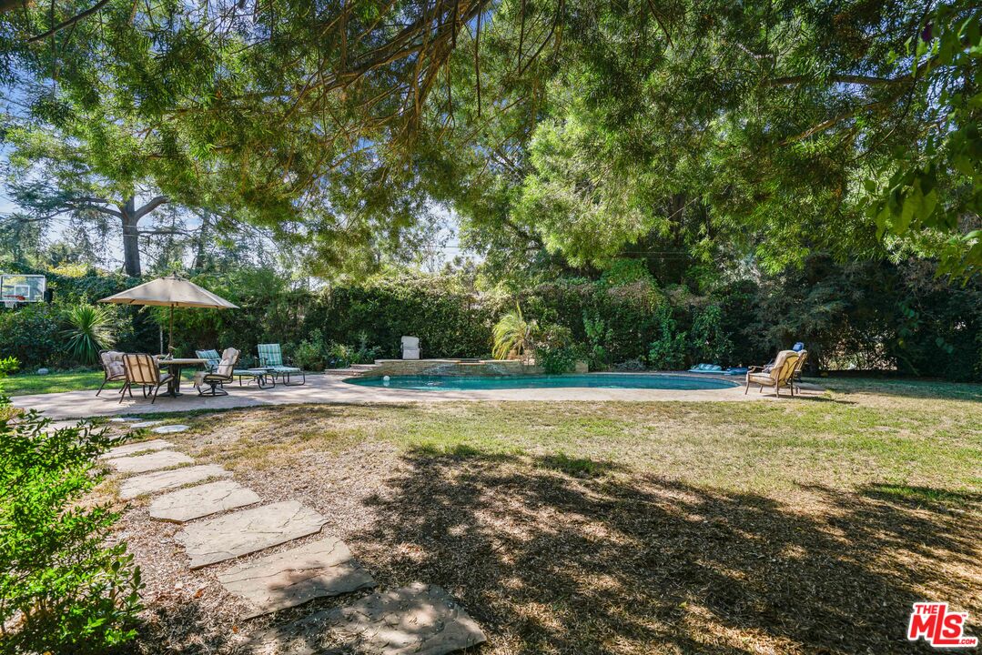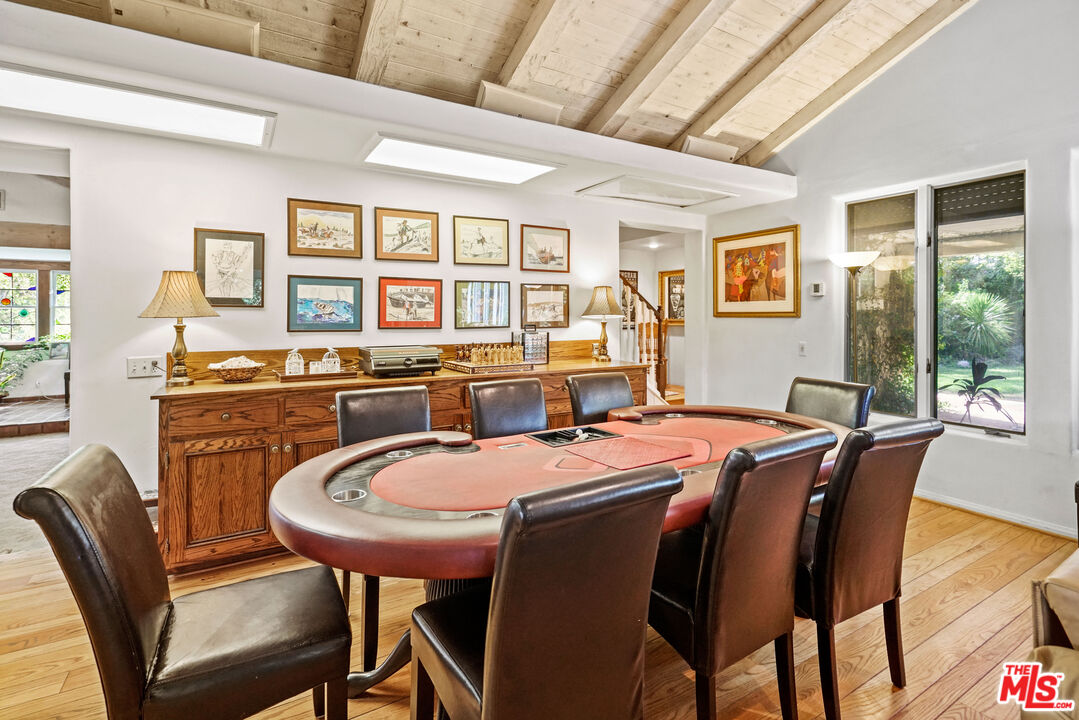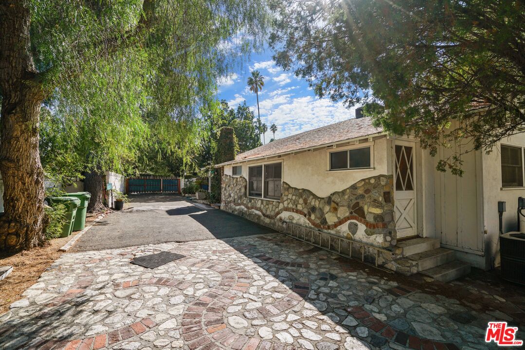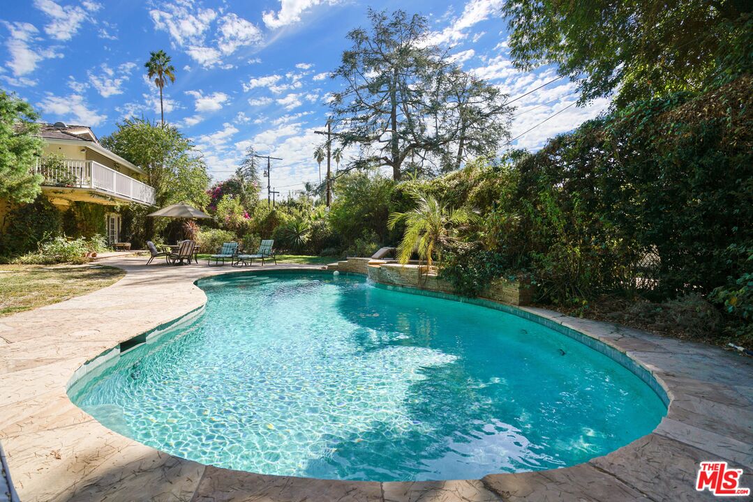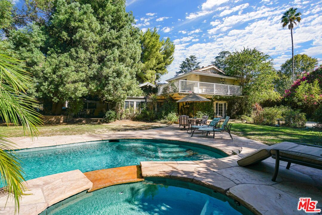 Private Gated Estate, large corner lot with pool, spa, and sports court. Great room with wood beamed ceiling and electric shades. The Primary suite is downstairs with 3 other large bedrooms. One Primary bedroom suite is upstairs with a separate entrance that could be used as a Guest unit. Custom stain glass windows, sunken custom bar in the front room. Gourmet Kitchen has a commercial 6 burner wolf range and griddle plate. The dining area has a large custom wood buffet sideboard. Hard Wood floors and Engineered floors throughout the home. Central Air and Heat. Plenty of room for aprox three ADU's. A must-see, this home has a lot of potential. Close to all the exciting growth/entertainment of Woodland Hills.Interested in this Listing?