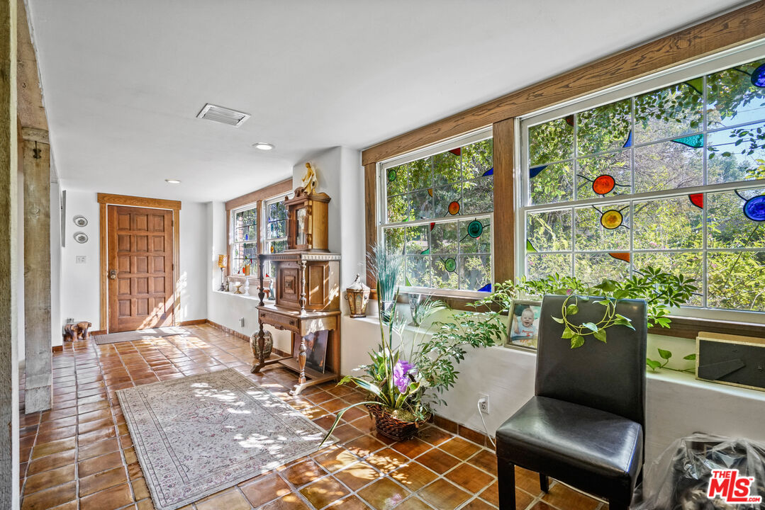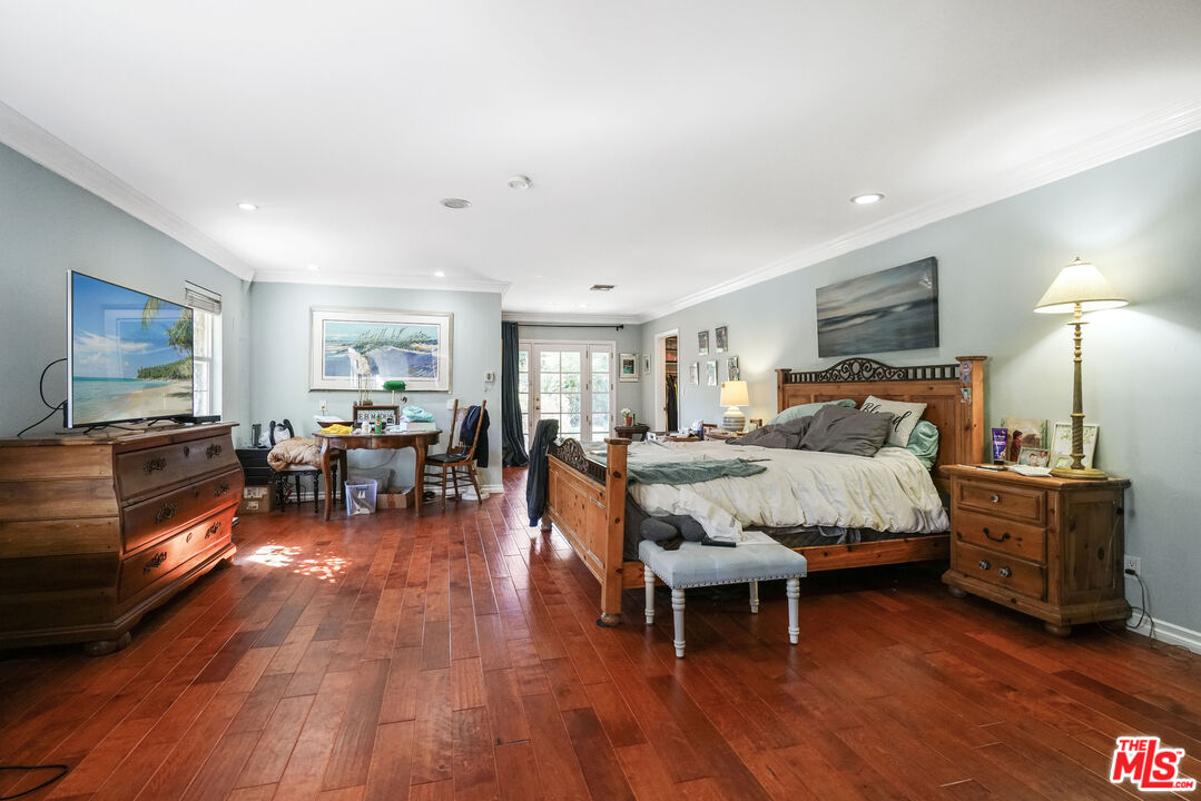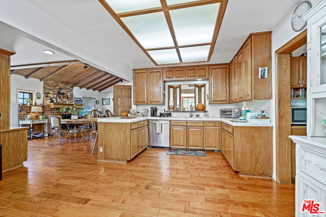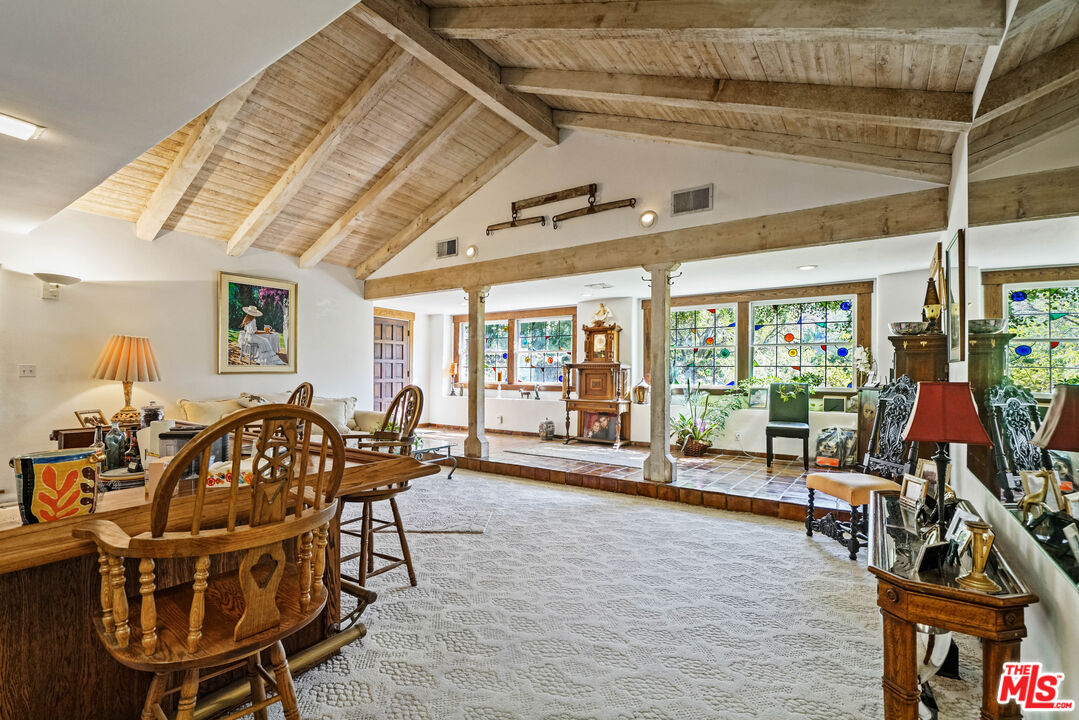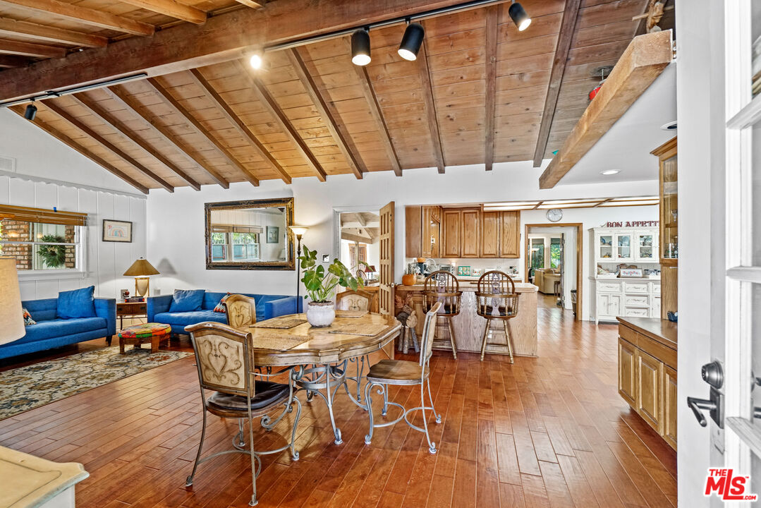 Private Gated Estate, large corner lot with pool, spa, and sports court. Great room with wood beamed ceiling and electric shades. The Primary suite is downstairs with 3 other large bedrooms. One Primary bedroom suite is upstairs with a separate entrance that could be used as a Guest unit. Custom stain glass windows, sunken custom bar in the front room. Gourmet Kitchen has a commercial 6 burner wolf range and griddle plate. The dining area has a large custom wood buffet sideboard. Hard Wood floors and Engineered floors throughout the home. Central Air and Heat. Plenty of room for aprox three ADU's. A must-see, this home has a lot of potential. Close to all the exciting growth/entertainment of Woodland Hills.Interested in this Listing?