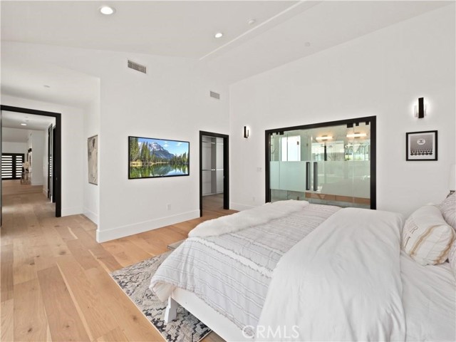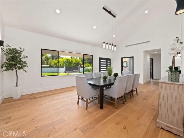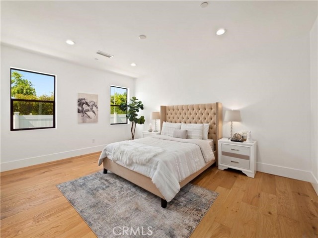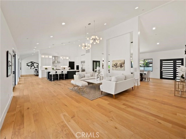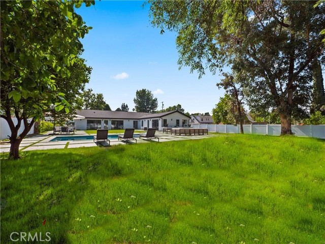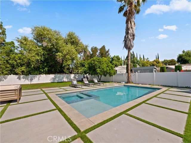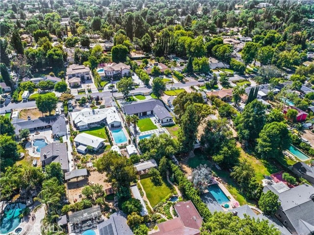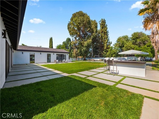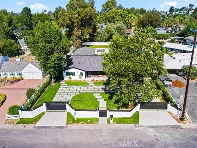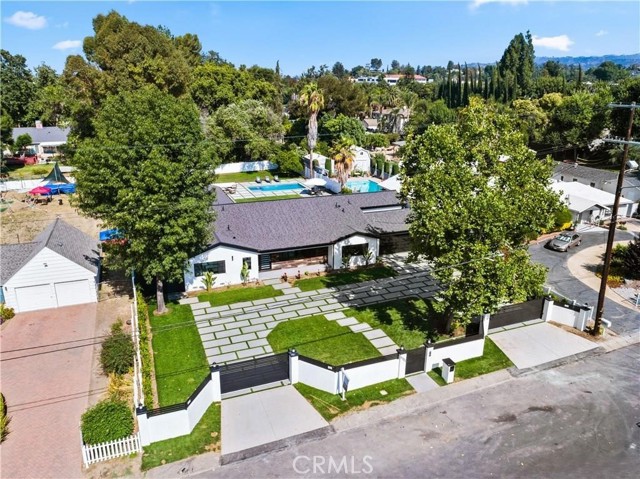 This beautifully crafted single-level home in the sought-after College Acres area of Woodland Hills offers over 4,300 sq ft of open-concept living space, designed with elegance and functionality in mind. Featuring soaring ceilings, abundant natural light, clean wood flooring, and curated designer finishes throughout, every detail exudes sophistication. The expansive living room opens seamlessly to a lush, flat half-acre yard via large sliding doors - perfect for indoor-outdoor living. The heart of the home is a chef s dream kitchen with a generous island, sleek quartz countertops and backsplash, custom cabinetry with soft-close drawers, and top-of-the-line KitchenAid appliances. This residence includes five spacious bedrooms and four and a half luxurious bathrooms, including a serene primary suite with a spa like attached bathroom. Additional highlights include a sparkling pool, outdoor BBQ and firepit, gated front yard and multiple entertaining spaces. Modern upgrades include two Nest thermostats, dual-zone HVAC, double-pane windows, recessed lighting throughout, custom garage doors, Ring and DoorBird security systems, and a circular driveway. Built with quality and care, the home is located on a peaceful, tree-lined street just minutes from Ventura Blvd, the 101 freeway, The Village, Westfield Topanga, and a wide array of local dining and shopping options. This home truly checks every box - schedule a showing and fall in love with this rare College Acres gem.Interested in this Listing?