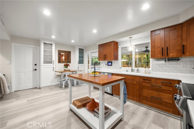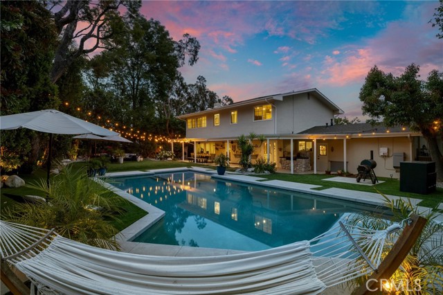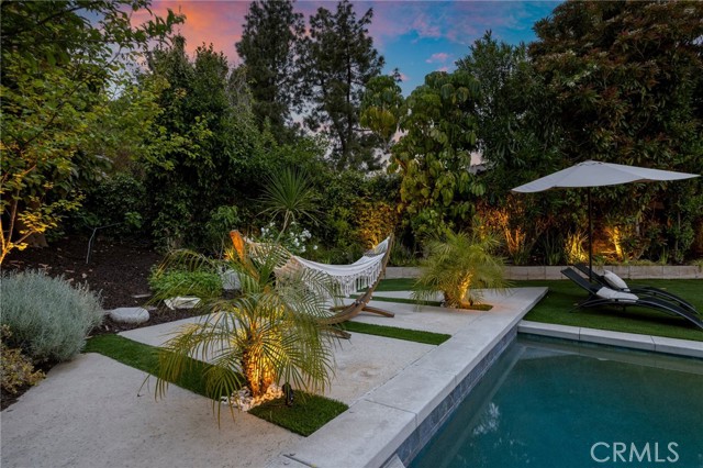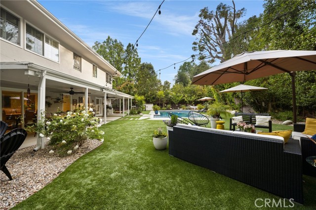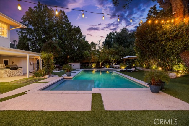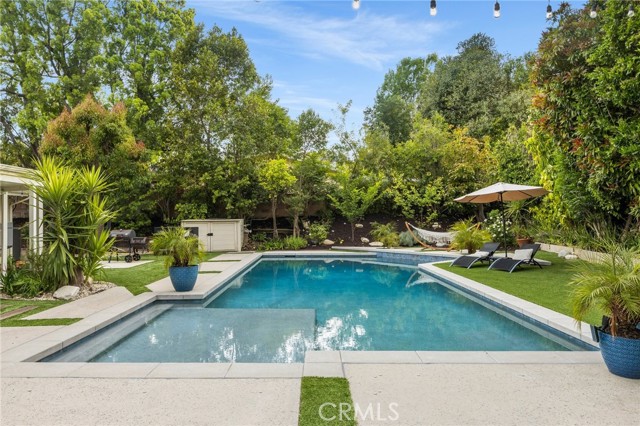 Remodeled Woodland Hills Pool Home with Amazing Backyard and Excellent Schools! Located within the highly rated and sought after El Camino Real, Hale and Lockhurst Charter Schools, this is California indoor / outdoor living at its best! Ideal for birthday parties and holiday gatherings with family and friends, this beautiful home begins with an entryway that opens into a large living room bathed in natural light and graced with an elegant fireplace. Continue into the formal dining bordered by a wall of sliding glass doors to the backyard oasis pool and gardens, a true entertainer s delight. The cook s kitchen offers abundant storage, updated cabinets, custom backsplash, waterfall counters, and an eating area perfect for family and guests to chat while meals are prepared. Don t miss the over-sized family room ready for movie night or card games. The very private entertainer s backyard beckons with a covered patio, multiple seating areas, graceful landscaping, sparkling pool (renovated and re-plastered in 2023), built in BBQ, outdoor gym area, turf with mature landscaping and fruit trees. In the evening, outdoor lighting adds magic to this breathtaking space. Recently remodeled bathrooms and oversized bedrooms complement the primary suite which offers a sitting area and fireplace your own retreat! Double closets and vintage tile in the primary bath complete the suite with sensible charm. Newer windows, waterproof laminate flooring, LED lighting with Smart Switch, Updated HVAC and ducting, Solar with battery backup, and Security System add practical benefits to this lovely and stylish home perfect for the entire family to move right in! Come and see this fantastic opportunity to live conveniently in the West San Fernando Valley!!Interested in this Listing?