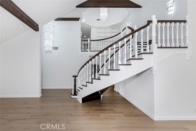 Located in the heart of Woodland Hills, this expansive 5-bedroom 5-bathroom home offers over 4000 square feet of pure bliss. Upon arrival, you are welcomed by extravagant double doors leading into a grand entryway featuring a stunning spiral staircase and a beautiful family room filled with natural light from large windows, a striking chandelier, and a cozy fireplace. The kitchen is a true masterpiece, showcasing a luxurious blend of black and white quartz countertops, brand new stainless steel appliances, a double oven, range hood, 6 burner stove top, and a walk-in pantry. An elegant bar nook adds the perfect touch for entertaining guests, seamlessly flowing into a living room complete with a kitchenette and an additional fireplace. Recessed and natural lighting accentuate the refined details throughout. A bathroom and laundry room on the main floor add everyday convenience, along with a bonus room ideally situated before the entrance to the spacious 3-car garage. Upstairs, the layout transforms into a private retreat with all 5 bedrooms located on the second floor. The primary suite offers a massive bathroom with double sinks, a separate soaking tub, and a large walk-in shower. The primary bedroom also features a huge walk-in closet complete with shelving, drawers, and cabinets, providing abundant storage and organization options. All additional bedrooms are exceptionally spacious, each offering generous closet space with built-in shelving and storage solutions. The backyard is an outdoor dream, featuring a sparkling pool, hot tub, and a private outdoor barbecue area with extra space for entertaining and relaxing. This incredible home blends timeless luxury, functionality, and an exceptional setting for both everyday living and grand gatherings.Interested in this Listing?