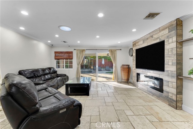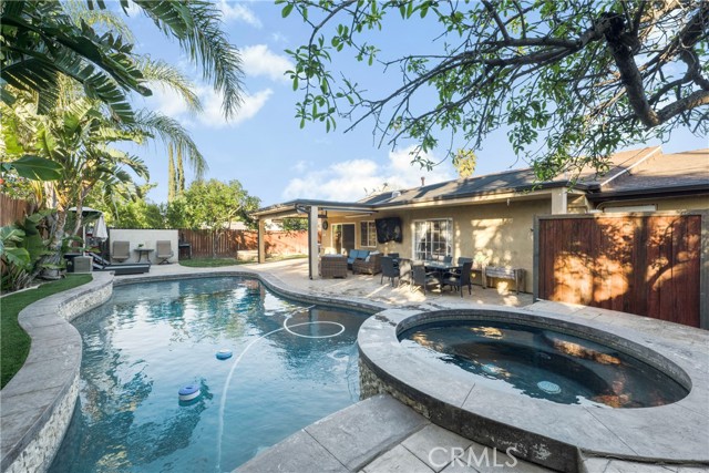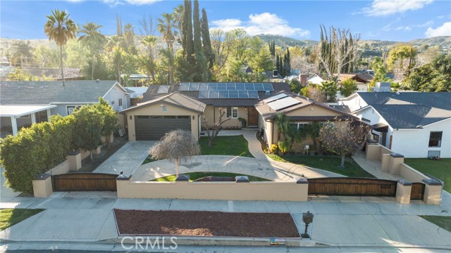 This wonderful Woodland Hills 4-bedroom 3-bathroom home was built in 1960 and updated throughout the years. The main remodel allowed for the entryway to feed into the central family room and Chef s kitchen. This kitchen features Caesar Stone countertops and custom wood cabinetry. Beautifully tiled floors throughout. A separated dining room from the kitchen area. Four bedrooms, remodeled bathrooms. The master bedroom features a soffit ceiling a large ensuite bathroom and a walk-in closet. Secondary private entry for the 4th bedroom. Drive thru gated driveway with a stamped concrete finish. It features solar panels that are owned, not leased. In the private backyard awaits a custom pool and raised spa that has numerous automated features including a removable safety gate. Attached to the home is a heated pergola with lighting, sound and video. Many fruit trees and shade trees in the front and backyards. Enclosed carport. Ample storage. This beautiful home is ready for its new family and is a must see! A quiet community with many great schools very close by, Lockhurst, Hale, El Camino and Pierce College. Near to the Calabasas Commons and the malls at Westfield Topanga. All the best beaches are just a short drive away.Interested in this Listing?