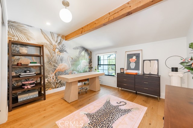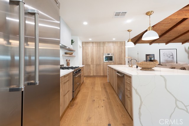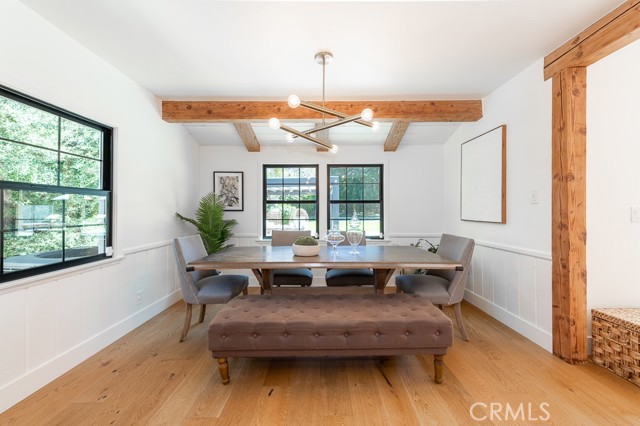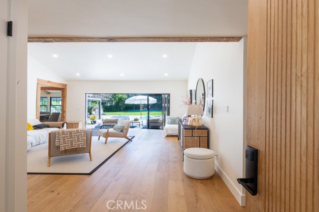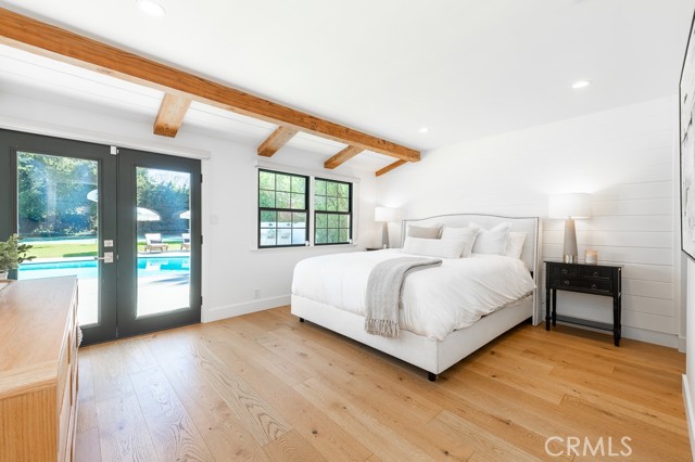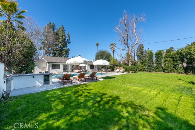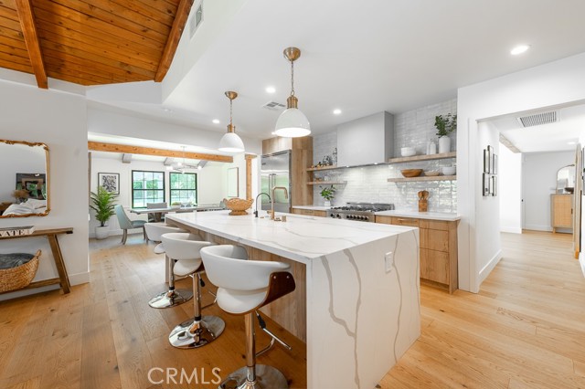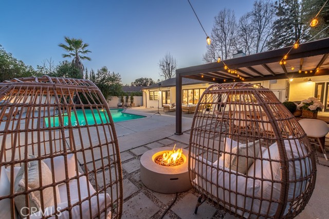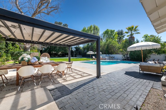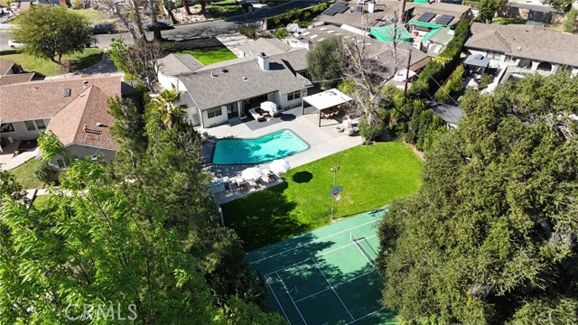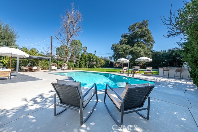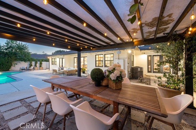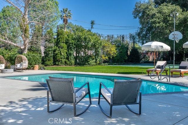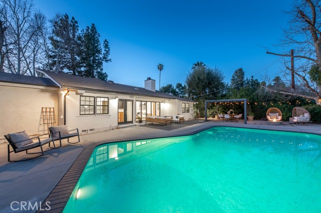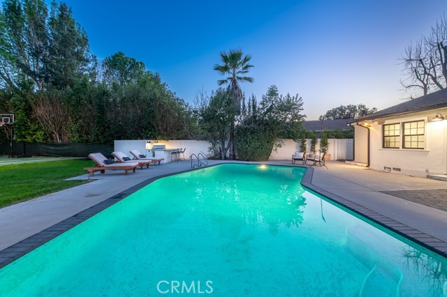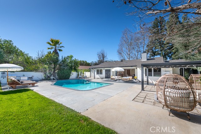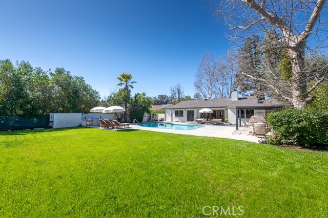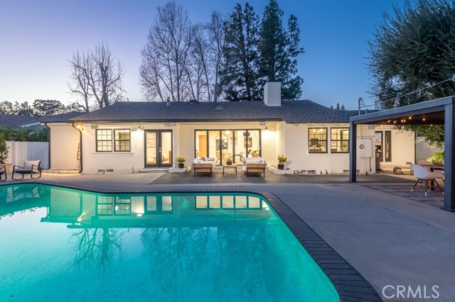 PRICE IMPROVEMENT! PICKLEBALL ANYBODY? Welcome to this stunning fully remodeled single-story modern ranch hme, located on one of 'Walnut Acres most desired streets! Sitting on an expansive 18,280 sqft lot, this home was fully renovated in 2022 and offers exceptional indoor-outdoor living with a pool, expansive lawn, a full-sized pickleball court, and atremendousopportunity to expand in the future.Inside, the formal living room features beautiful wood-beamed ceilings, Milgard windows, and a disappearing accordion glass door that seamlessly opens to the entertainer s backyard. The central kitchen is a chef s dream with an oversized island, Viking fridge, high end stainless steel appliances, quartz countertops, a butler s pantry, and a charming breakfast/dining area with wainscoting. A spacious family room showcases vaulted ceilings, a fireplace, and French doors leading outside. The home has 4 bedrooms, including a luxurious primary suite with pool access, a massive walk-in closet, and a modern en-suite bath. Two bedrooms share a hall bath, while the fourth has its own private en-suite.The resort-style backyard is designed for entertaining, featuring a swimming pool, built-in outdoor kitchen, pickleball/basketball court with lighting, a brick patio, pergola, and a secluded bistro garden. The fully finished 360 sqft garage (not included in the 2,550 sqft main home) has vaulted ceilings, recessed lighting, temperature control, and ADU potential. Additional highlights include driveway parking for 4+ cars/RV/boat, plus system upgrades like an updated electrical panel, AC, water heater, and pool equipment. Zoned for award-winning Woodlake Charter Elementary and El Camino Real Charter High School, with easy access to Warner Center, The Topanga Village, dining, and shopping this exceptional home is a rare find!Interested in this Listing?