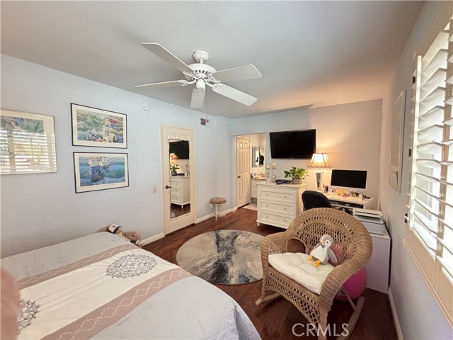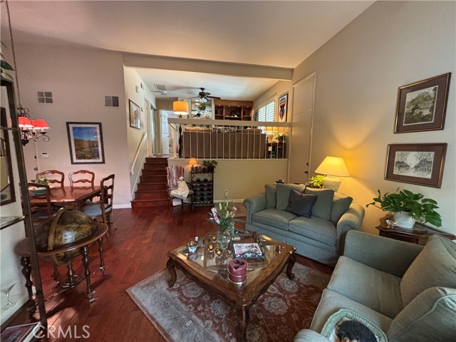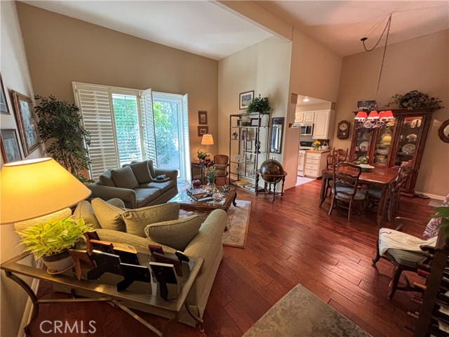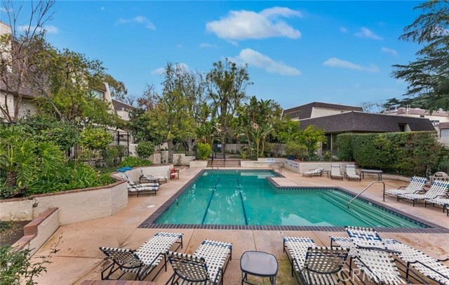 LOWEST PRICE IN THE LOVELY DOVE CREEK TOWNHOMES! As you enter the living room you will observe the open floorplan, very high ceilings, and recessed lighting. The sliding glass door opens to a private enclosed patio with a beautiful brick floor and a gas bar b que. The kitchen features recessed lighting, granite counters, upgraded appliances, and is very convenient to the formal dining area. A few steps up leads to an open den with a built in shelving and a wet bar. Many have converted this area into a second bedroom if needed and the second bath complete with granite counters and a newly tiled shower is just across the hall. The spacious primary suite features a private bath with granite counters, a newly tiled combo tub and shower, and a walk in closet. There are high quality engineered wood floors and recessed lighting throughout. Other features include a newer roof, a private security system, newer double pane windows, and a spacious direct access two car garage with built-in enclosed storage. The laundry is also located in the garage. The complex amenities include a heated pool, two hot tubs, and two tennis courts. Great location near all of the new Woodland Hills attractions including the Village restaurant and entertainment venue, a state of the art movie theater, the Topanga Shopping Mall, and a park that features free family entertainment in the summer.Interested in this Listing?