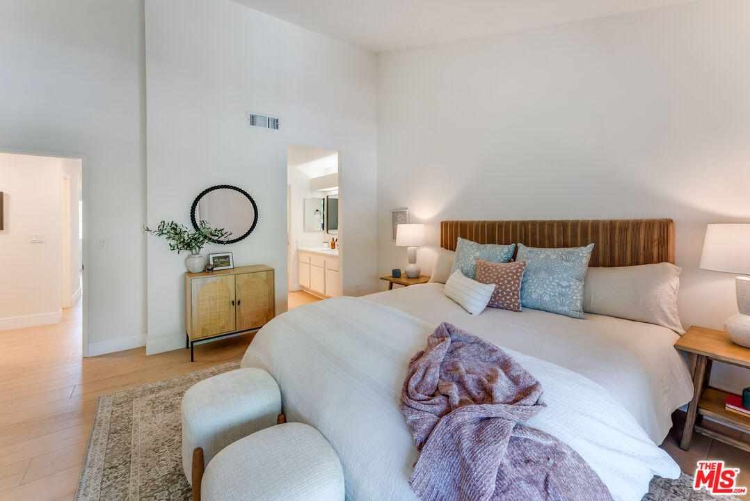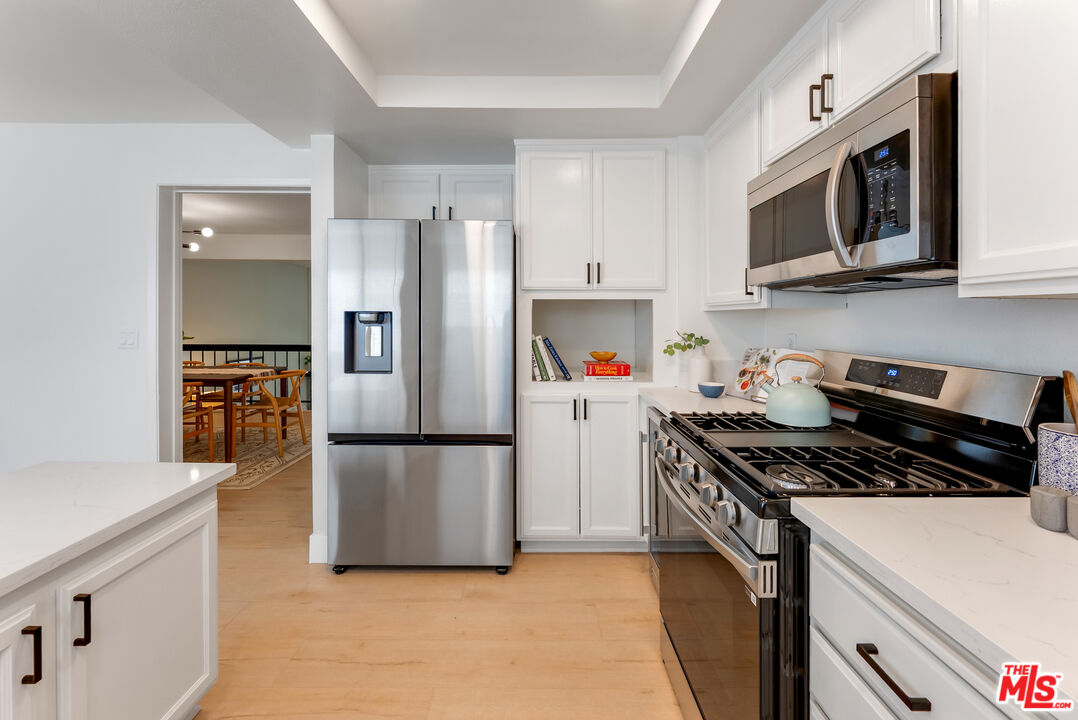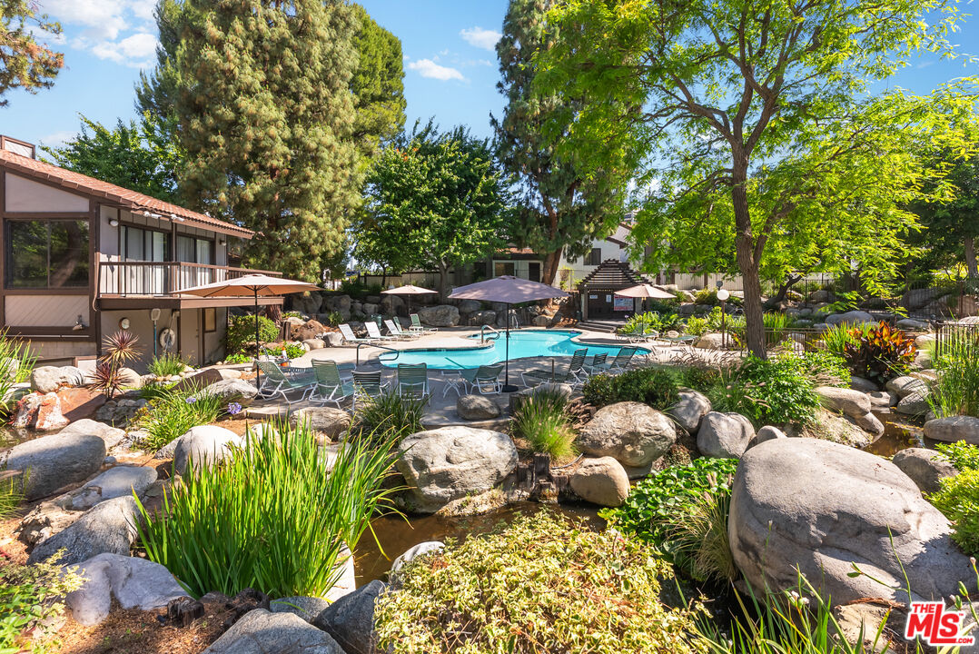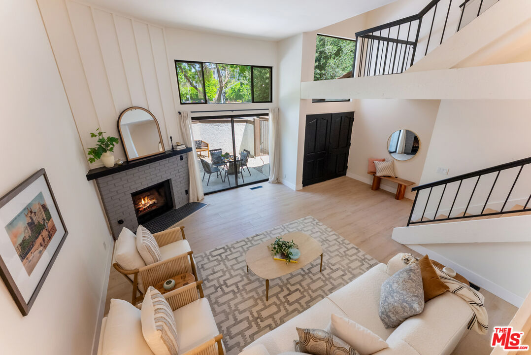 This fully renovated, modern Warner Woodlands townhome welcomes you with soaring cathedral ceilings, a striking fireplace, and access to your own private patio adorned with a sparkling fountain and plenty of room for outdoor seating and dining. The designer-grade wide-plank luxury flooring flows throughout the home, adding a warm, sophisticated foundation to every space. Just a few steps up from the living room is the large stylish dining room. Adjacent is the fully updated modern kitchen with new quartz countertops, recessed lighting, brand new stainless steel appliances, and a built-in beverage/wine fridge. Past the extended kitchen peninsula is a cozy den, perfect for relaxing or entertaining. Upstairs, the bright primary suite offers soaring ceilings, a private balcony, walk-in closet, and a fully renovated en-suite bath. Down the hall are two additional bedrooms and another beautifully updated full bathroom. A third guest bathroom is conveniently located near the main living area, and the attached two-car garage offers direct access into the home and includes a new side-by-side GE washer and dryer. Lush landscaping with a beautiful pool, spa, and well-lighted tennis court are among the property's resort-style amenities. HOA dues include earthquake insurance, water, basic cable and internet, trash removal, and common area maintenance. Close to public transportation, shopping and dining at Topanga Village and Westfield Topanga Mall, Woodland Hills Park, Pierce College, and several freeways. Don't miss the opportunity to buy into this neighborhood where the completion of the $10 billion, 52-acre Warner Center development just across the street will continue to make this one of the most sought-after neighborhoods in Los Angeles.Interested in this Listing?