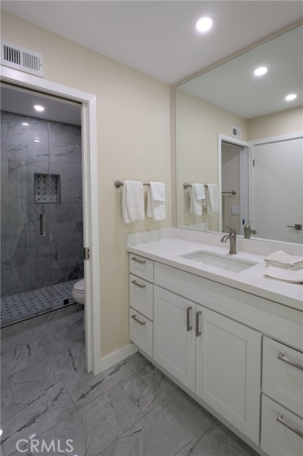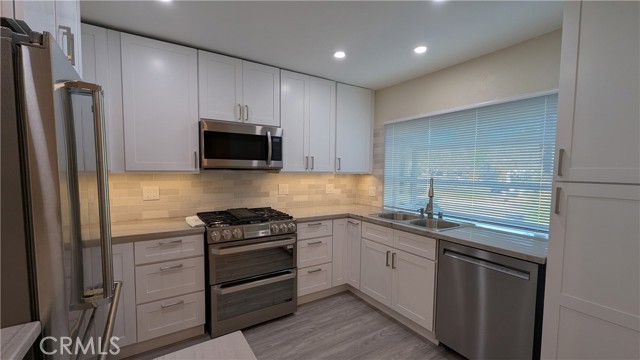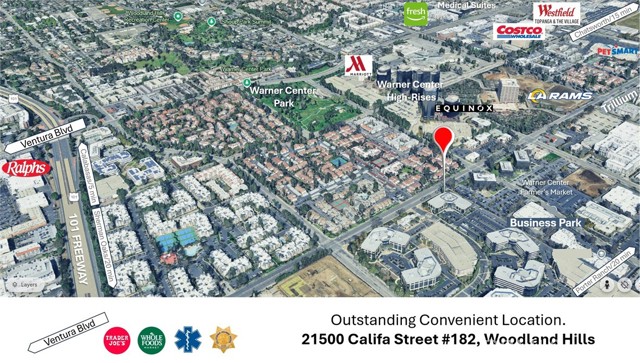 Completely Remodeled with every convenience, Luxury Living in Woodland Hills/Warner Center. Outstanding location in every way. Sprawling split-level interior feels like a house, unique end-unit location tucked into a corner of the complex is one-of-a-kind with no common walls on the living area! Completely new remodeled kitchen with granite peninsula counters and tile, new cabinets with roll-outs and under-lighting, new stainless appliances and huge greenhouse window. Soaring vaulted ceiling in the living room and main bedroom with new recessed lighting, dimmers, warm neutral-tone paint and wood-texture LVP flooring throughout. Private and secluded patio with mature fruit tree and plenty of room for outdoor dining table. Short hall that steps up to the bedrooms and baths or steps down to your private garage. Both bedrooms are comfortably large enough for a king size bed and more. Larger BR has a complete en-suite bathroom with separate vanity/changing area and huge walk-in closet. Both bathrooms are completely remodeled with large walk-in natural marble showers with body sprayers Wow! Step down off the hall to your large private 2-car garage with storage, as well as a private laundry area with new washer and dryer. This is NOT one of those overpriced apartment-style building-conversions, this is a true single-family townhouse with no one above or below you. Premier location: If you work in one of the Warner Center office suites, never pay for parking again! This home is one block from the office buildings, and business park. Only 1 block from Warner Center Park, bike and walking paths, a farmer s market. Less than 5 minutes to shopping, fine and casual dining, Westfield Topanga, the new LA Rams Training Facility, Ventura Blvd, Trader Joes, Whole Foods, Ralphs, Costco, Target, 101 on-ramp with easy access to Calabasas, Tarzana, Sherman Oaks, Encino. Complex includes green walking paths, use of a lush pool area and huge private tennis courts. This is a really special rental opportunity for someone that wants quiet luxury, the space of a house, the amenities of a managed complex, and a locaton that is just steps from every convenience.