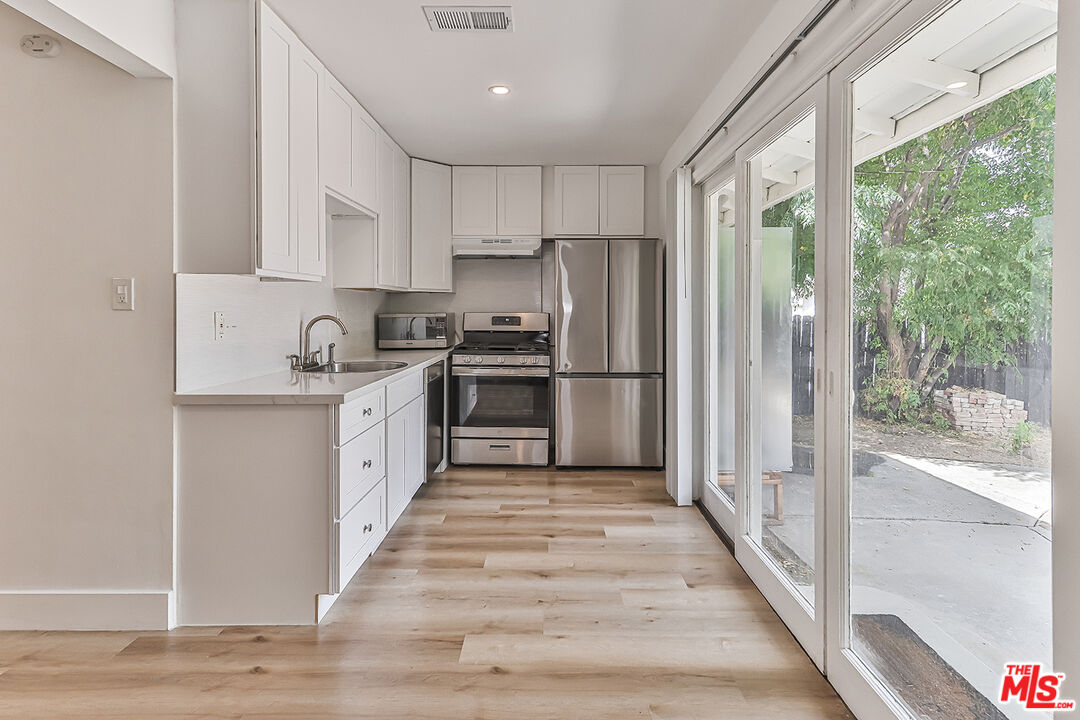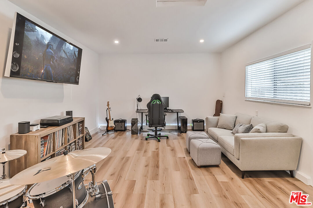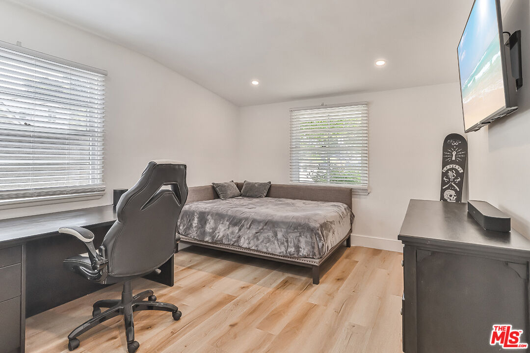 Beautifully remodeled 3-bedroom, 2-bathroom home nestled on a peaceful, tree-lined street south of Ventura Blvd in Woodland Hills. Featuring an open floor plan and a huge backyard, this home is perfect for modern living and entertaining guests. The interior boasts luxury vinyl flooring, newer paint, recessed lighting throughout, and newer kitchen cabinets with Quartz countertops. The living room, complete with a contemporary fireplace, seamlessly flows into the dining area, kitchen and extends to the expansive backyard, offering the perfect space for gatherings and relaxation.This home also offers a newer roof, central AC/heat, and appliances, including a washer and dryer. The garage has been thoughtfully converted into a stylish media room, adding extra living space for entertainment or relaxation. Conveniently located close to schools, parks, shopping and dining, Topanga Canyon Blvd and easy access to 101 fwy. Schedule your showing appointment asap, this one will go fast!Interested in this Listing?