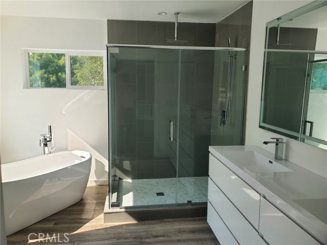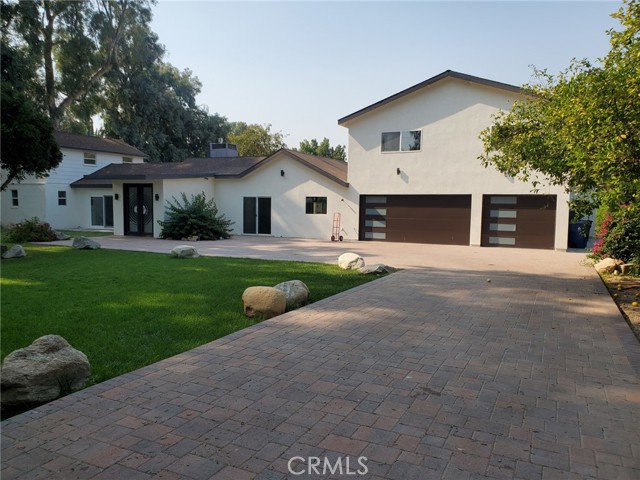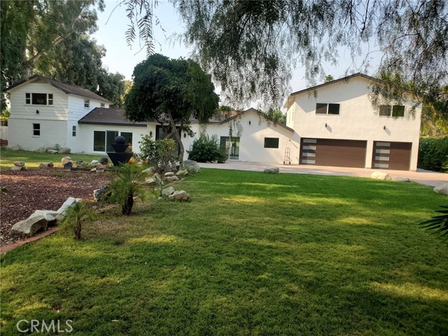 Contemporary paradise on just under an acre. This gated estate begins with an extended paver driveway leading through the peaceful, relaxing front yard. The home is mostly on one level, except for two newly built bedrooms with en-suite baths, a laundry room, and a bonus room. The first floor features an expansive open floor plan with a modern kitchen featuring a center island, dining area, formal living area, TV lounge area, and two master suites with en-suite baths. All bathrooms have been renovated in a contemporary style. The great room and master suite flow into the backyard with a large pool and spa. The 2-bedroom-bath guest house has a kitchen, including a dishwasher.Interested in this Listing?