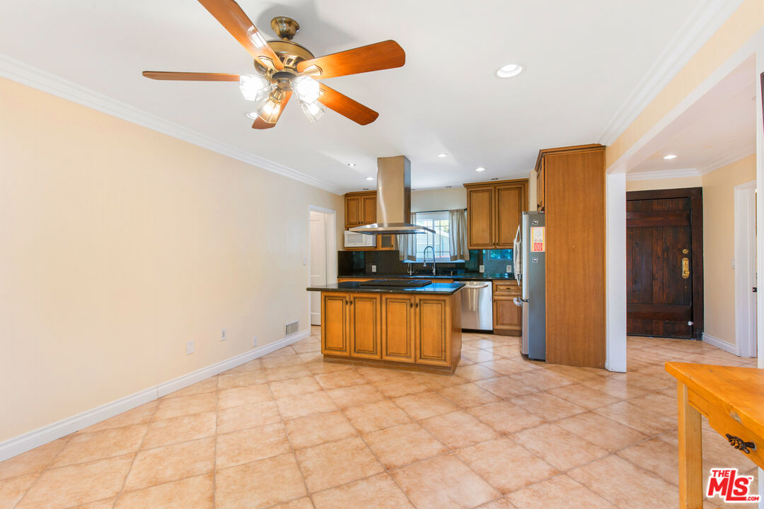 PLEASE NOTE: GARAGE IS EXCLUDED. There are two spots of off-street parking included. Charming storybook house with beautiful mountain views in peaceful Woodland Hills. Traditional post and beam construction w/ contemporary flair, character and charm. Light, bright, airy, with a split-level design and open floor plan. 4 BR/2 BA with hardwood floors & crown moldings. 2 beds up and 2 beds down. Updated kitchen has custom cabinets, granite counters, stainless appliances, recessed lighting and an island along with a KitchenAid triple-tier burner and convection oven. Dining room opens to spacious sunroom with high ceiling & nature views. Step down living room is warm and inviting with a decorative fireplace, and opens to a patio. Bathrooms have been updated w/ new vanities. Upstairs bedrooms and bathroom have vaulted ceilings and ceiling fans. Non-covered parking spots for two cars. Easy street parking with no street sweeping restriction. Other amenities include Double-glazed windows, USB-A & USB-C outlets in every room, Smart Ecobee Thermostat, Hillside views from master bedroom balcony, 24/7 professional security monitoring - RING, LG french door stainless steel refrigerator, Instant Hot on-demand filtered water, One 43" Smart FireTV, Dishwasher, garbage disposal, refrigerator, washer/dryer included. Great location, close to the 101 FWY, PCH, Topanga State Park hiking trails, Calabasas, Ventura Blvd, shops & restaurants! The Woodland Hills Country Club is only one mile away. 3.5 miles away, the affordable Calabasas Tennis & Swim Center offers semi-private access. Home is in the affluent area of Girard Tract neighborhood. *Available Mid-late June 2025*Interested in this Listing?