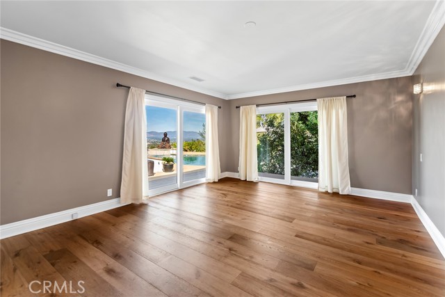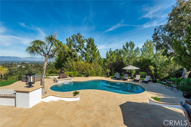 A Rare Opportunity Secluded Luxury with Breathtaking Views! Hidden behind private gates, this exclusive 5-bedroom, 5.5-bathroom estate offers unparalleled privacy, security, and serenity on a secluded 2/3-acre lot. *Furniture can also be included in the sale* From the moment you arrive, a long, custom paver driveway leads to an expansive motor court and two separate 2-car garages, providing ample space for vehicles, storage, or a flexible-use studio. Spanning over 4,300 sq. ft., this home blends elegance, charm, and modern sophistication. The open-concept design showcases soaring faux wood-beamed ceilings, archways, and grand fireplaces in both the living and family rooms each framing breathtaking city views. The formal dining room is perfect for hosting, while the chef s kitchen boasts granite countertops, custom cabinetry, and a cozy breakfast nook with panoramic views of the backyard, pool, and skyline. A dedicated wine room enhances this entertainer s dream space. The primary suite is a private retreat, featuring direct access to the pool and spa, awe-inspiring views, and a spa-like en-suite bath. Each additional bedroom captures a unique perspective of the stunning surroundings, bathing the home in natural light and captivating scenery. One guest suite even includes a private front patio, making it a versatile option for an in-law suite, housekeeper s quarters, or rental income opportunity. Step outside into a Zen-inspired oasis. A sprawling patio with a built-in BBQ, Trex decking, and an outdoor fireplace creates a tranquil, top-of-the-world ambiance. The resort-style pool and spa complete this peaceful escape, making it the ultimate retreat from the everyday hustle. Meticulously maintained and updated with modern electrical systems, a tankless water heater, dual-zoned heating and air, and security system with cameras, this home offers both luxury and peace of mind. An entertainer s paradise. A rare opportunity. A forever home. Experience this one-of-a-kind property for yourself schedule your private tour today!Interested in this Listing?
