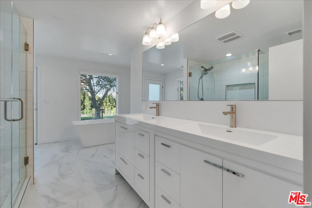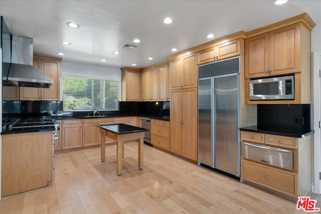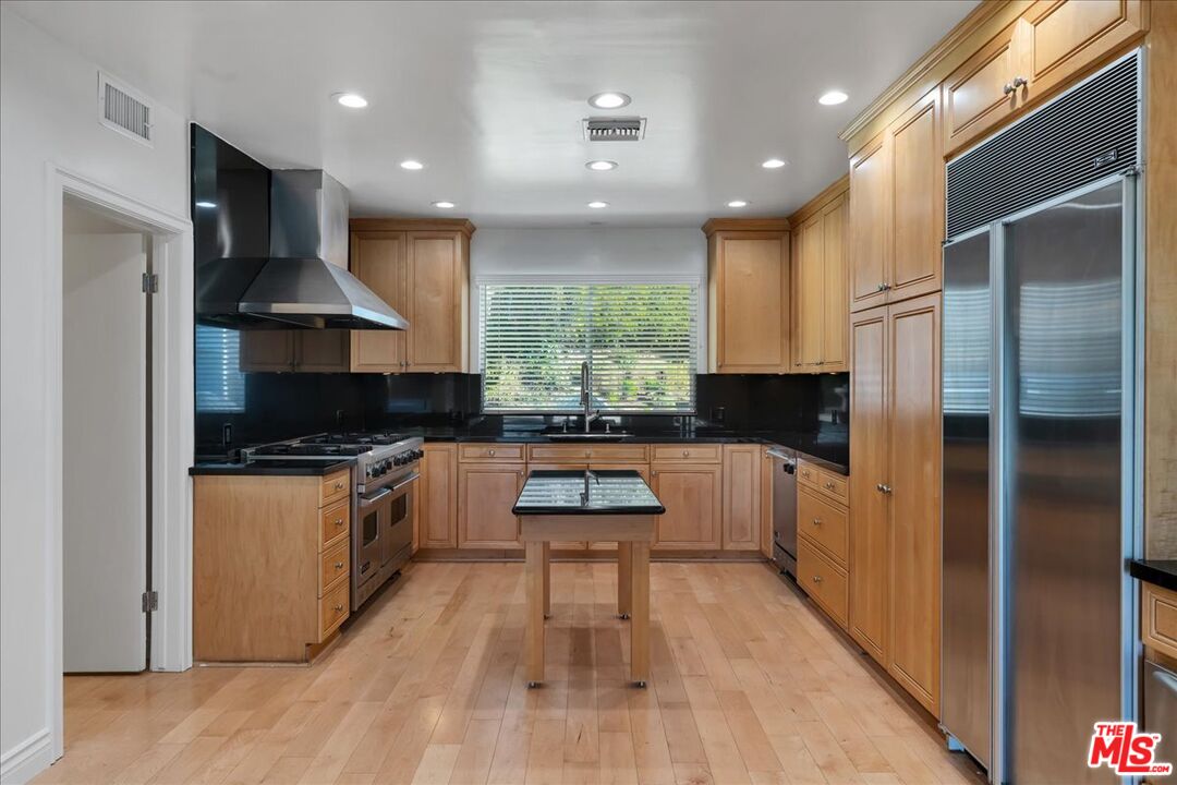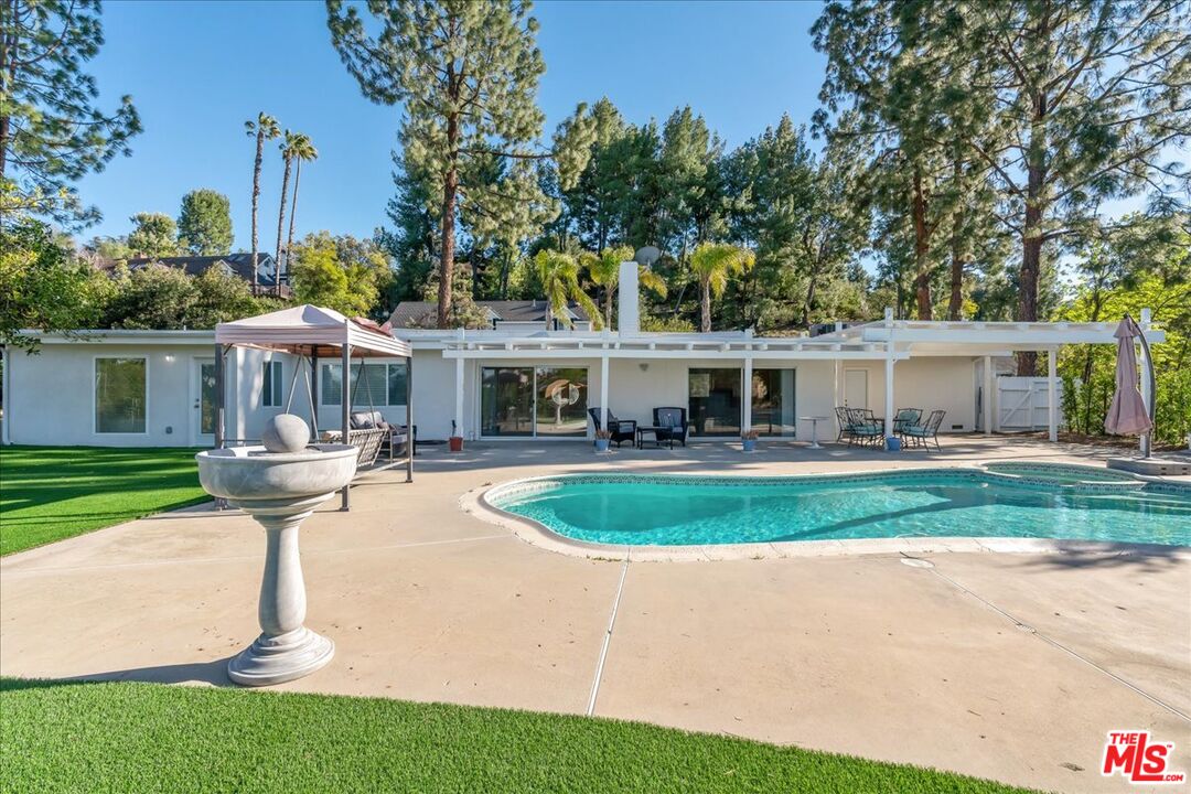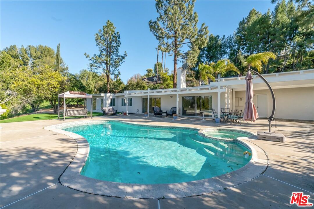 Spectacular views make this home an entertainers dream! This three bedroom, three bath home is located in the hills of Woodland Hills with amazing views of the San Fernando valley and minutes from shopping, restaurants, schools and more. This home has been completely remodeled with hardwood flooring throughout. Entering in this home opens up to the large living room that flows with large sliding doors to the backyard. The Kitchen has been renovated and updated with stainless steel appliances including built-in microwave, beverage refrigerator, dishwasher, Viking gas stove with double oven and an oversized Sub-zero freezer and refrigerator. A hallway off the dining room and den lead to the two bedrooms with updated bathroom. The primary suite has a walk-in closet and new bathroom with stand alone bath, large shower, double vanity sinks and marble stone floors. The backyard has views of the city, a large pool with spa and plenty of space for barbecues and activities. This home is move-in ready. Schedule a tour today!Interested in this Listing?