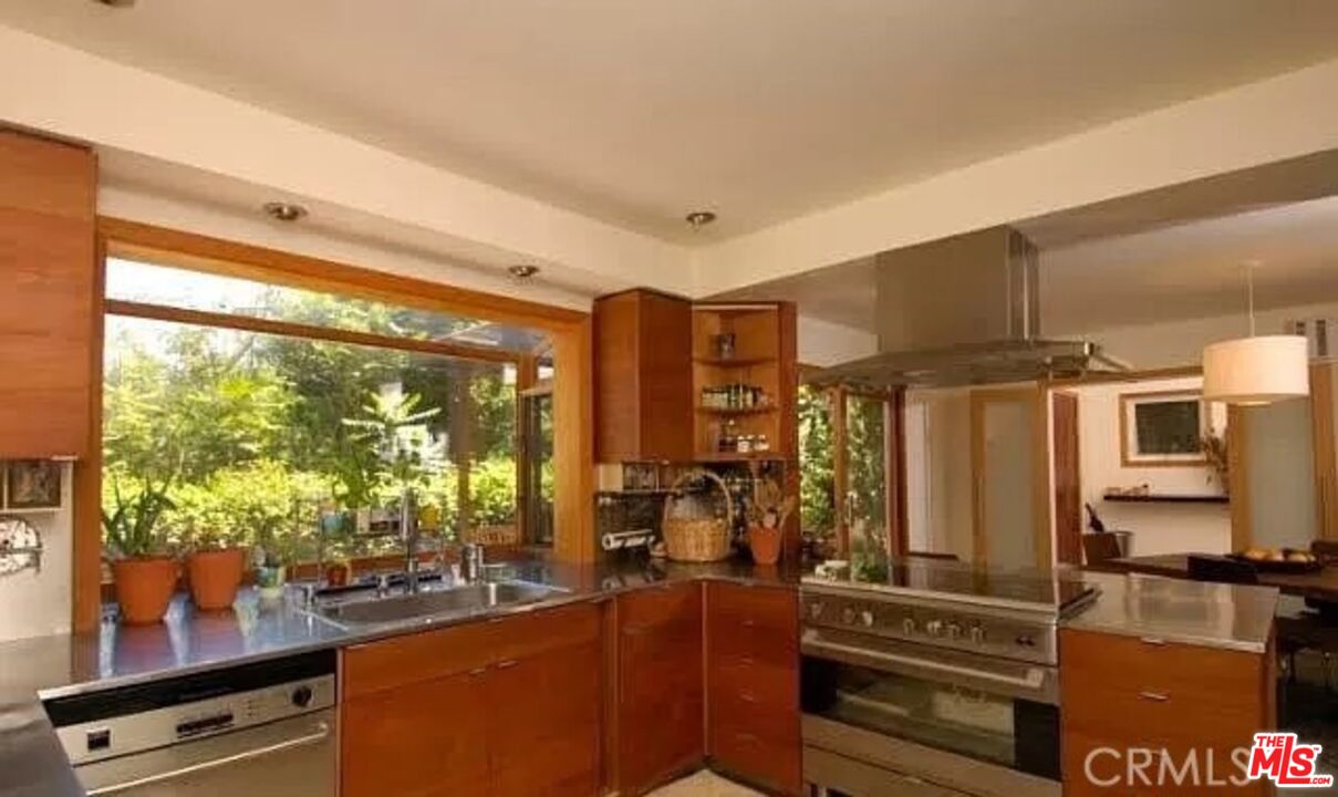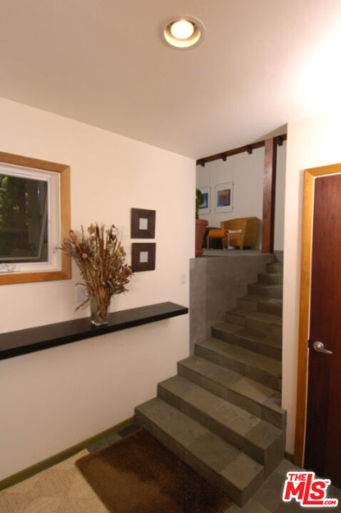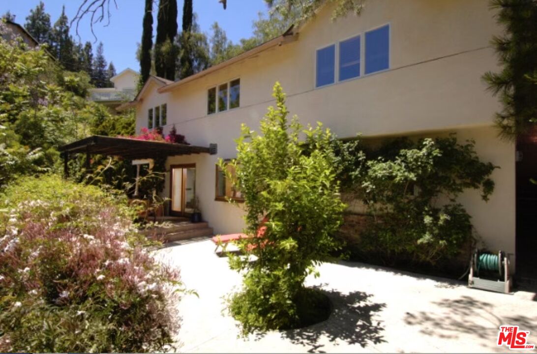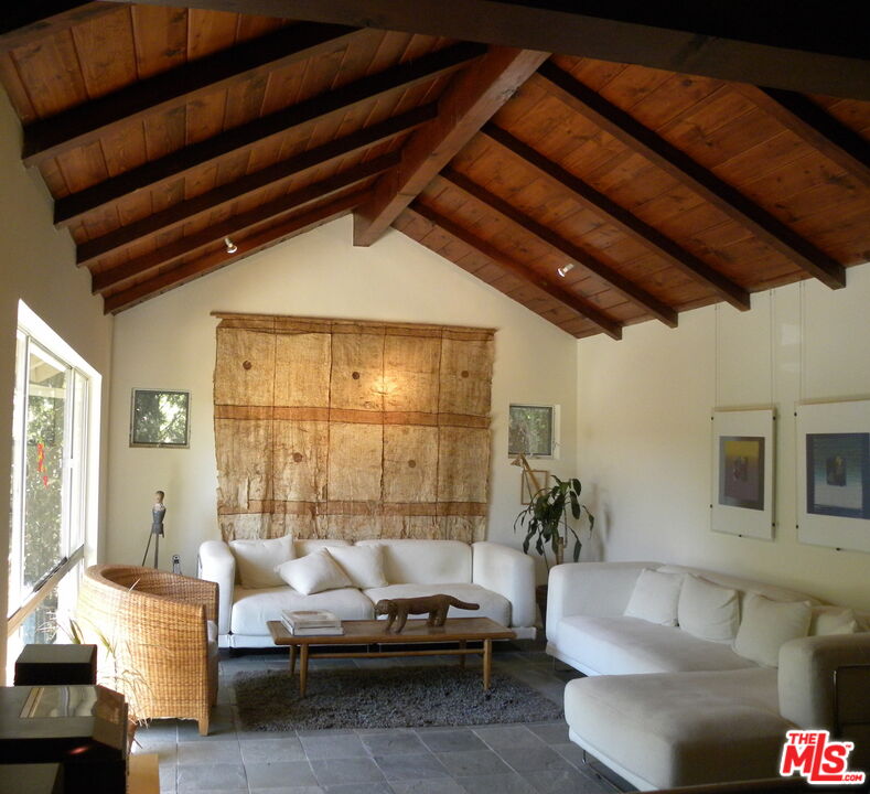 Secluded from the street above, this light-filled contemporary Woodland Hills home offers privacy and peace, surrounded by trees and scenic hilltop views, all while remaining close to everything the area has to offer. Fully retrofitted and renovated in the mid-90s, the residence features four bedrooms, including one en suite and another with exterior access, great for a home office. Vaulted beam ceilings and a wood-burning fireplace add warmth to the living room, which overlooks a serene outdoor patio perfect for entertaining or relaxing. The open kitchen is equipped with stainless steel appliances and countertops, and the home features stone, hardwood, and marble flooring throughout. Additional highlights include recently updated central heat and A/C, recessed lighting, and double-pane windows. Please note: the independent guest house and lower lot accessed on Arcos Dr. are not included in this Lease. Parking is located off-street on Alatar Dr.Interested in this Listing?